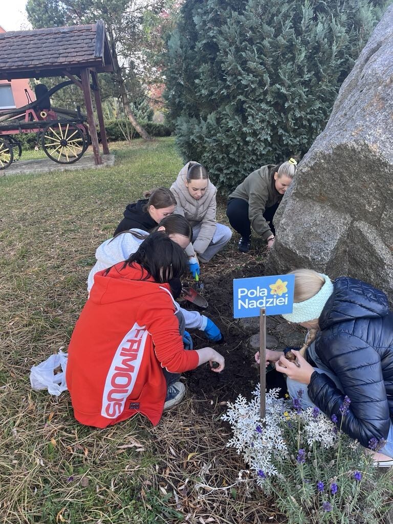 W tym roku szkolnym również bierzemy udział w Akcji Pola Nadziei, która ma na celu szerzenie idei hospicyjnej, edukację i uwrażliwianie społeczeństwa, szczególnie dzieci i młodzieży, na los ludzi chorych i cierpiących. Wolontariusze klasy 8 sumiennie zaangażowali się w organizację tej akcji. Wolontariusze wspólnie zasadzili cebulki żonkili na terenie szkoły. Wiosną, kiedy zakwitną, są rozdawane w kwestach , a pozyskane w ten sposób fundusze przeznaczone są na budowę Lęborskiego Hospicjum Stacjonarnego.