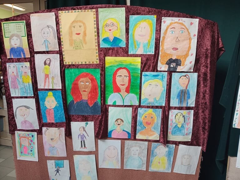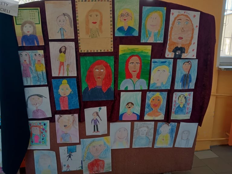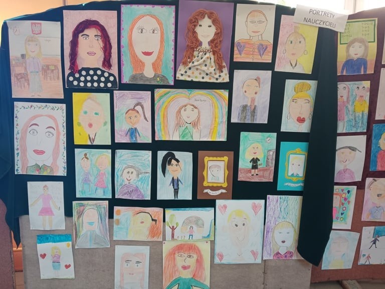 Z okazji Dnia Edukacji Narodowej uczniowie klas I - III wykonali portrety swoich ulubionych nauczycieli, dbając o najmniejsze szczegóły w wyglądzie oraz ubiorze przedstawianych osób. Wystawa cieszyła się ogromnym zainteresowaniem. Wszystkie prace wywołały uśmiech na twarzy i ciepło na sercu.