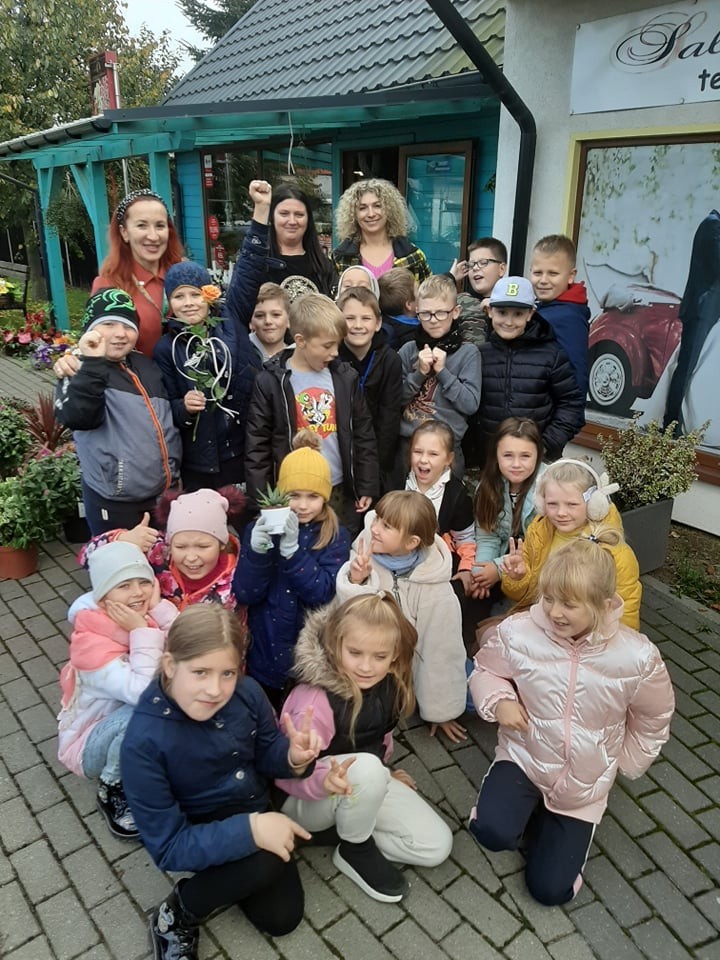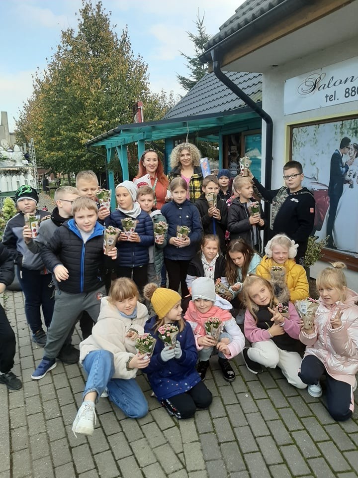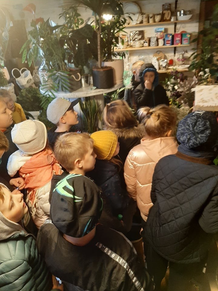 11 października uczniowie klasy II a wybrali się na spacer do pobliskiej kwiaciarni. Dzięki przychylności właścicielki, pani Wioletty Syldatk, dzieci mogły dowiedzieć się więcej o jesiennych kwiatach, kompozycjach oraz zawodzie florysty. Podczas spotkania poszerzyły wiedzę na temat różnorodnych gatunków kwiatów, dowiedziały się, jak są przechowywane i jak należy dbać o rośliny. Przy okazji powtórzyły wiadomości z ostatnich lekcji na temat budowy roślin zielnych i warunków ich życia. Na pamiątkę spotkania każdy uczeń otrzymał kwiatek, za co serdecznie dziękujemy!