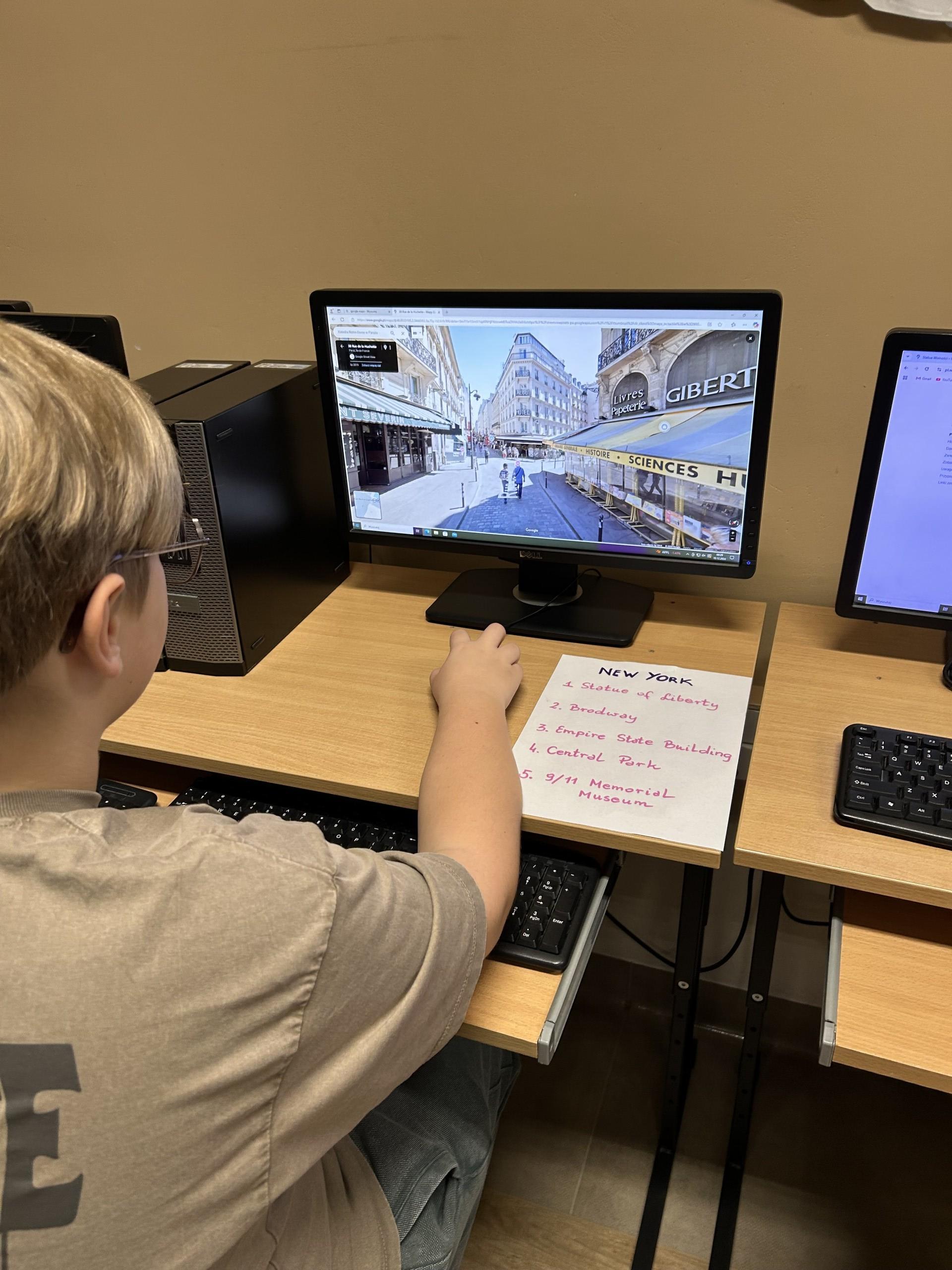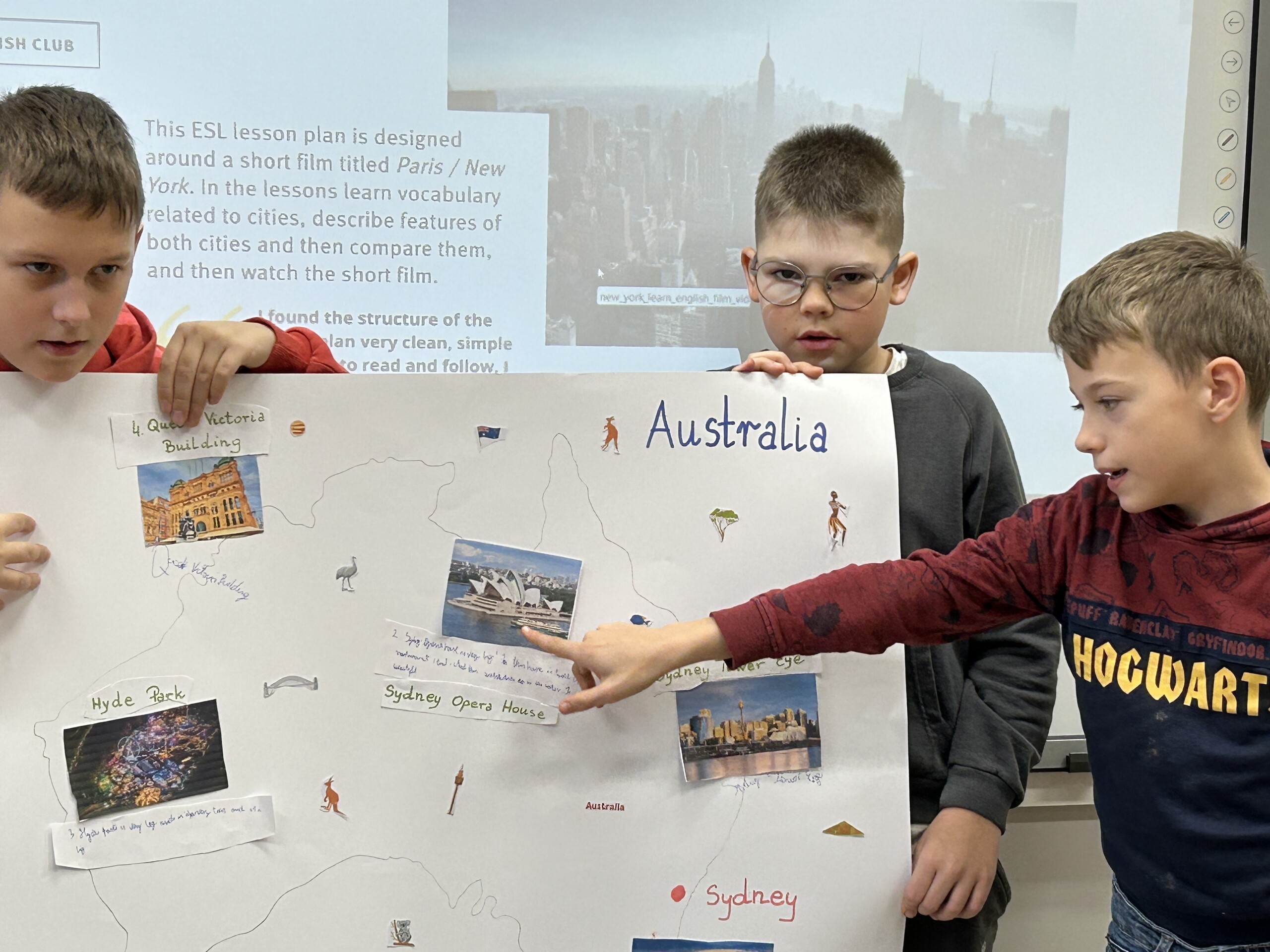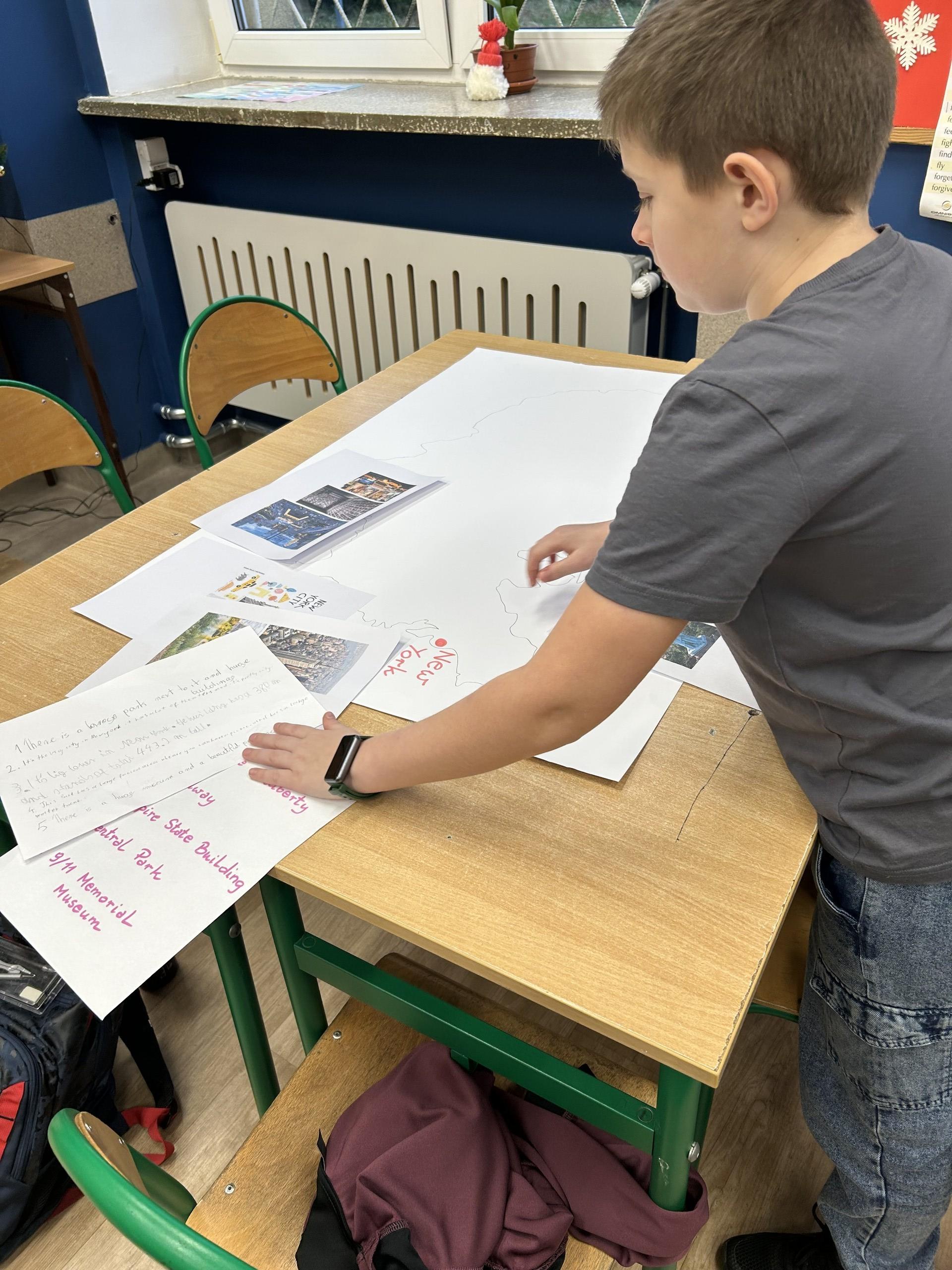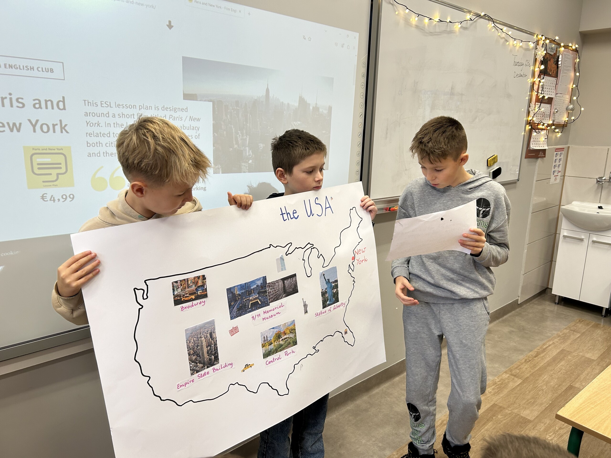 W zeszłym tygodniu uczniowie klasy 5b brali udział w projekcie między przedmiotowym z języka angielskiego i informatyki. Uczniowie w grupach losowali cztery miasta: Londyn, Sydney, Nowy Jork i Paryż, które następnie "wirtualnie zwiedzali". Mieli również okazję zobaczyć najważniejsze miejsca oraz symbole miast, których nie można pominąć , m.in. Bondi Beach, Empire State Building, London Eye, Eiffel Tower i wiele innych. Kolejnym etapem było tworzenie map danych miast i opisywanie najciekawszych miejsc.