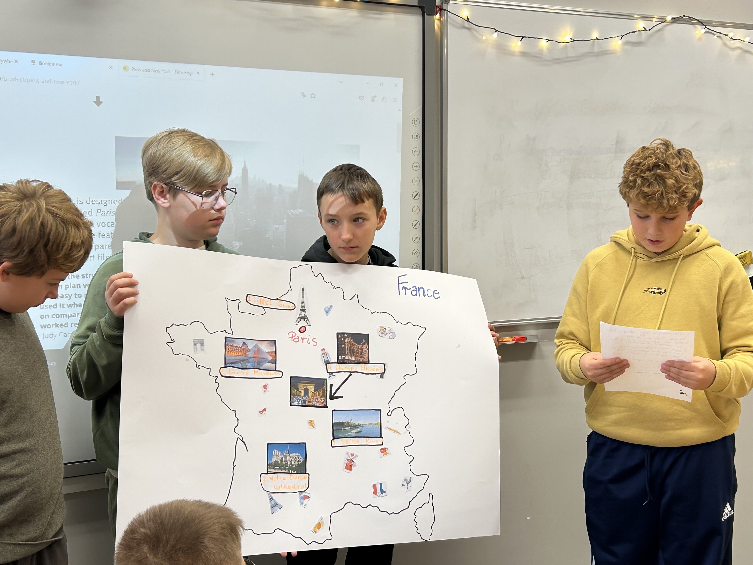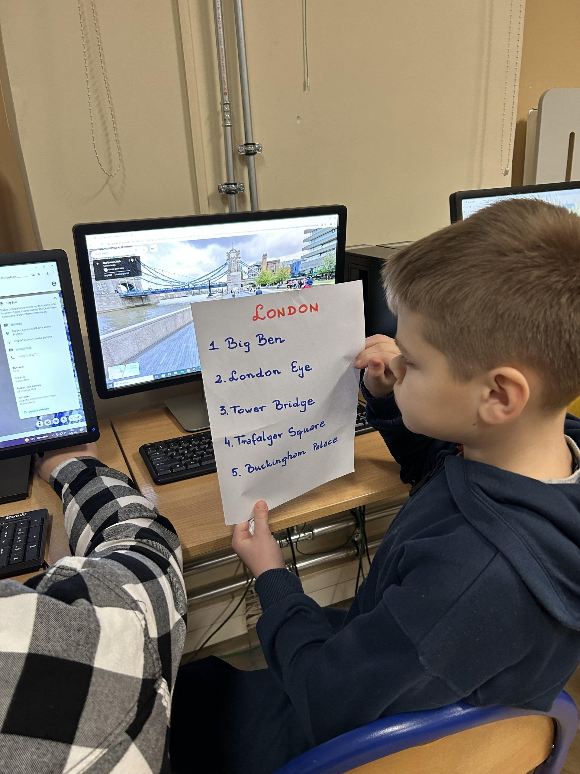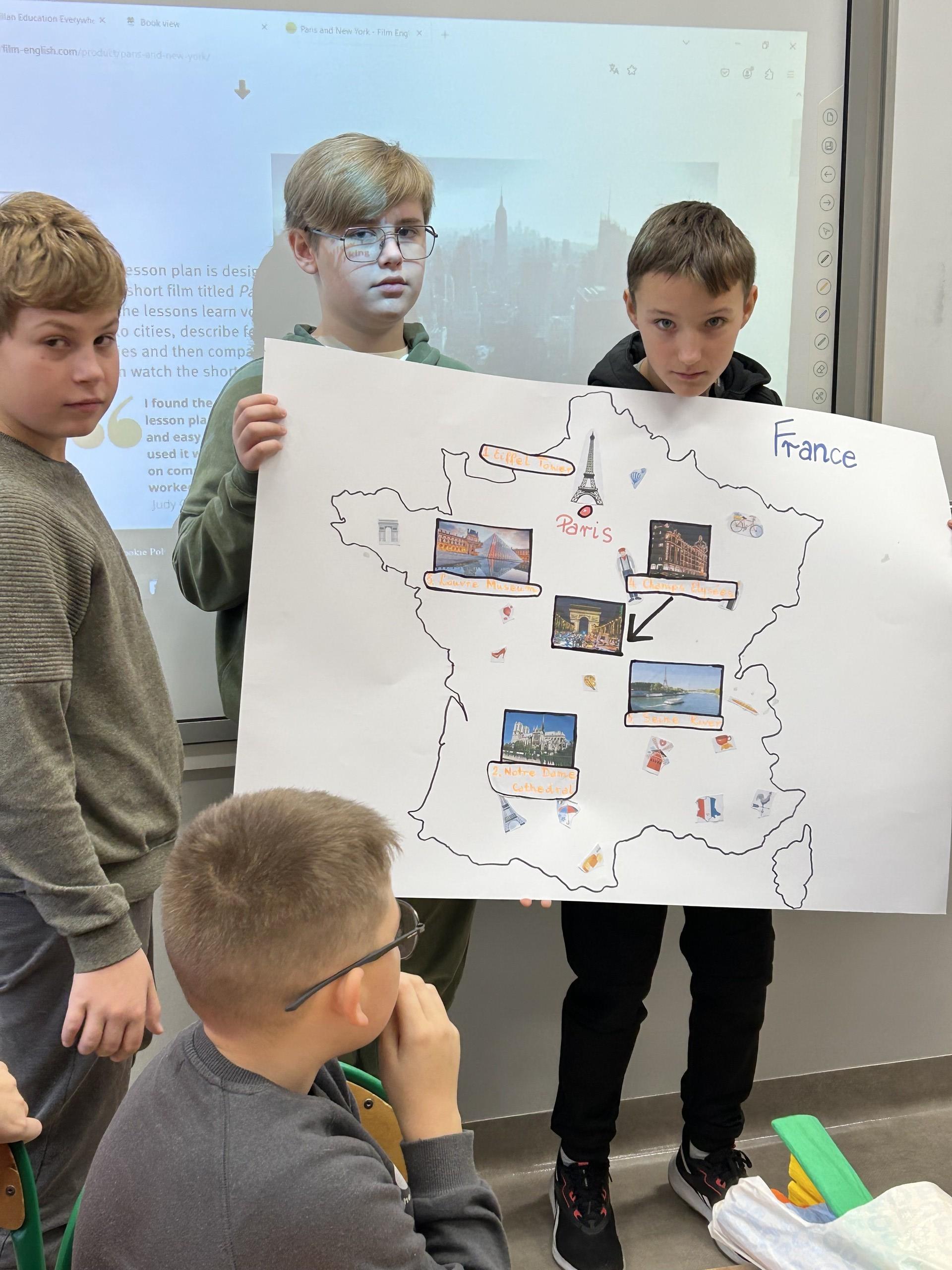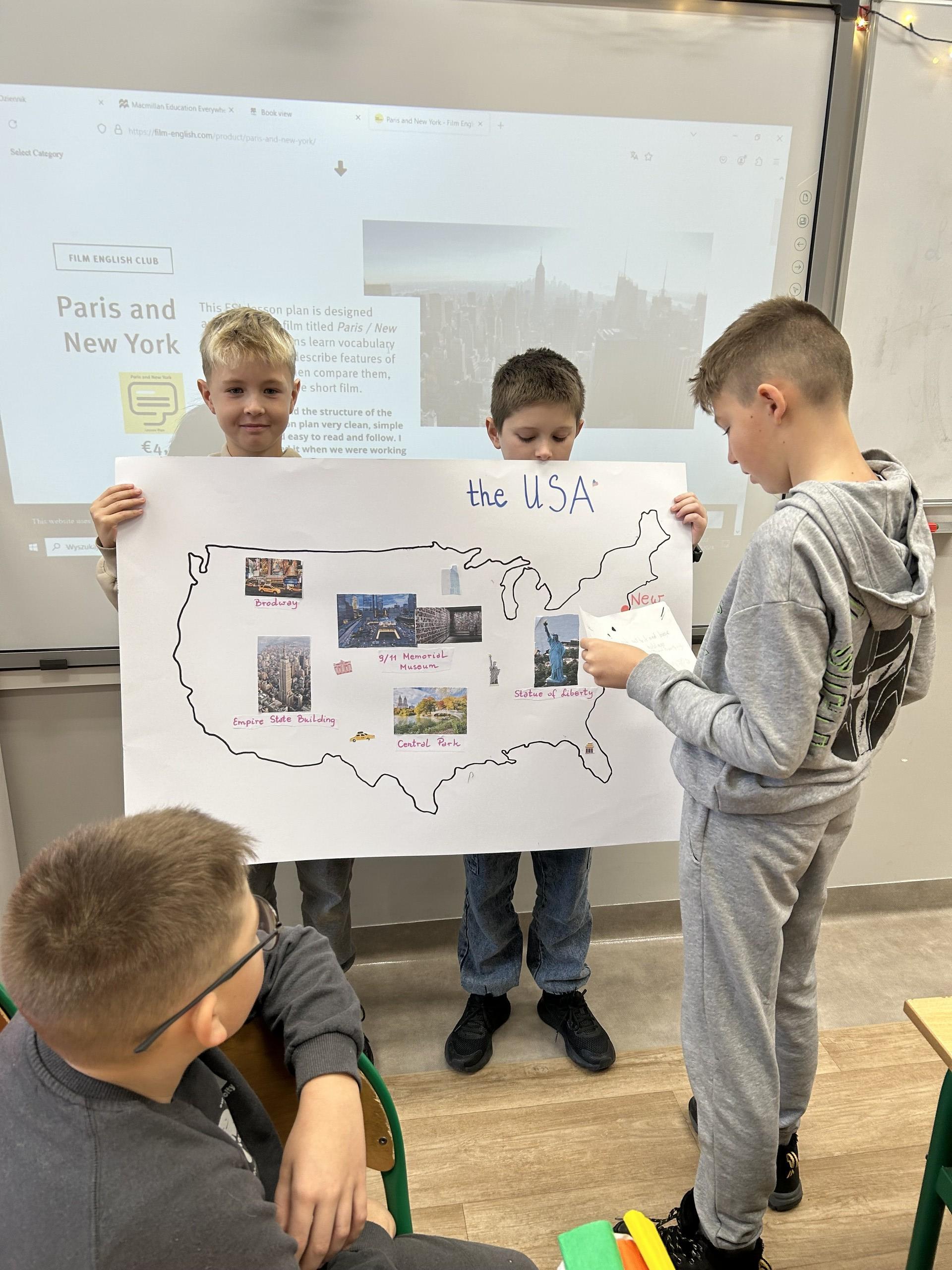 W zeszłym tygodniu uczniowie klasy 5b brali udział w projekcie między przedmiotowym z języka angielskiego i informatyki. Uczniowie w grupach losowali cztery miasta: Londyn, Sydney, Nowy Jork i Paryż, które następnie "wirtualnie zwiedzali". Mieli również okazję zobaczyć najważniejsze miejsca oraz symbole miast, których nie można pominąć , m.in. Bondi Beach, Empire State Building, London Eye, Eiffel Tower i wiele innych. Kolejnym etapem było tworzenie map danych miast i opisywanie najciekawszych miejsc.