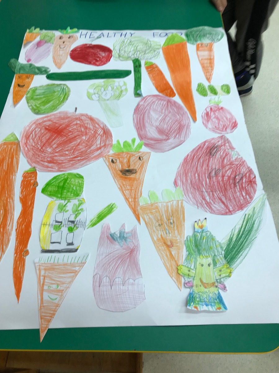 Grupa przedszkolna OB w ramach projektu unijnego wykonała plakat Healthy Food- warzywa. Okazało się, że marchewki górą, a przedszkolaki dobrze wiedzą co zaliczamy do zdrowego żywienia.