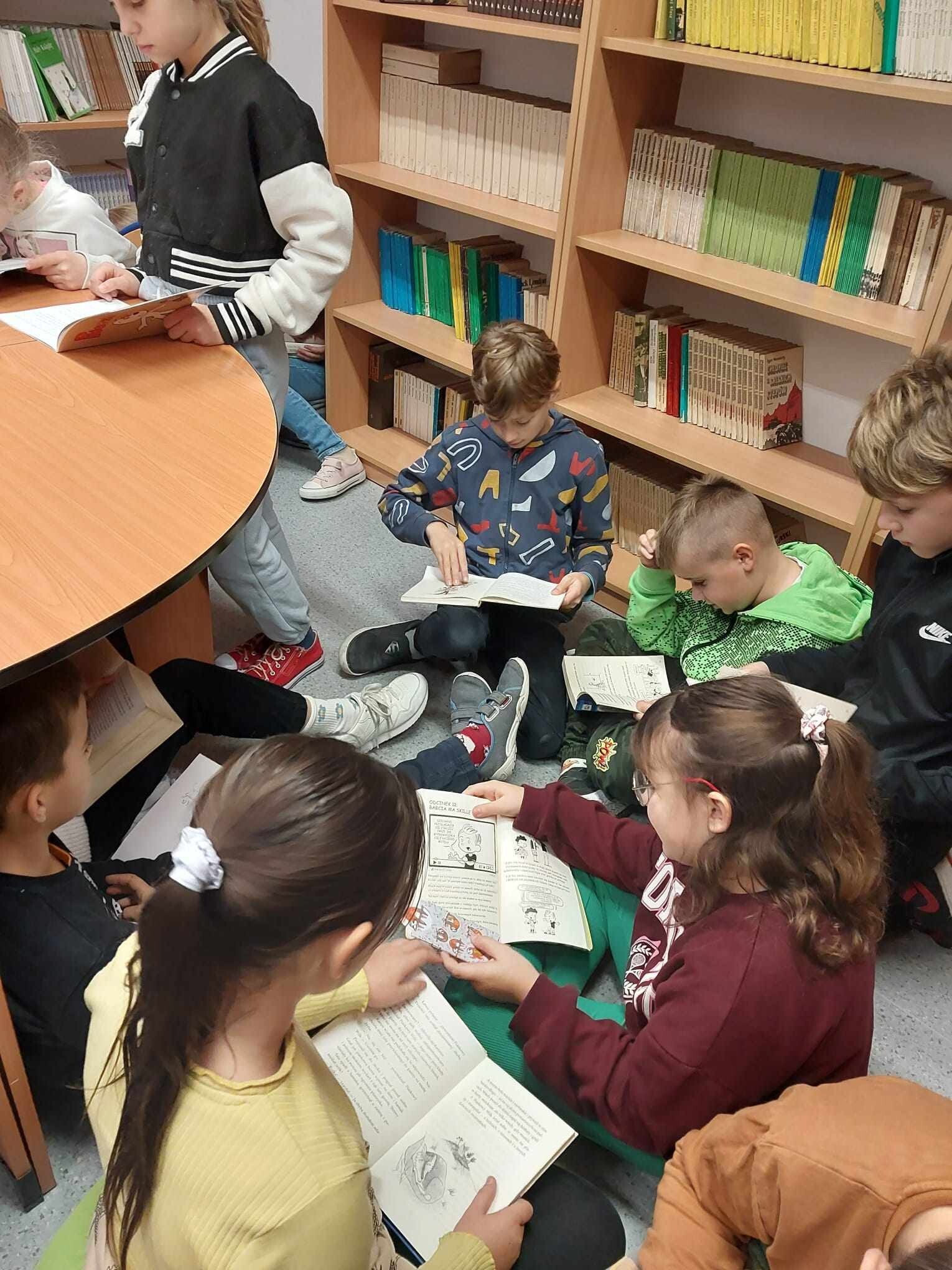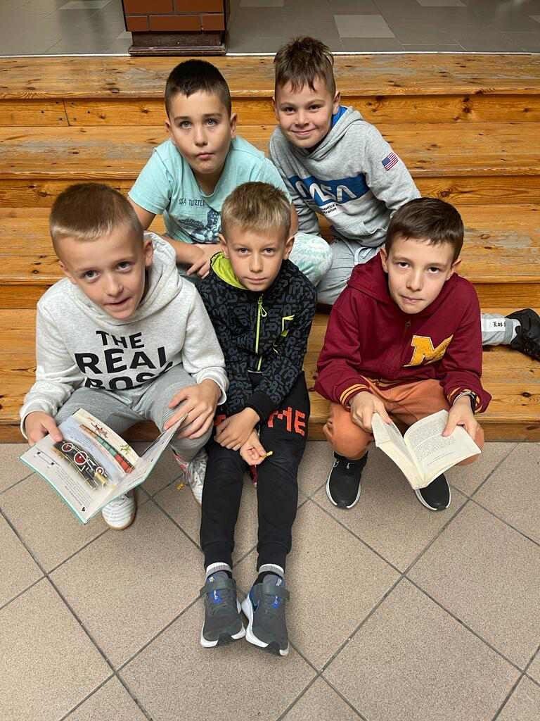 Najmłodsi uczniowie- pierwszoklasiści - mieli okazję na spotkanie z książką w świetlicy szkolnej. Tam czytali im starsi koledzy oraz zaproszeni goście.