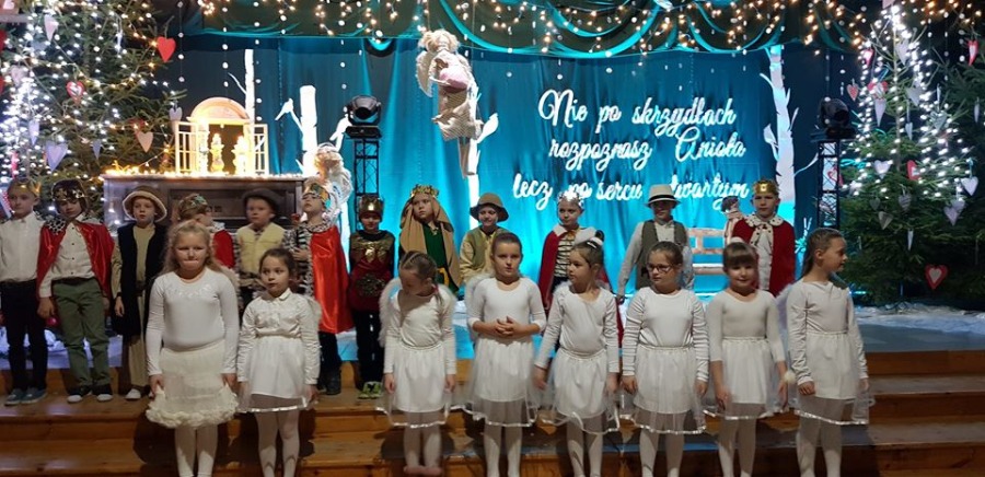 W ramach tej akcji nasza placówka zorganizowała „Biały Koncert” w który włączeni zostali: społeczność uczniowska, rodzice, nauczyciele i pracownicy szkoły. Podczas koncertu uczennice i uczniowie prezentowali świąteczny repertuar na scenie, a publiczność nie szczędziła grosza w licytacjach. Na korytarzu szkolnym odbywał się kiermasz świąteczny. Zaangażowaliśmy się również w zbiórkę darów dla bezdomnych zwierząt znajdujących się w schronisku w Małoszycach. Kolejną ważna akcją w naszej szkole było przygotowanie paczek dla 45 dzieci pochodzących z potrzebujących rodzin. Nie zapomnieliśmy również o osobach samotnych wolontariusze z naszej szkoły pomagali w zorganizowaniu wigilii dla osób samotnych a uczniowie wraz z nauczycielami przygotowali część artystyczną. Dziś, pisząc to krótkie podsumowanie, pragniemy z całego serca podziękować wszystkim, którzy nas wspierali w tym wielkim dziele niesienia świątecznej pomocy. Dziękujemy Rodzicom, którzy odpowiedzieli na nasz apel i wsparli tak wiele naszych działań