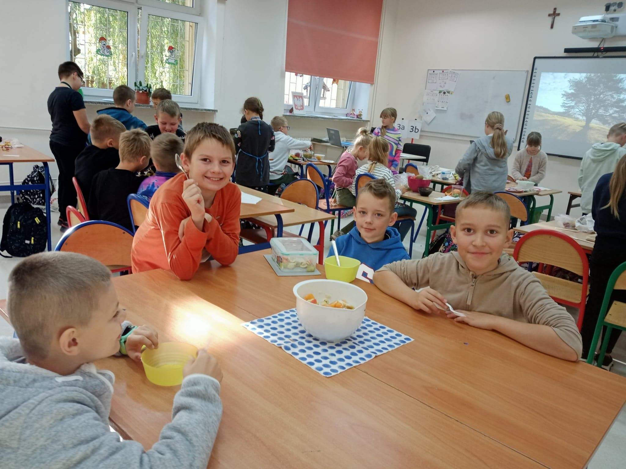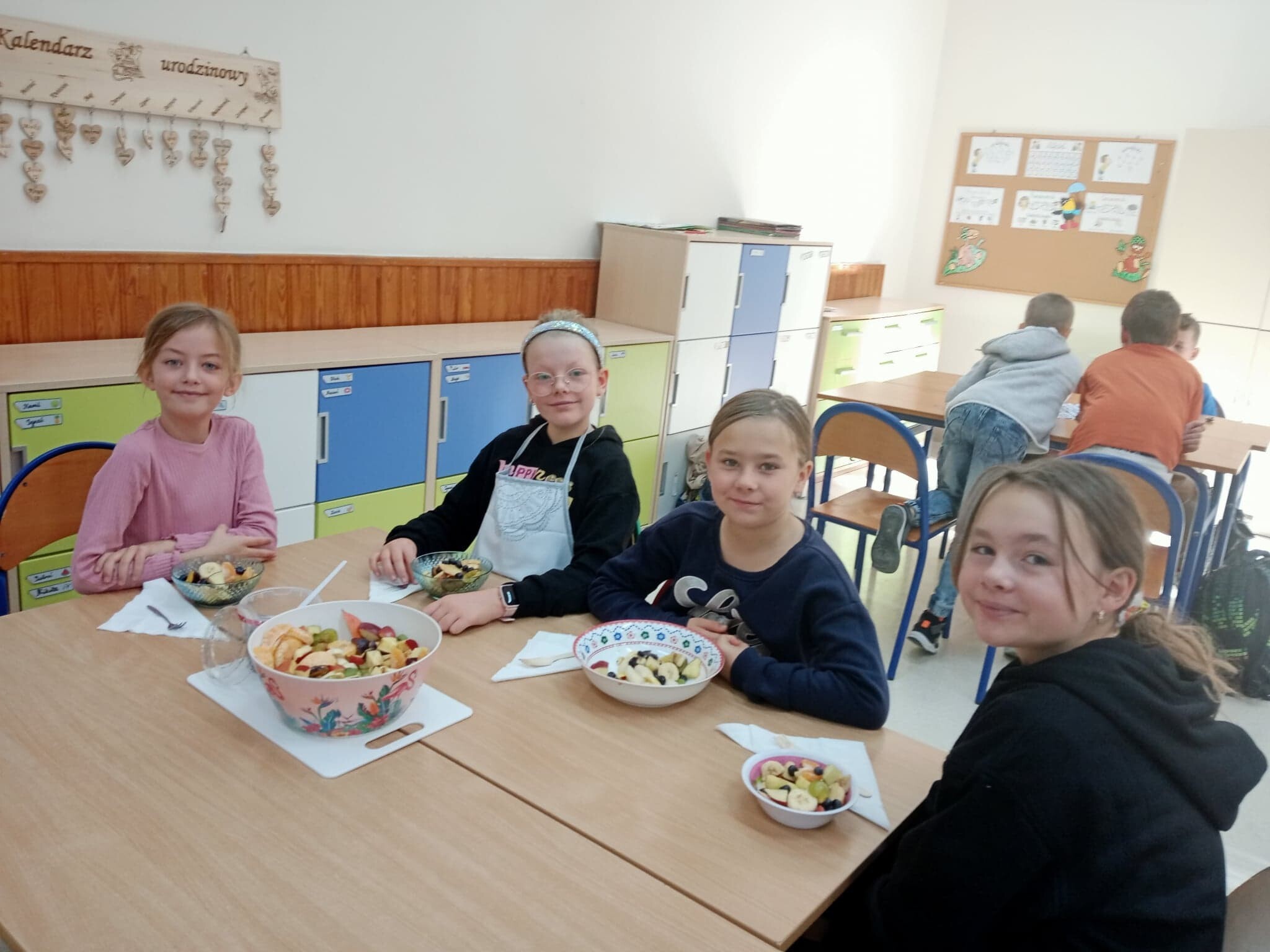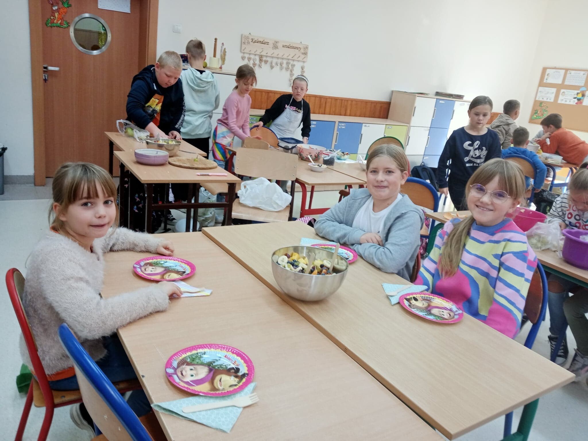 W związku z realizacją zajęć o tematyce owocowo- warzywnej, uczniowie klasy 3 a w minionym tygodniu wykonali sałatkę owocową. Wszyscy tego dnia z dużym zapałem i zaangażowaniem pracowali, świetnie przy tym się bawiąc. Sałatka była kolorowa i bardzo zdrowa. Smakowała każdemu.
