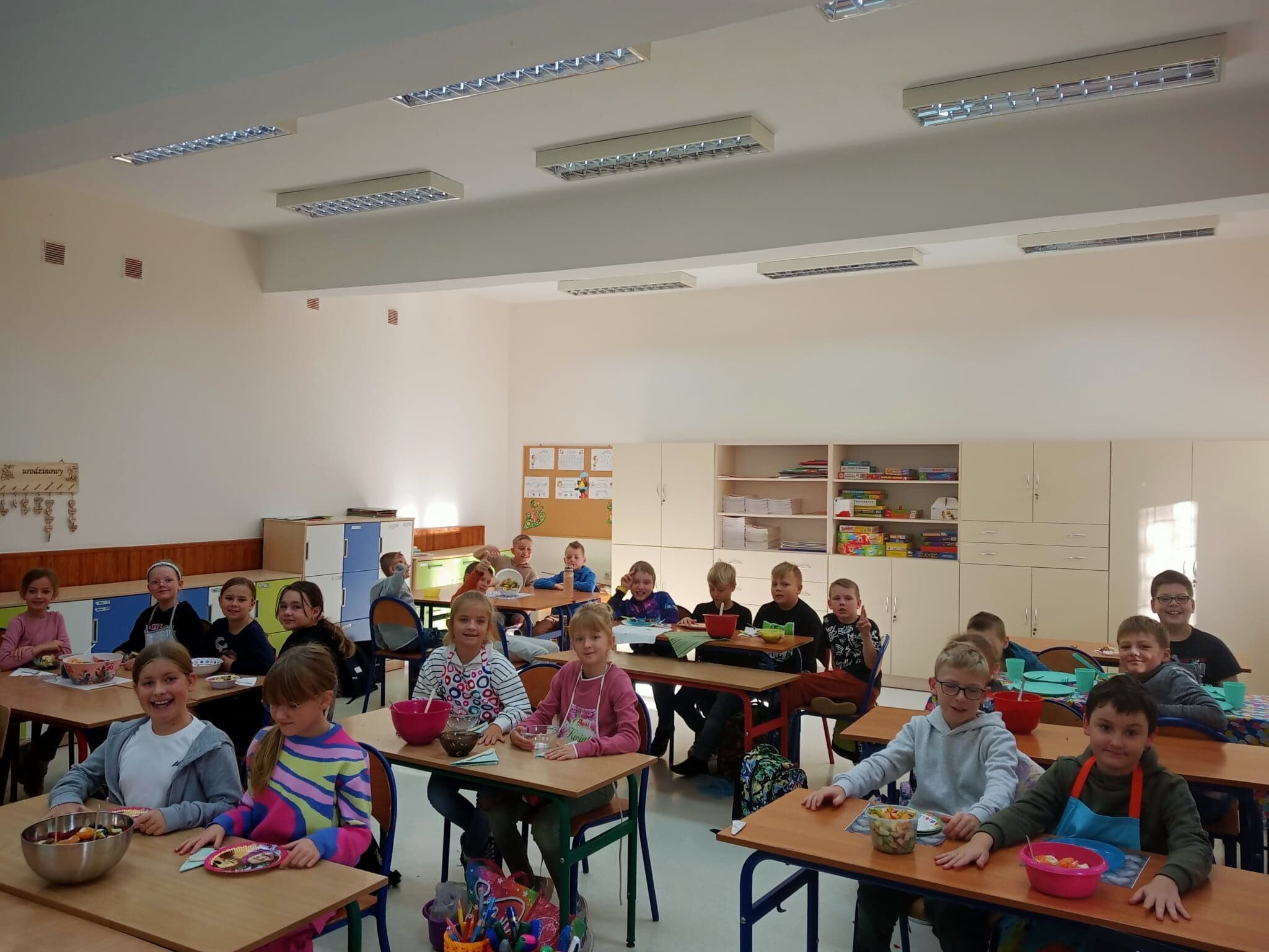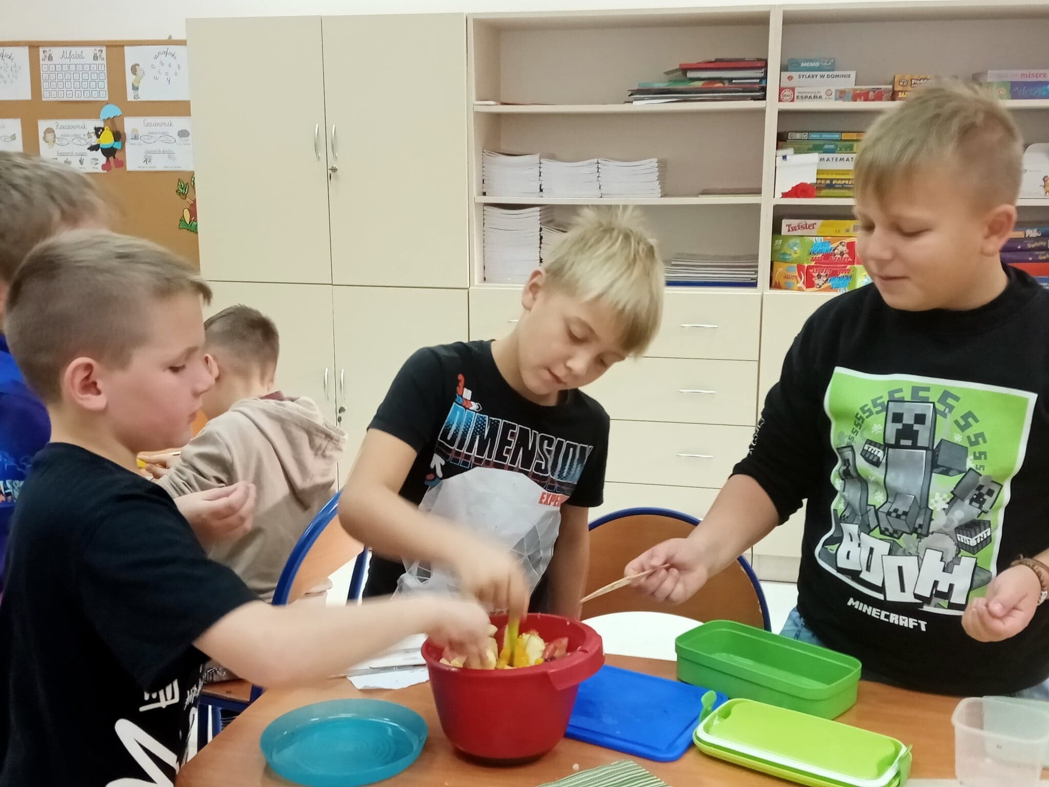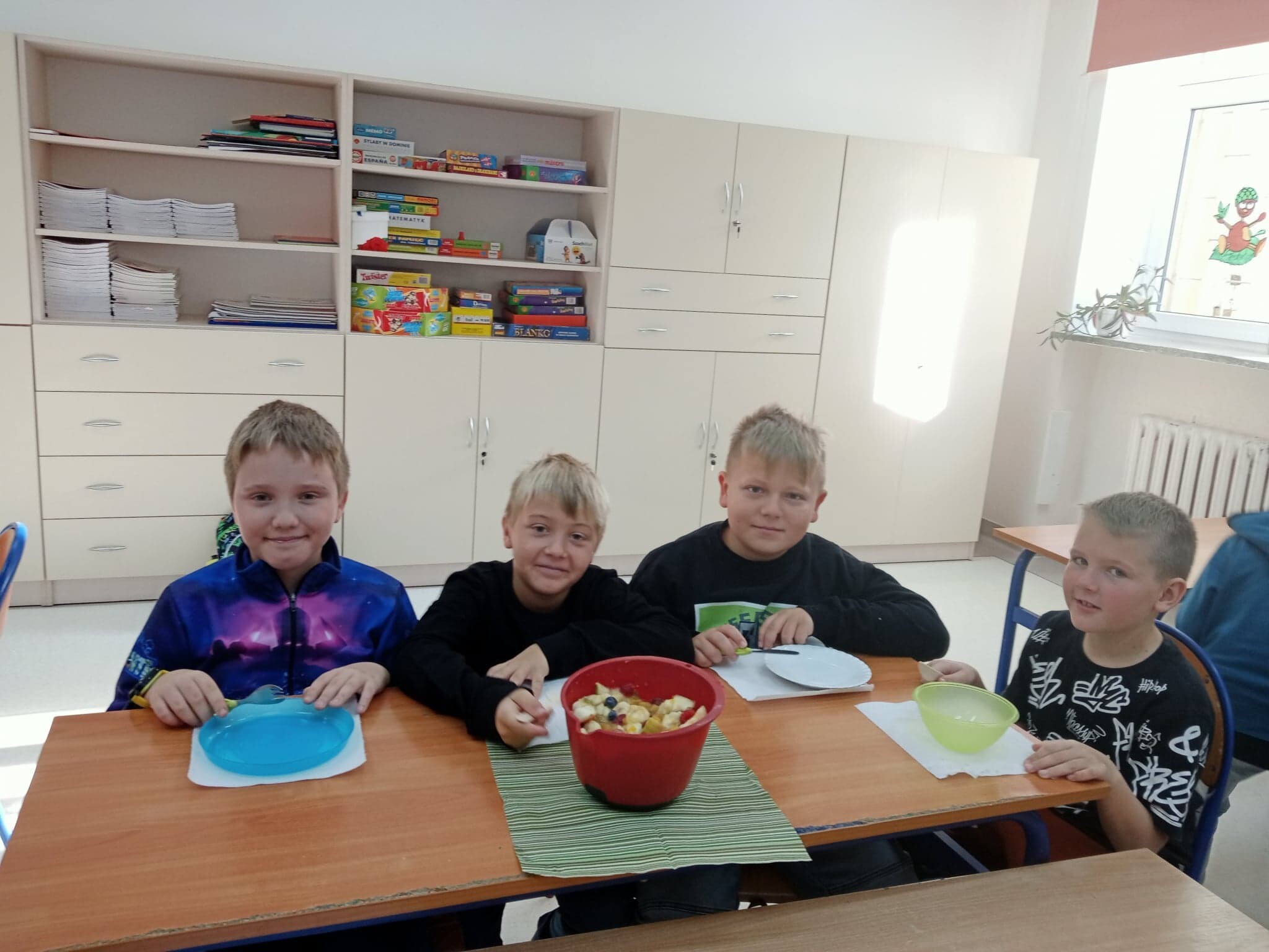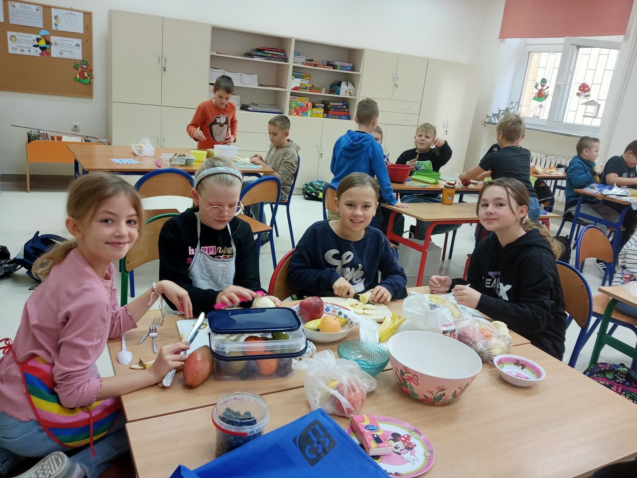 W związku z realizacją zajęć o tematyce owocowo- warzywnej, uczniowie klasy 3 a w minionym tygodniu wykonali sałatkę owocową. Wszyscy tego dnia z dużym zapałem i zaangażowaniem pracowali, świetnie przy tym się bawiąc. Sałatka była kolorowa i bardzo zdrowa. Smakowała każdemu.
