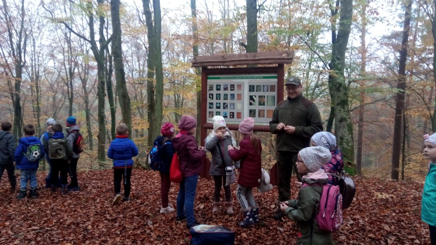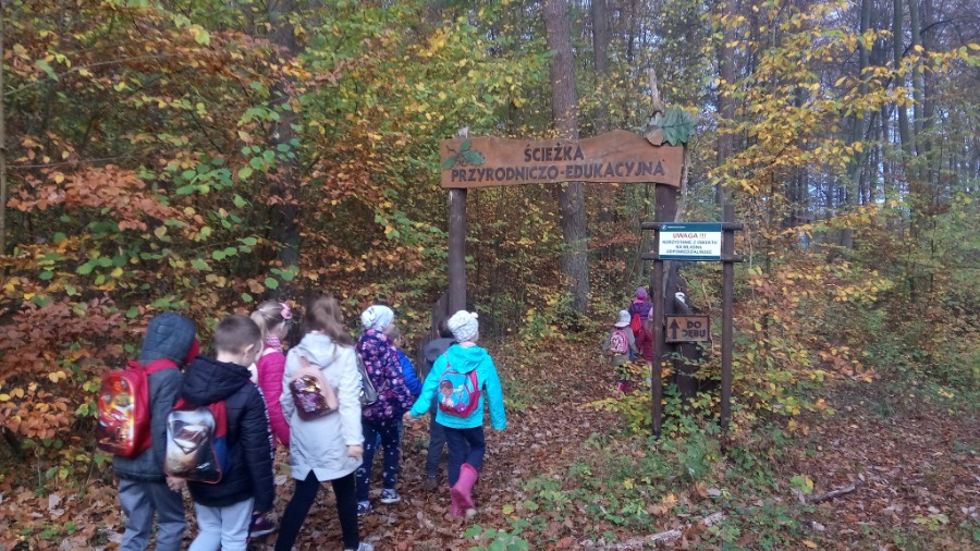 Uczniowie klasy 1 „b” odbyli spacer po Ścieżce przyrodniczo-edukacyjnej „ Dąb Świętopełk”. Ścieżka poprowadzona jest przez urozmaicony krajobraz buczyny pomorskiej z widokami wijącej się w dole rzeki. Oznakowana trasa przejścia z licznymi tablicami informacyjnymi pozwala bliżej poznać miejsca, w których się znajdujemy. W całej wędrówce towarzyszyli nam: pan leśniczy oraz podleśniczy z leśnictwa Maszewo. Na końcu ścieżki znajduje się wiekowy dąb szypułkowy Świętopełk- Pomnik przyrody.
