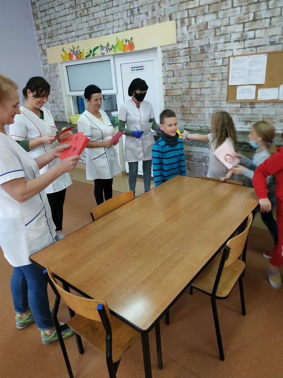 W piątek 6 listopada uczniowie klas I w ramach realizacji Ogólnopolskiego Projektu Edukacyjnego Serdeczna Karteczka wykonali i wręczyli karteczki okolicznościowe paniom kucharkom, przy okazji dziękując za ich pracę.