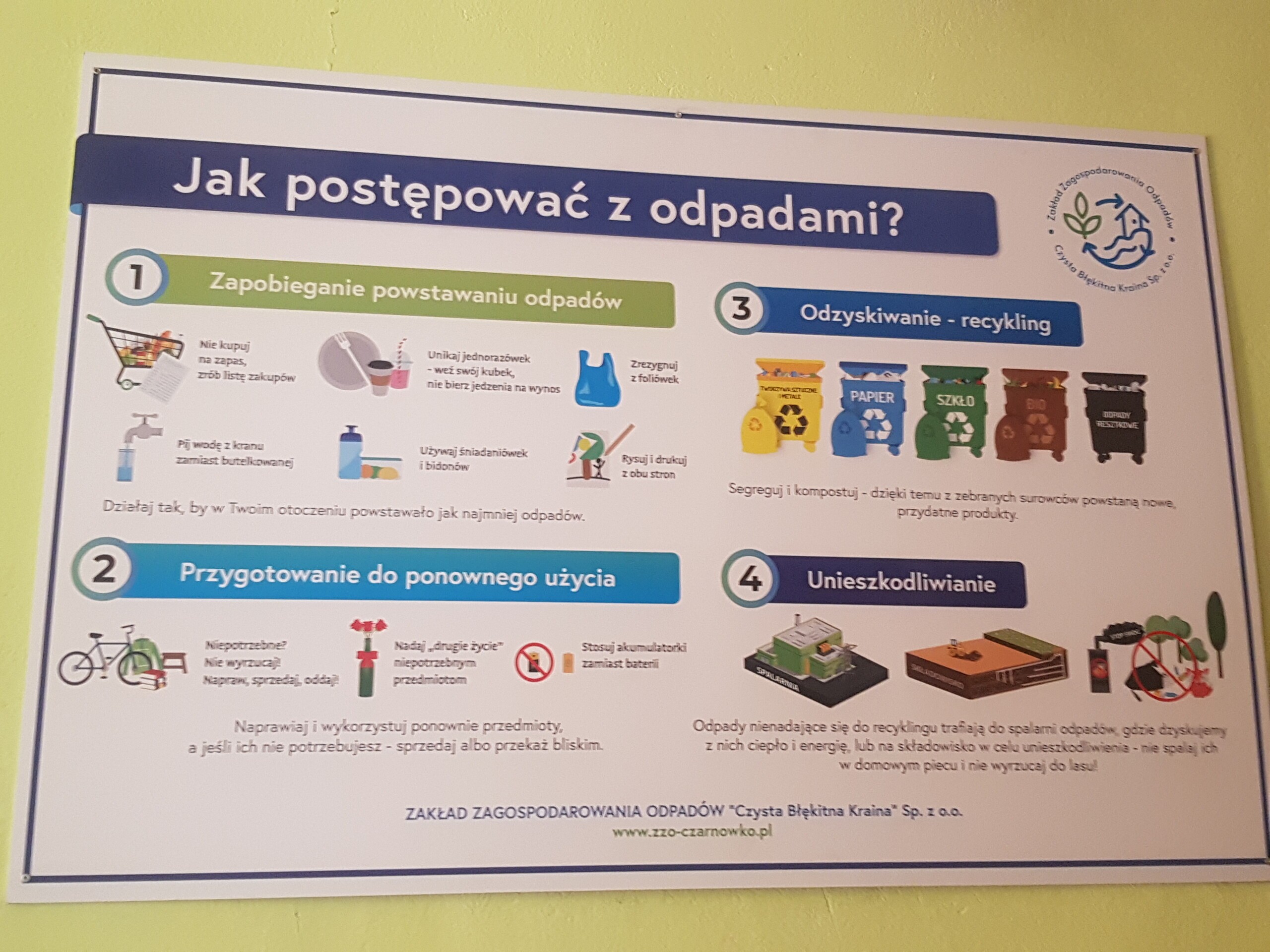 Nasza szkoła wzięła udział w konkursie “Śladami naszych odpadów”, który został zorganizowany przez Zakład Zagospodarowania Odpadów “Czysta Błękitna Kraina”. Warunkiem uczestnictwa w konkursie było obejrzenie filmiku edukacyjnego i wypełnienie ankiety on-line. Znaleźliśmy się w gronie 10 szkół które odesłały najwięcej ankiet i w nagrodę otrzymaliśmy EKOstację.