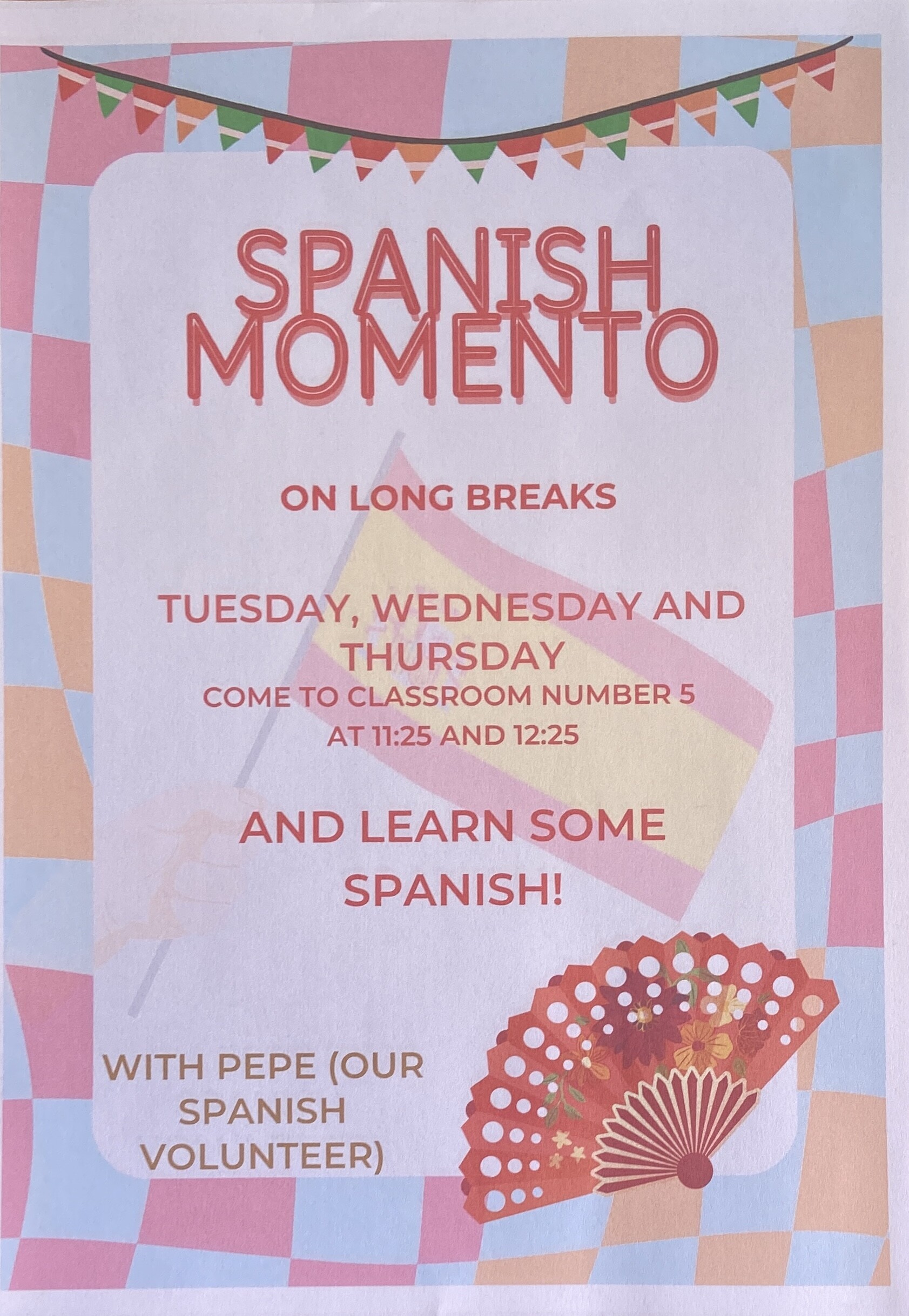 Wolontariusz prowadzi w naszej szkole spotkania z językiem hiszpańskim. Celem zajęć jest wprowadzenie chętnych uczniów w świat języka hiszpańskiego.