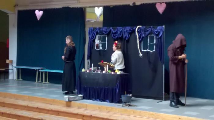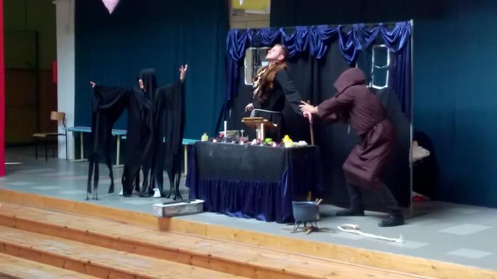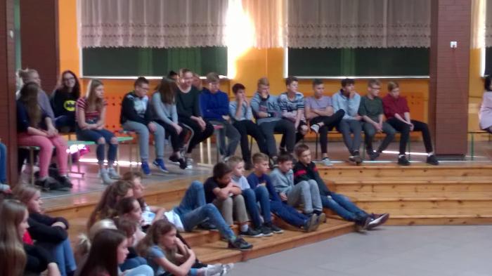 Dnia 16 października 2018 r. na szkolnym patio klasy 7 i 8 obejrzały teatralną adaptację dramatu pt. „Dziady cz. II” A. Mickiewicza. Spektakl przeniósł widzów w tajemniczy świat pogańsko-chrześcijański XIX wieku. Akcja dramatu rozgrywa się nocą w Zaduszki. Wieśniacy pod przewodnictwem Guślarza odprawiają w kaplicy tytułowe dziady – przyzywają dusze czyśćcowe i obrzędami starają się ulżyć ich cierpieniu.