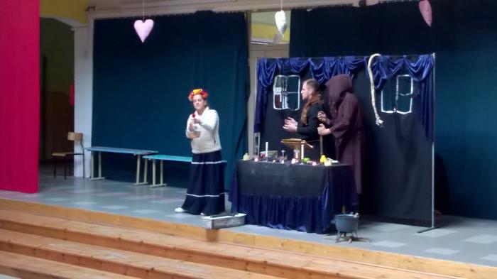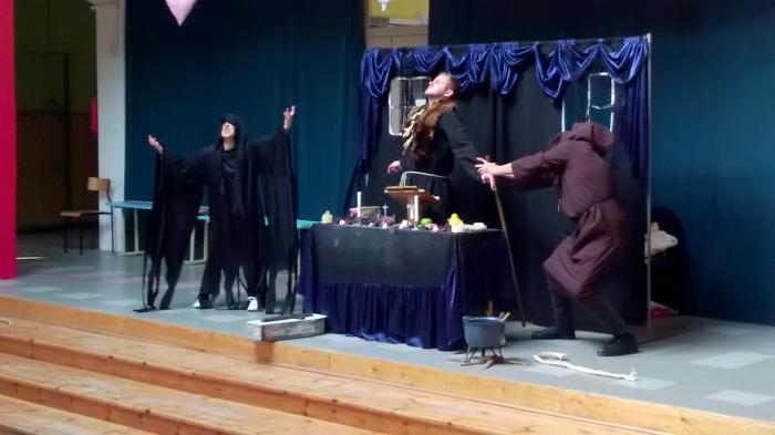 Przedstawienie wystawił objazdowy Teatr Młodego Pokolenia z Białegostoku. Aktorzy swą wyrazistą grą i interpretacją tekstu zainteresowali nawet tych uczniów, którzy dopiero mieli się zmagać z omówieniem tej obowiązkowej lektury.