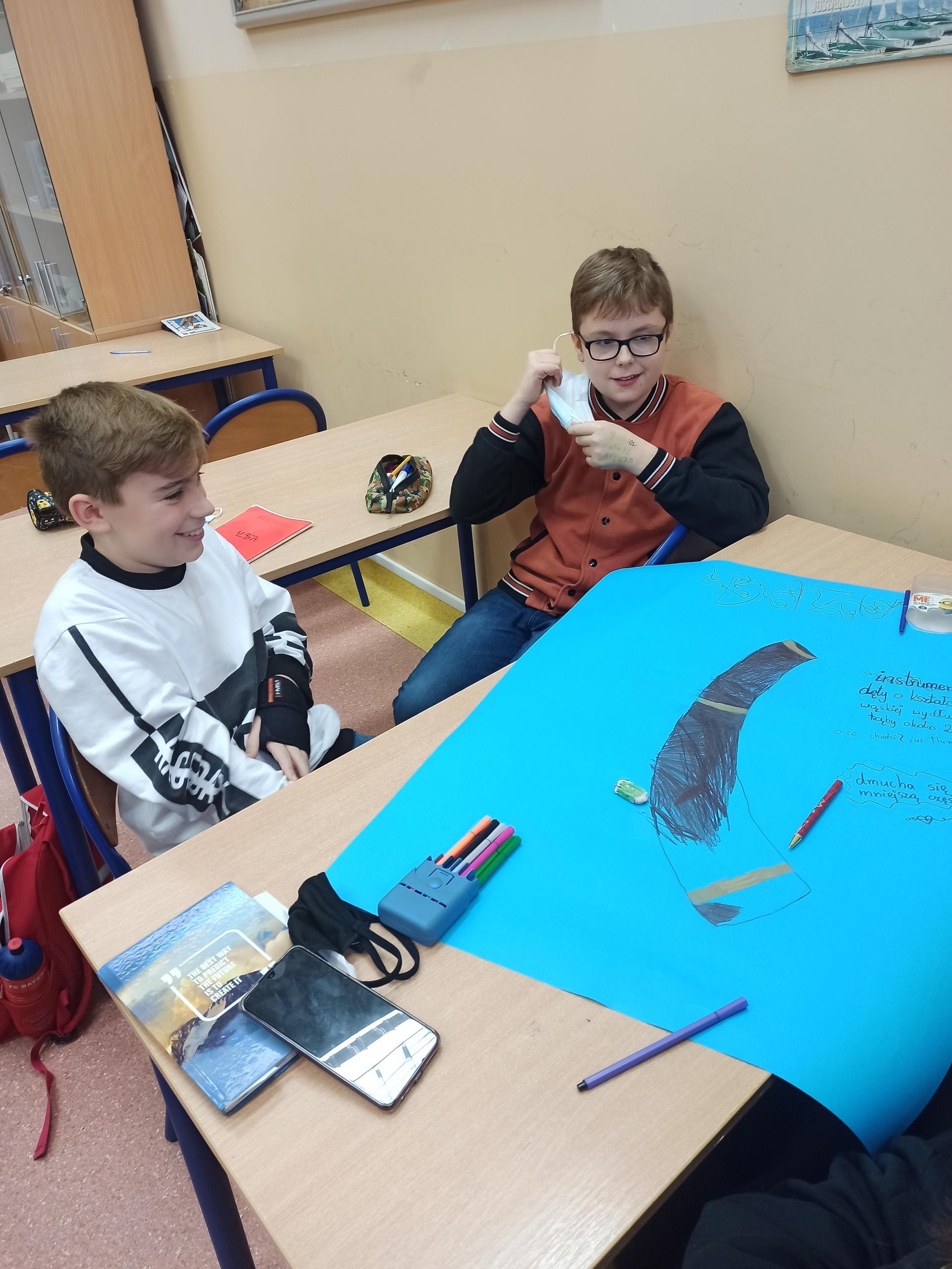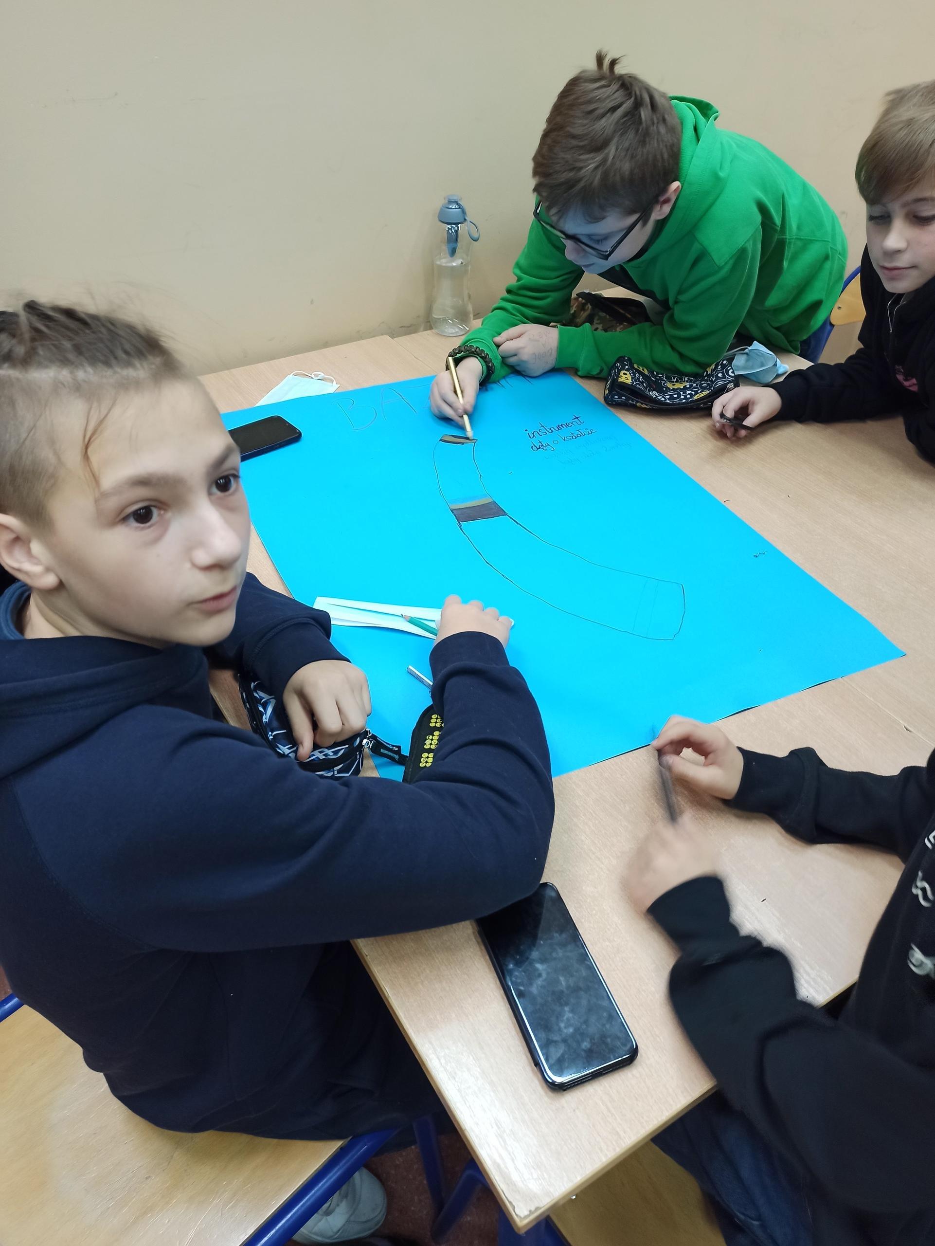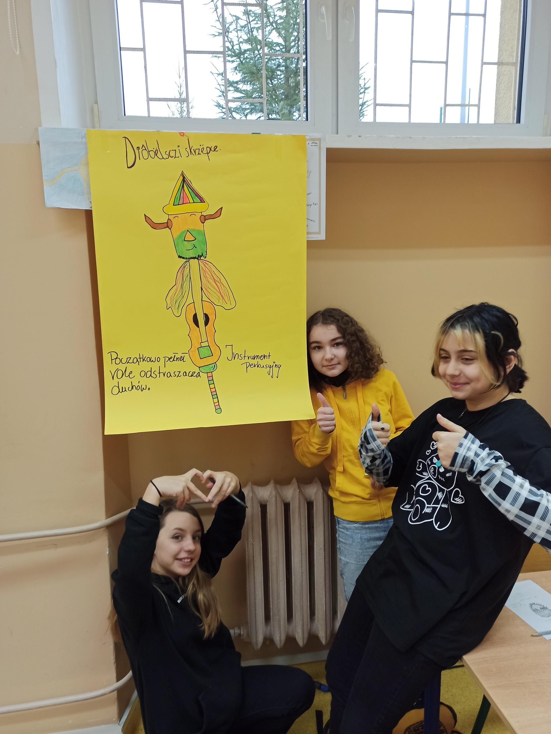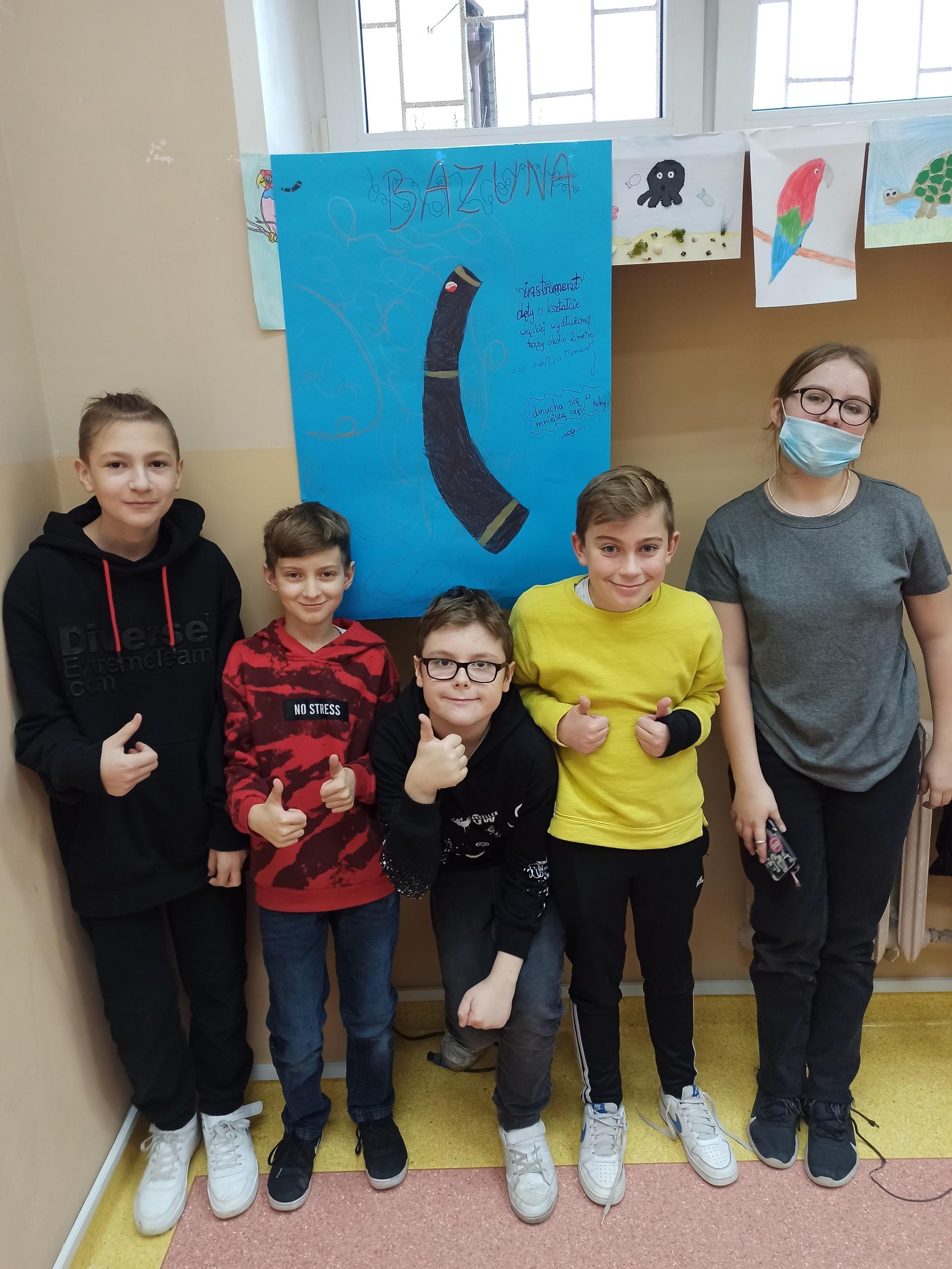 Uczniowie z klasy 7c podczas spotkania online z panem Józefem Roszmanem - kaszubskim gawędziarzem, mieli okazję poznać najstarsze ludowe instrumenty kaszubskie. Na podstawie zebranych informacji uczniowie przystąpili do pracy i wykonali w trzech grupach plakaty przedstawiające: bazunę, diabelskie skrzypce oraz burczibas.