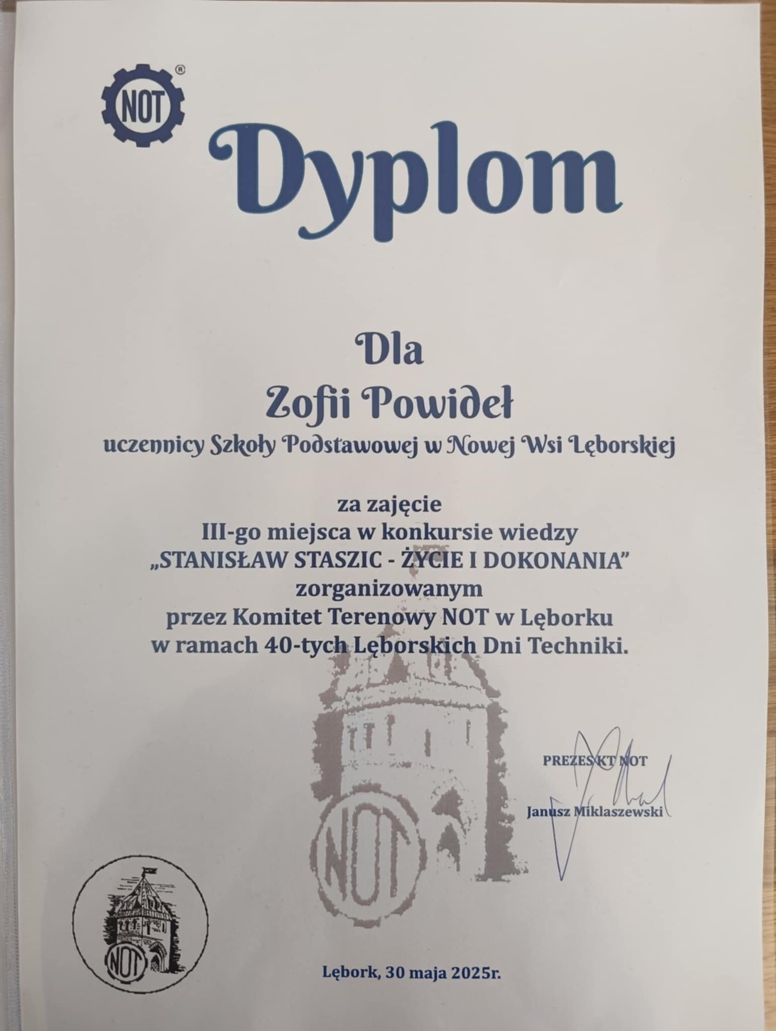 Powiatowy Konkurs: "Polscy Inżynierowie i Wynalazcy. Stanisław Staszic - życie i dokonania". Pod takim właśnie hasłem zorganizowany został przez Komitet Terenowy Naczelnej Organizacji Technicznej w Lęborku konkurs w ramach 40-tych Lęborskich Dni Techniki.