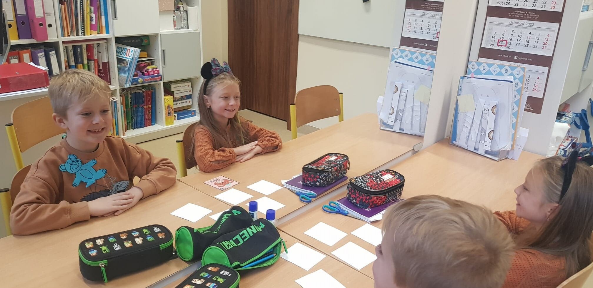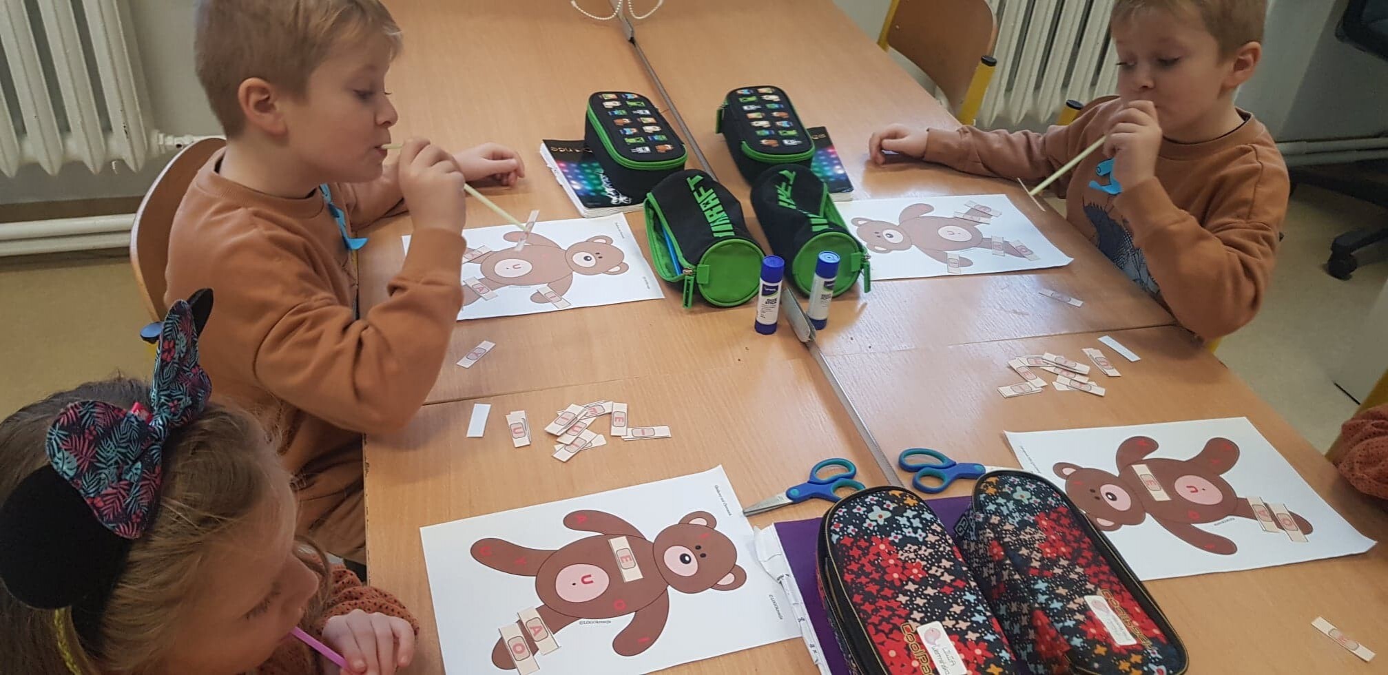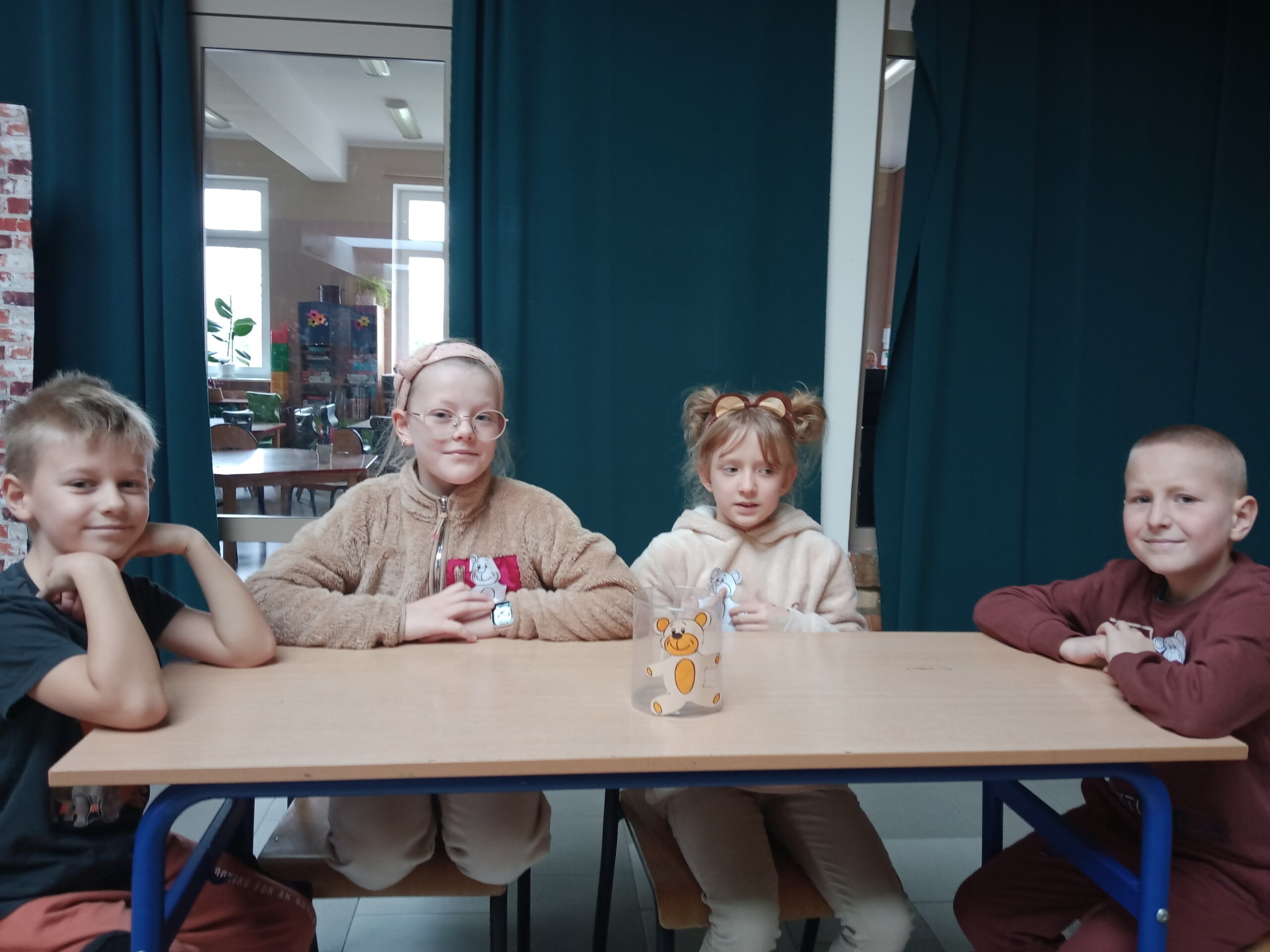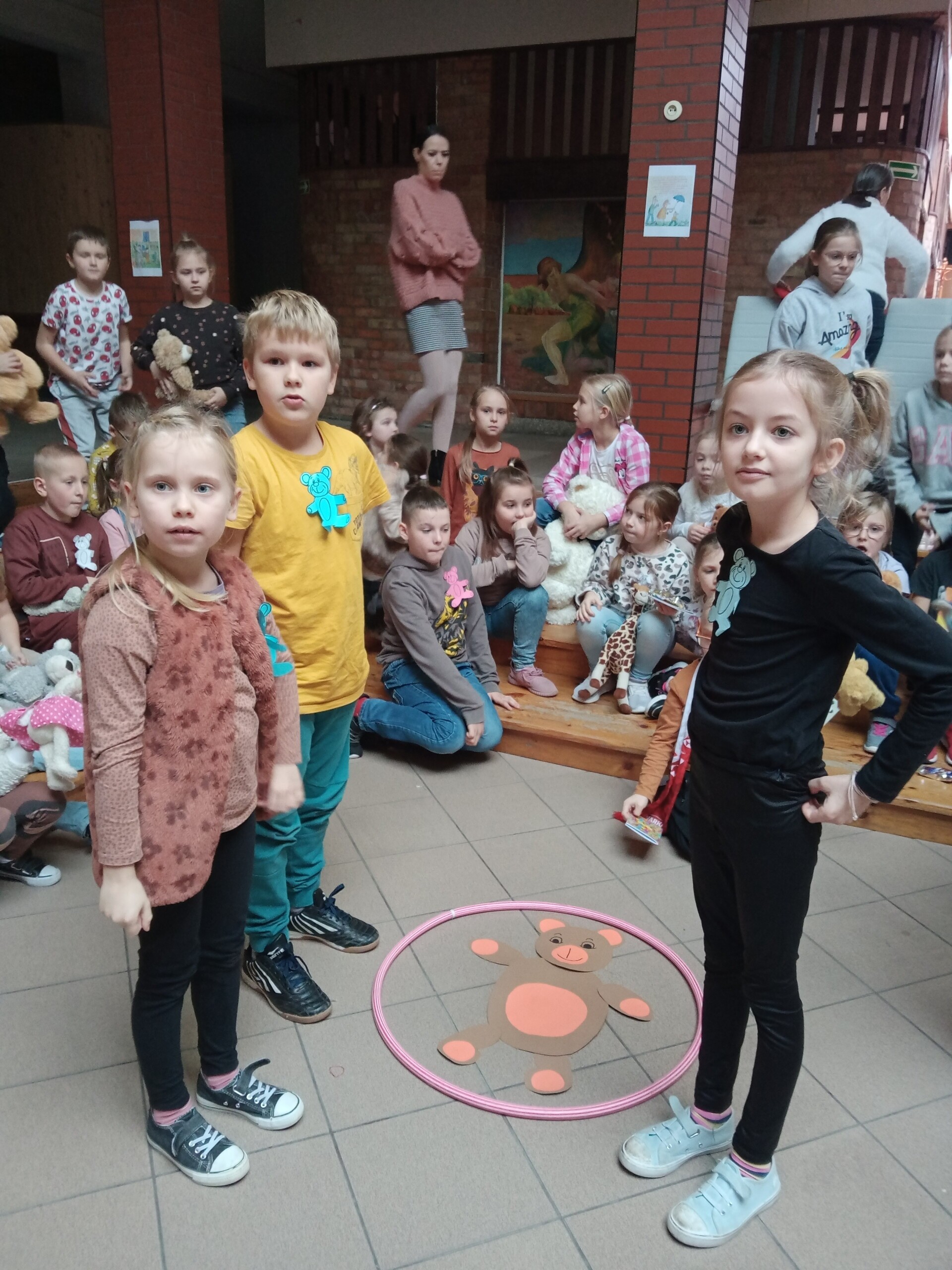 Na holu pojawiła się gazetka przedstawiająca postacie znanych, bajkowych bohaterów oraz różne gatunki niedźwiedzi występujących w przyrodzie. W ramach zajęć uczniowie mieli okazję wysłuchać opowiadań i obejrzeć bajki, których bohaterem był miś.