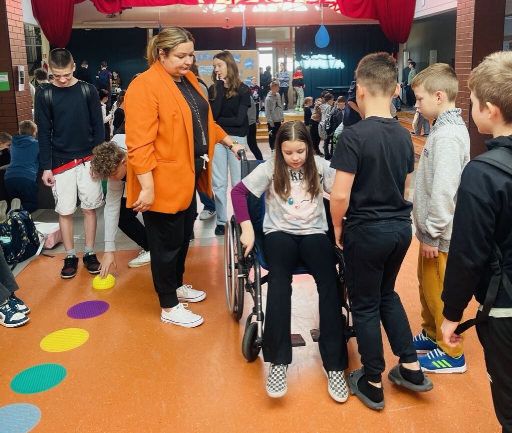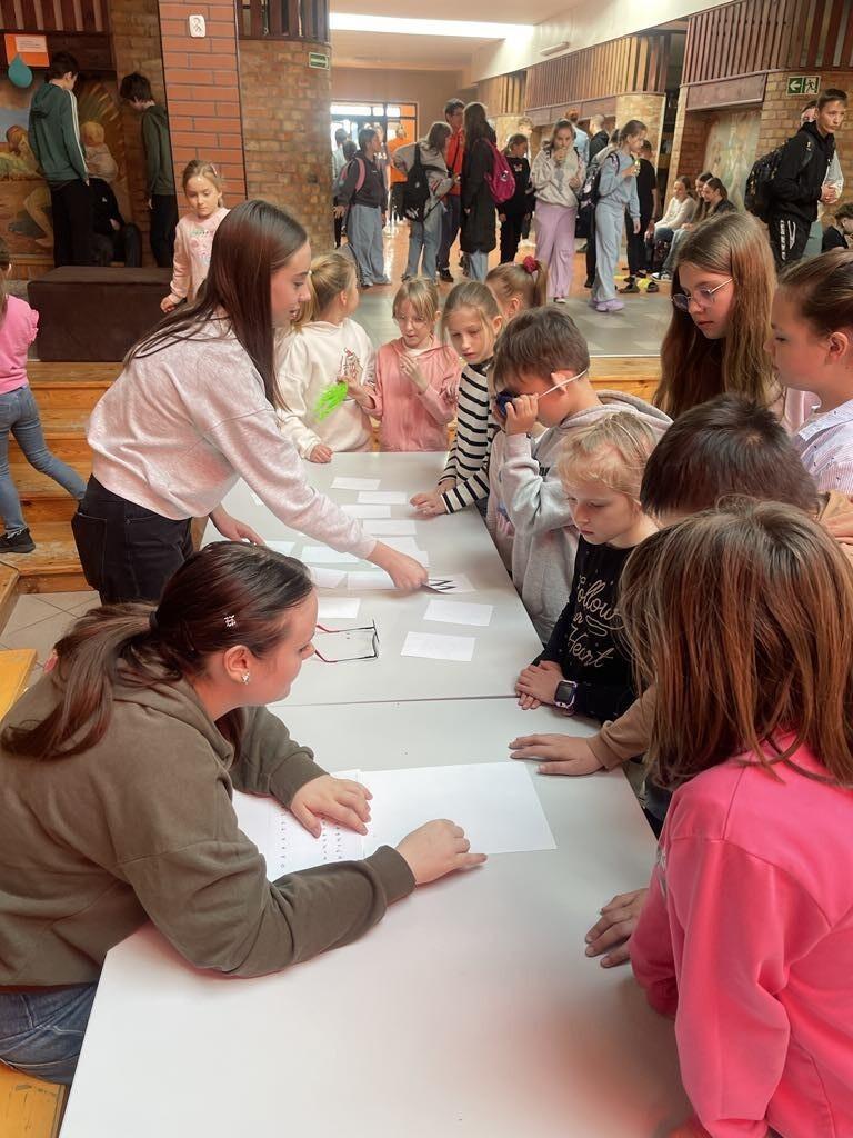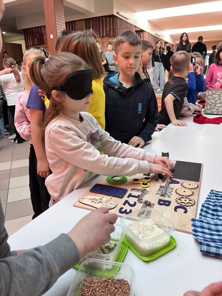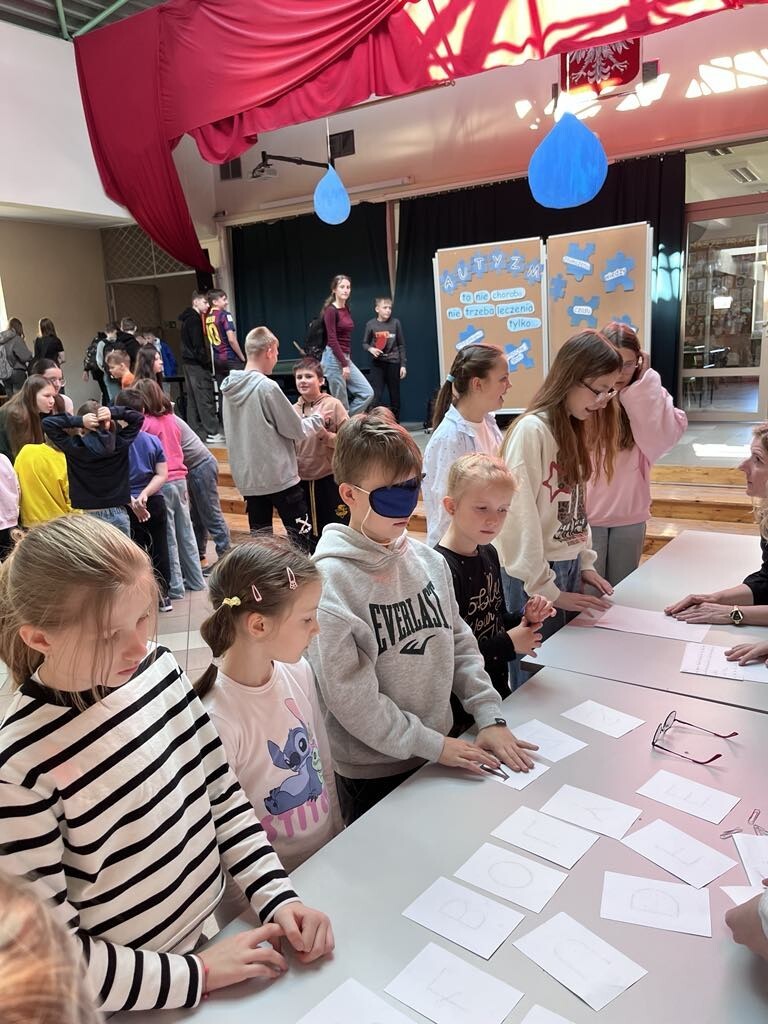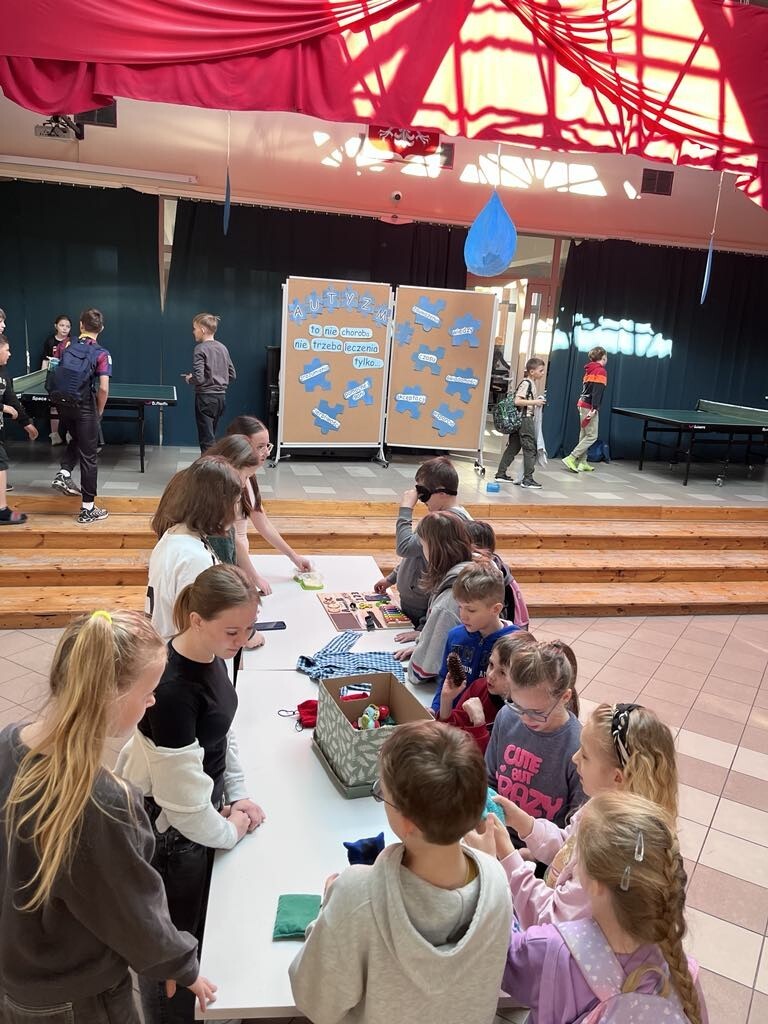 Na szkolnym patio pojawiły się gazetki, a w czasie przerw czekały na uczniów stacje zadaniowe, na których mieli oni okazję poczuć się jak osoby ze specjalnymi potrzebami edukacyjnymi. Były wiec warsztaty pozwalające poznać dzieciom świat z perspektywy osób ze spektrum autyzmu, osób niepełnosprawnych ruchowo, z zaburzeniami wzroku, czy słuchu.