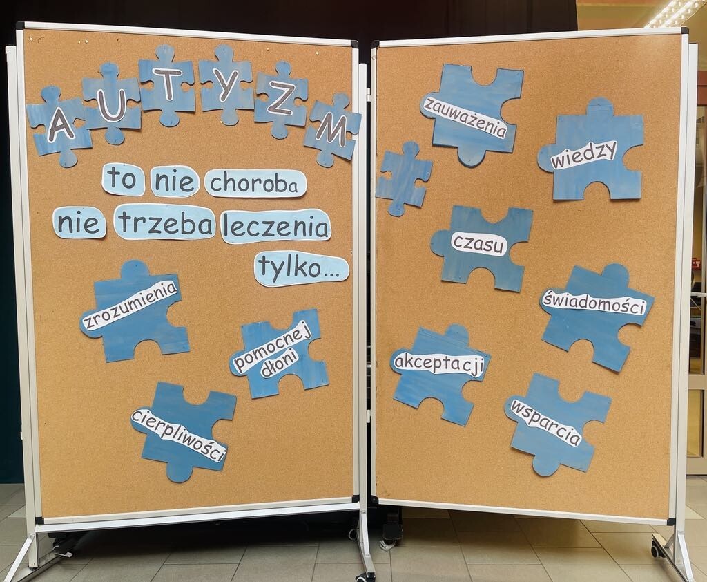 W związku z obchodzonym 2 kwietnia Światowym Dniem Świadomości Autyzmu uczniowie mieli okazję przybliżyć sobie świat osób ze specjalnymi potrzebami edukacyjnymi. W akcję zaangażowali się zarówno nauczyciele jak i uczniowie. Głównym celem akcji było poszerzenie wiedzy naszej społeczności szkolnej na temat różnych niepełnosprawności, rozwijanie tolerancji i przeciwdziałanie dyskryminacji.