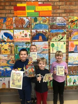 Jesienne miesiące to czas, w którym przyroda rozpieszcza nas barwami… to świetny moment, by utrwalić to piękno w obrazach. Nasi uczniowie z klas 1-3 wzięli więc udział w Szkolnym Konkursie Plastycznym „ Krajobraz Kaszubski … jesienią”. Oto jego laureaci. Nagrody zdobyli: Artur Onasz kl.1c, Stasiu Ramczyk 1b, Kinga Lewandowska 2a, Hania Jaroń 2b, Zosia Wrońska 3b . Wyróżnienia zdobyli:Hanna Dąbrowska 1a, Jakub Szadkowski 1b, Zuzanna Drwięga 1b, Franek Sas 2b, Hania Garbaczewska 2a . Podziękowania dla Wszystkich, którzy wzięli udział w konkursie, wykonaliście przepiękne prace! Zapraszamy do Galerii na korytarzu klas młodszych.