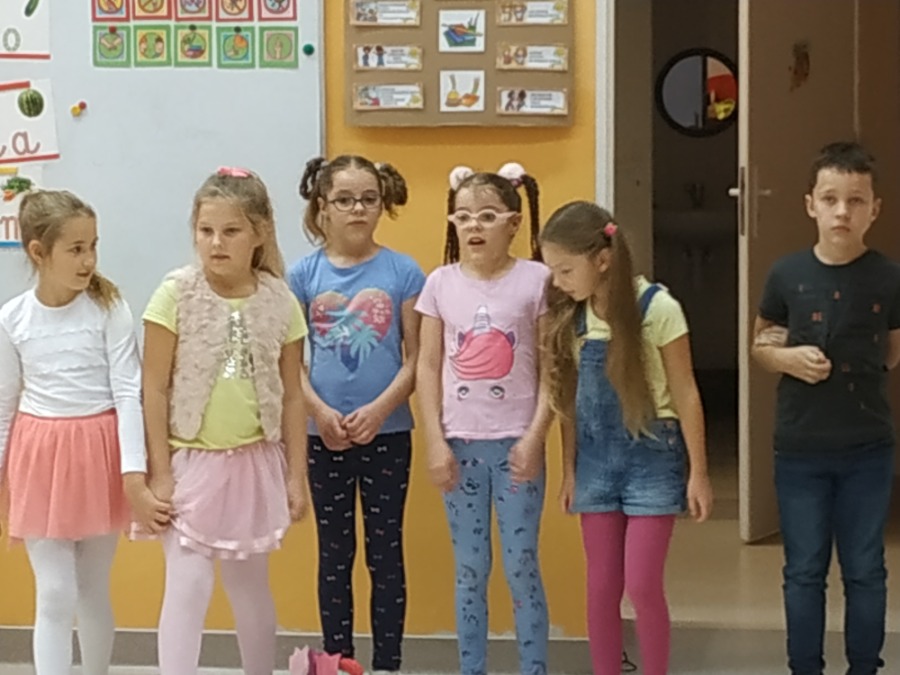 W ramach zajęć ,, Teatr młodego aktora’’ kilkoro uczniów z klasy 3a wystąpiło przed najmłodszą publicznością naszej szkoły, a mianowicie 0,,b’’. Z pełnym zaangażowaniem i zapałem brały udział w próbach i przygotowaniach do występu pt ,, Dzień Przedszkolaka”. Wszyscy spisali się na medal, dzieci miały okazję zaprezentować swoje talenty przed młodszymi kolegami i koleżankami, od których otrzymali gromkie brawa. Na koniec pobawiliśmy się wspólnie z naszą ,, publicznością’’. W ten sposób zaczynamy naszą przygodę z ,, aktorstwem’’.