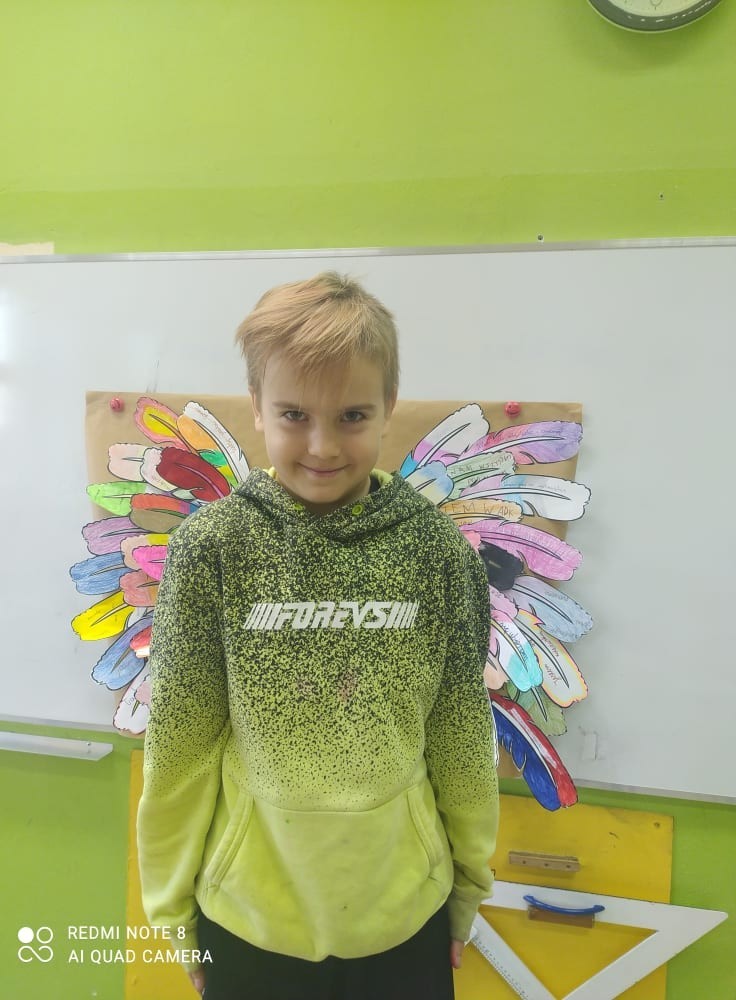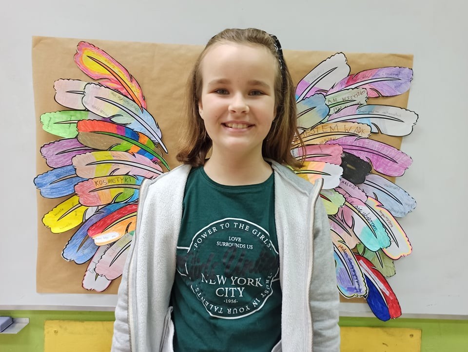 Uczniowie klasy 4a podczas godziny wychowawczej stworzyli Skrzydła Supermocy. Każdy uczeń na piórach pisał swoje super moce (talenty, zalety, umiejętności) a następnie je ozdabiał. Powstały piękne skrzydła, które będą nas unosić w górę.