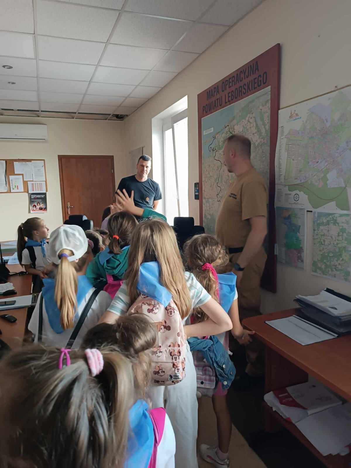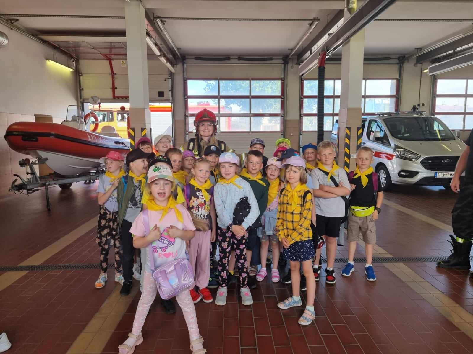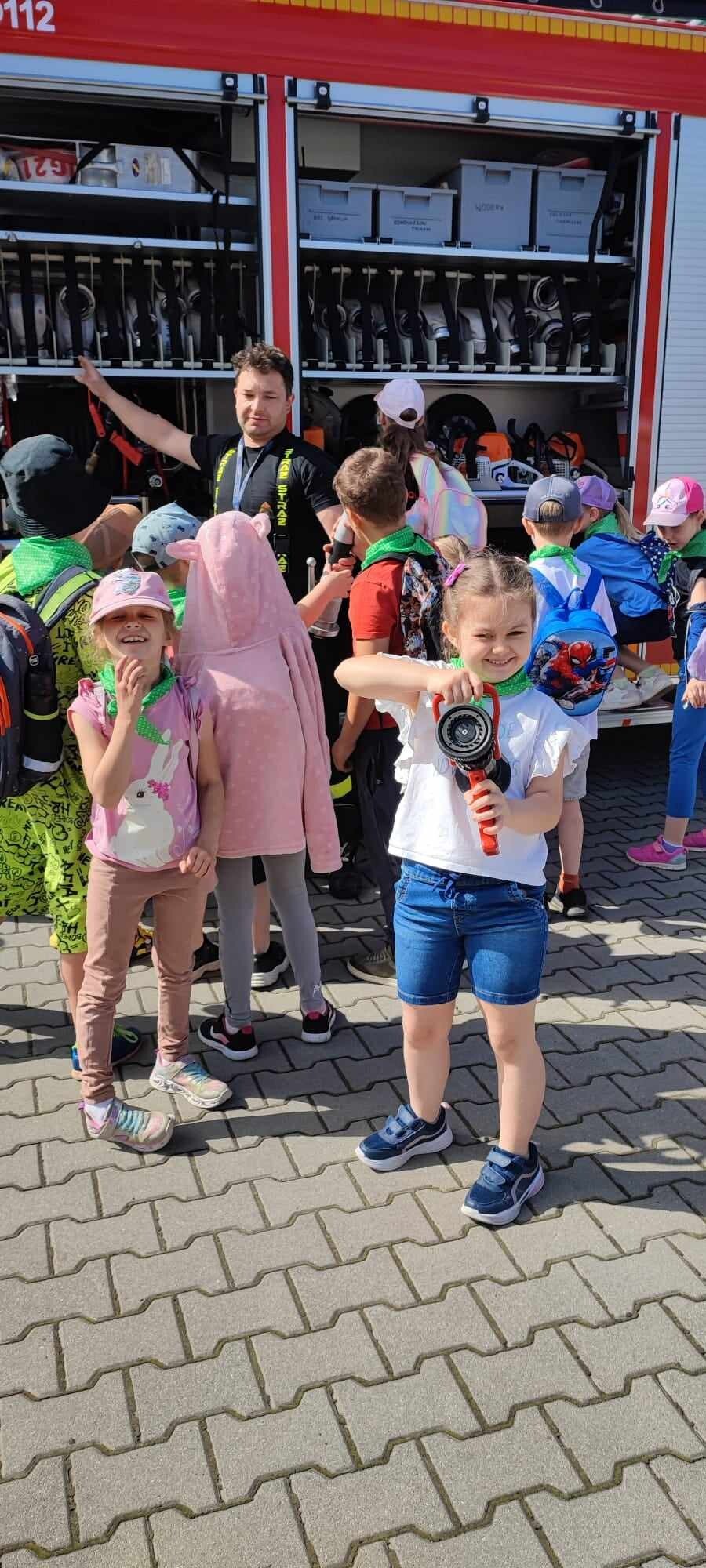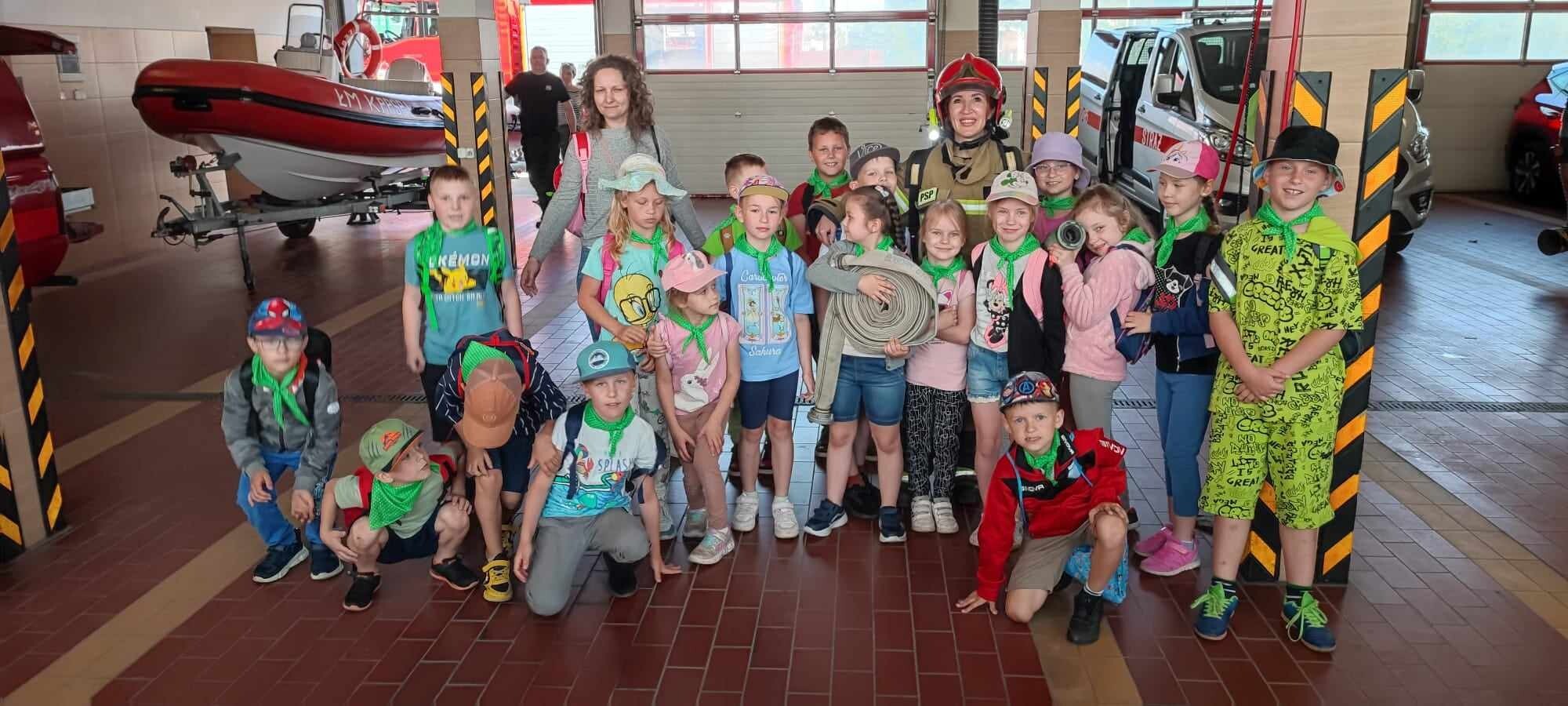 29 maja 2024 r. uczniowie klas pierwszych odwiedzili strażaków z Komendy Powiatowej Państwowej Straży Pożarnej w Lęborku. Celem wycieczki było zapoznanie uczniów ze sprzętem strażackim, udzielaniem pierwszej pomocy poszkodowanym oraz pracą Strażaka. W siedzibie Straży Pożarnej uczniowie zwiedzili wszystkie pomieszczenia. W czasie spotkania mogli zapoznać się ze sprzętem, któr.ego strażacy używają w różnych, trudnych warunkach oraz metodami używanymi w czasie gaszenia pożarów i ratowania ludzi z wypadków. Strażacy zademonstrowali zjazd po ześlizgu, a także sygnał dźwiękowy i świetlny wozów strażackich. Dzieciom przedstawiono również zasady bezpiecznego zachowania podczas zauważenia pożaru, możliwości bezpiecznej ewakuacji z zagrożonego budynku oraz jak prawidłowo wykonać zgłoszenie na numer alarmowy. Byliśmy również świadkami wezwania Strażaków do akcji!