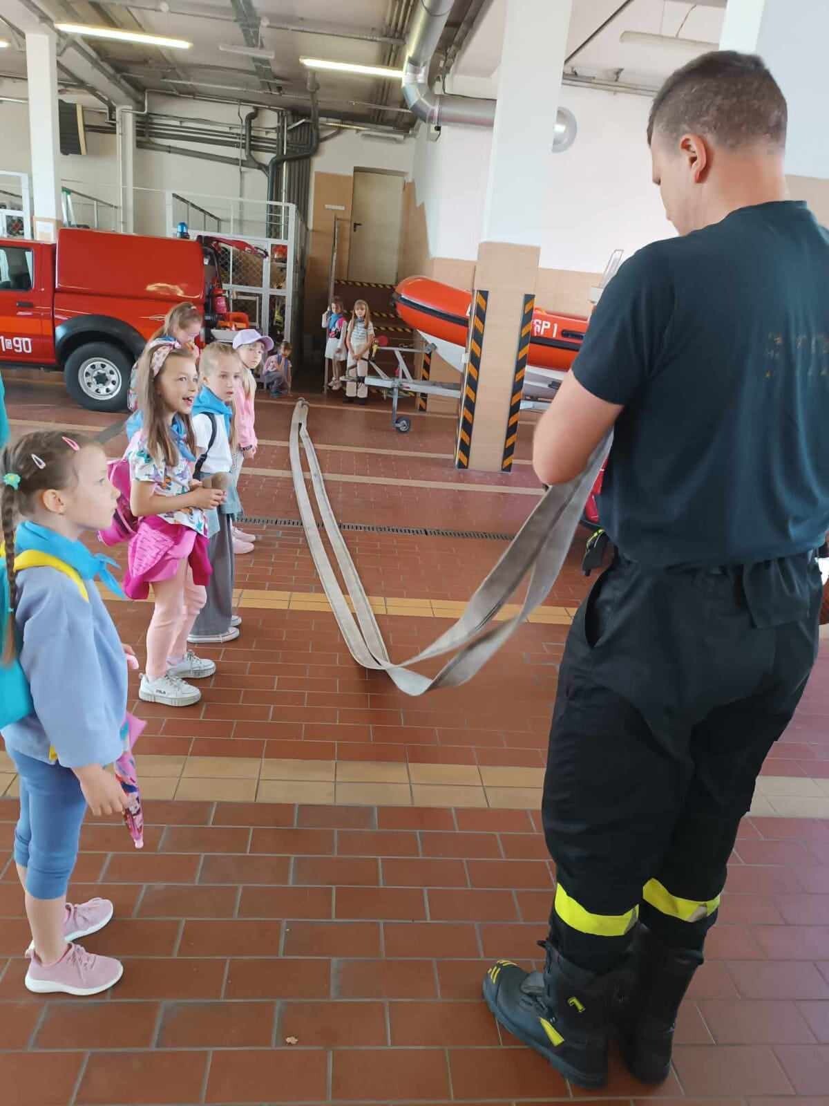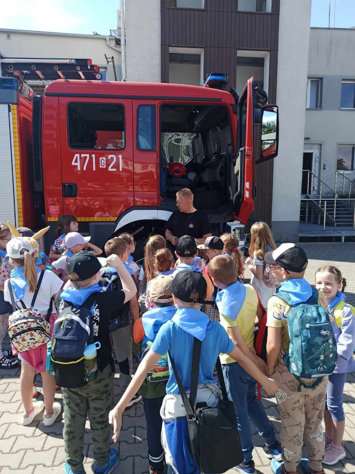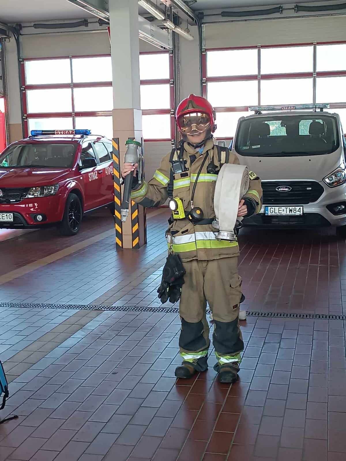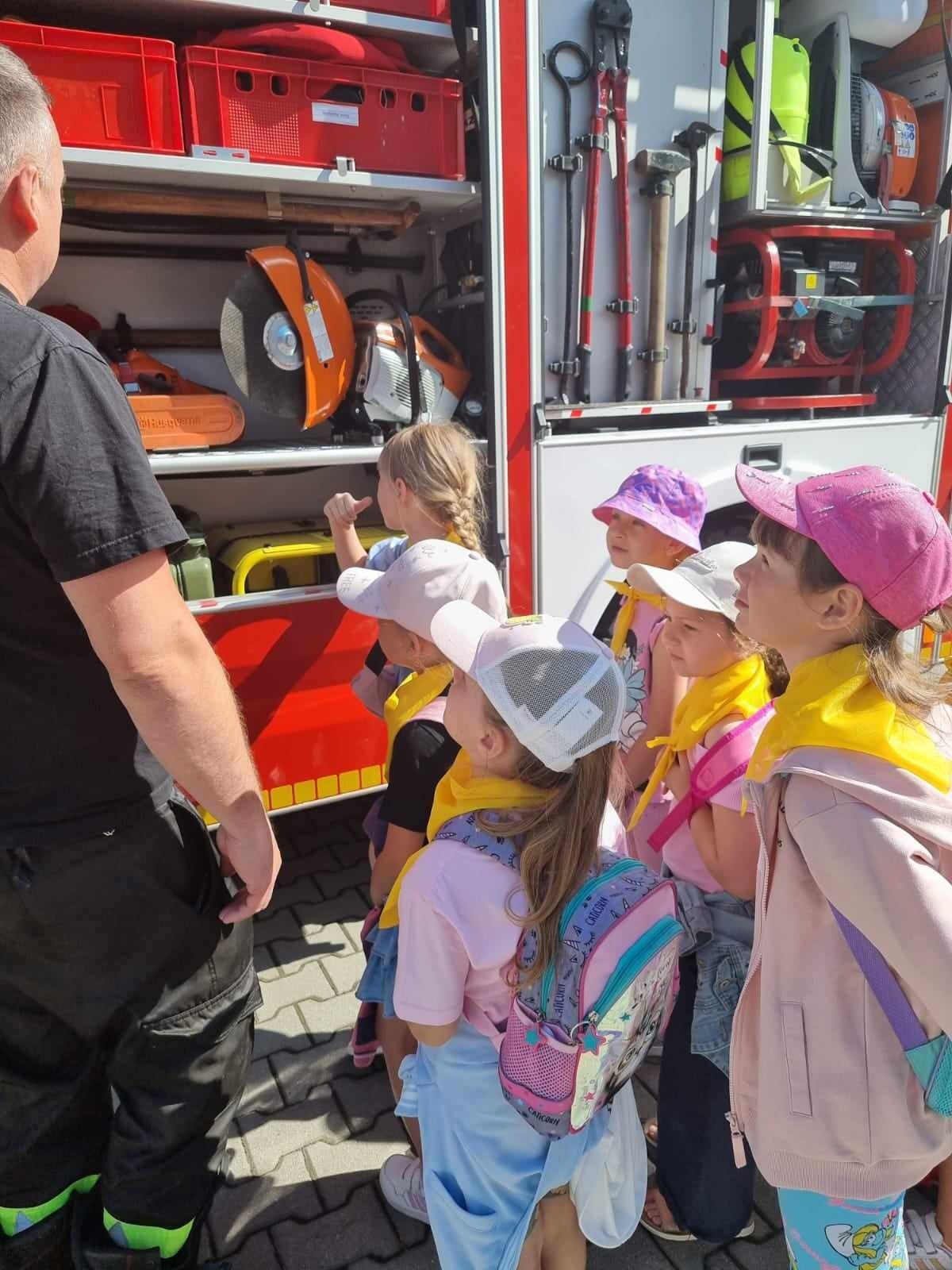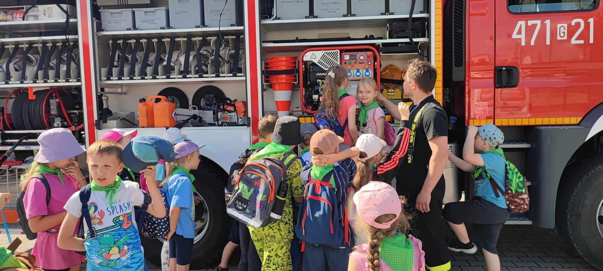 29 maja 2024 r. uczniowie klas pierwszych odwiedzili strażaków z Komendy Powiatowej Państwowej Straży Pożarnej w Lęborku. Celem wycieczki było zapoznanie uczniów ze sprzętem strażackim, udzielaniem pierwszej pomocy poszkodowanym oraz pracą Strażaka. W siedzibie Straży Pożarnej uczniowie zwiedzili wszystkie pomieszczenia. W czasie spotkania mogli zapoznać się ze sprzętem, któr.ego strażacy używają w różnych, trudnych warunkach oraz metodami używanymi w czasie gaszenia pożarów i ratowania ludzi z wypadków. Strażacy zademonstrowali zjazd po ześlizgu, a także sygnał dźwiękowy i świetlny wozów strażackich. Dzieciom przedstawiono również zasady bezpiecznego zachowania podczas zauważenia pożaru, możliwości bezpiecznej ewakuacji z zagrożonego budynku oraz jak prawidłowo wykonać zgłoszenie na numer alarmowy. Byliśmy również świadkami wezwania Strażaków do akcji!