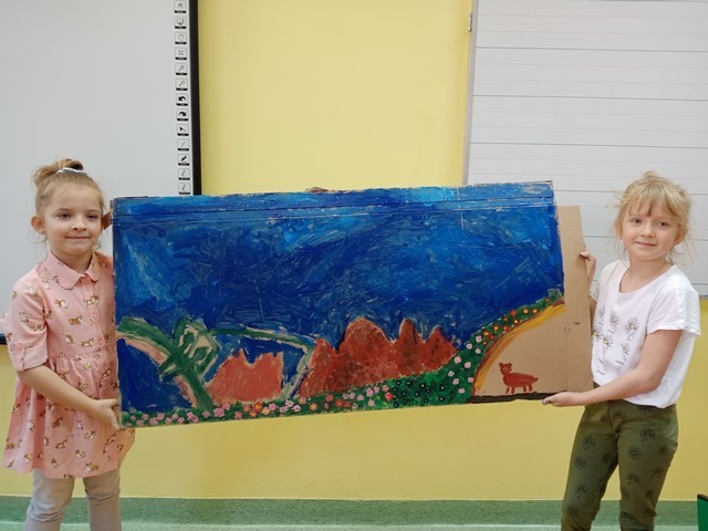 Uczniowie klasy I a dowiedzieli się dziś wiele o pracy malarza artysty – jego atrybutach, wyposażeniu pracowni oraz narzędziach pracy. Rozmawiali również o tym, skąd malarz czerpie wizje do malowania obrazów. Poznali kolory podstawowe oraz pochodne. Zobaczyli reprodukcje obrazów niektórych znanych malarzy i podziwiali pejzaże, portrety, martwe natury i abstrakcje. Na koniec sami zabawili się w malarzy i namalowali w grupach obraz pt. „Wiosna jest piękną porą roku”. A jak bawili się w artystów malarzy i jakie wyszły im dzieła, można podejrzeć na zdjęciach.