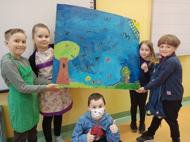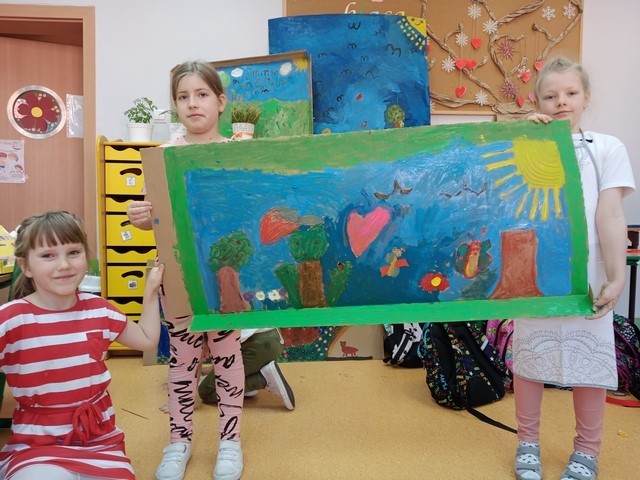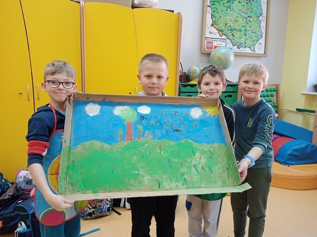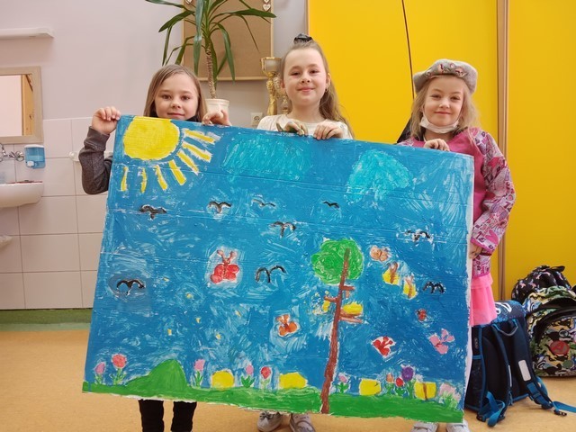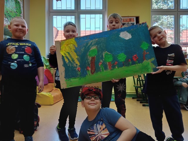 - Uczniowie klasy 1 a wiosennymi malarzami