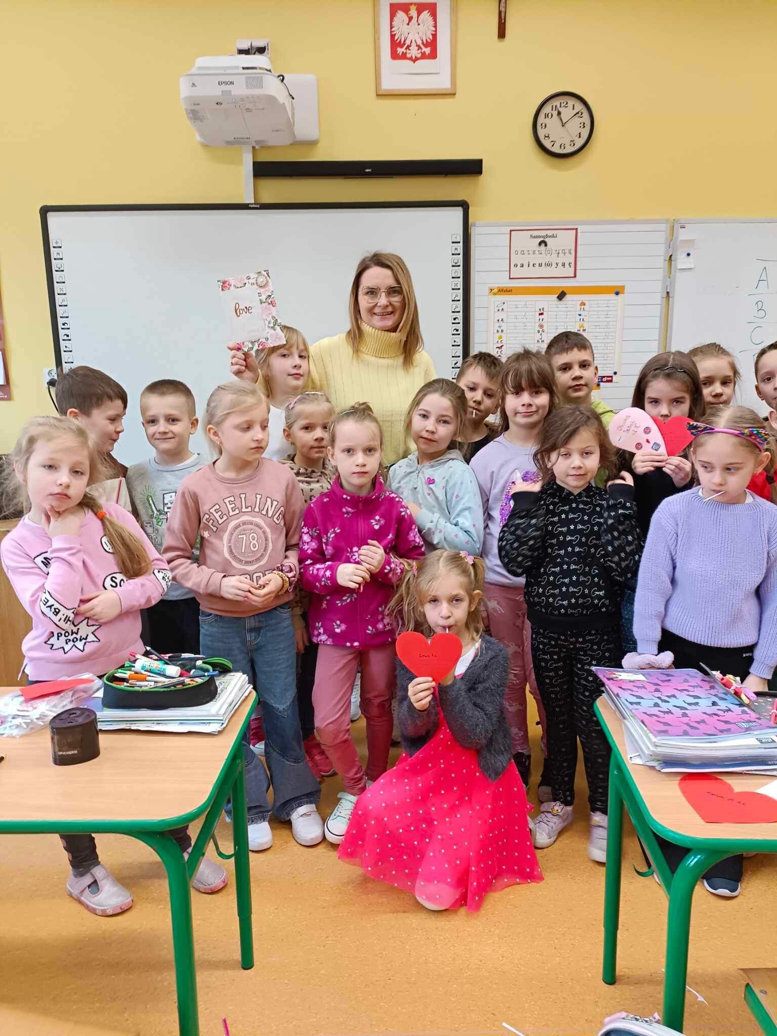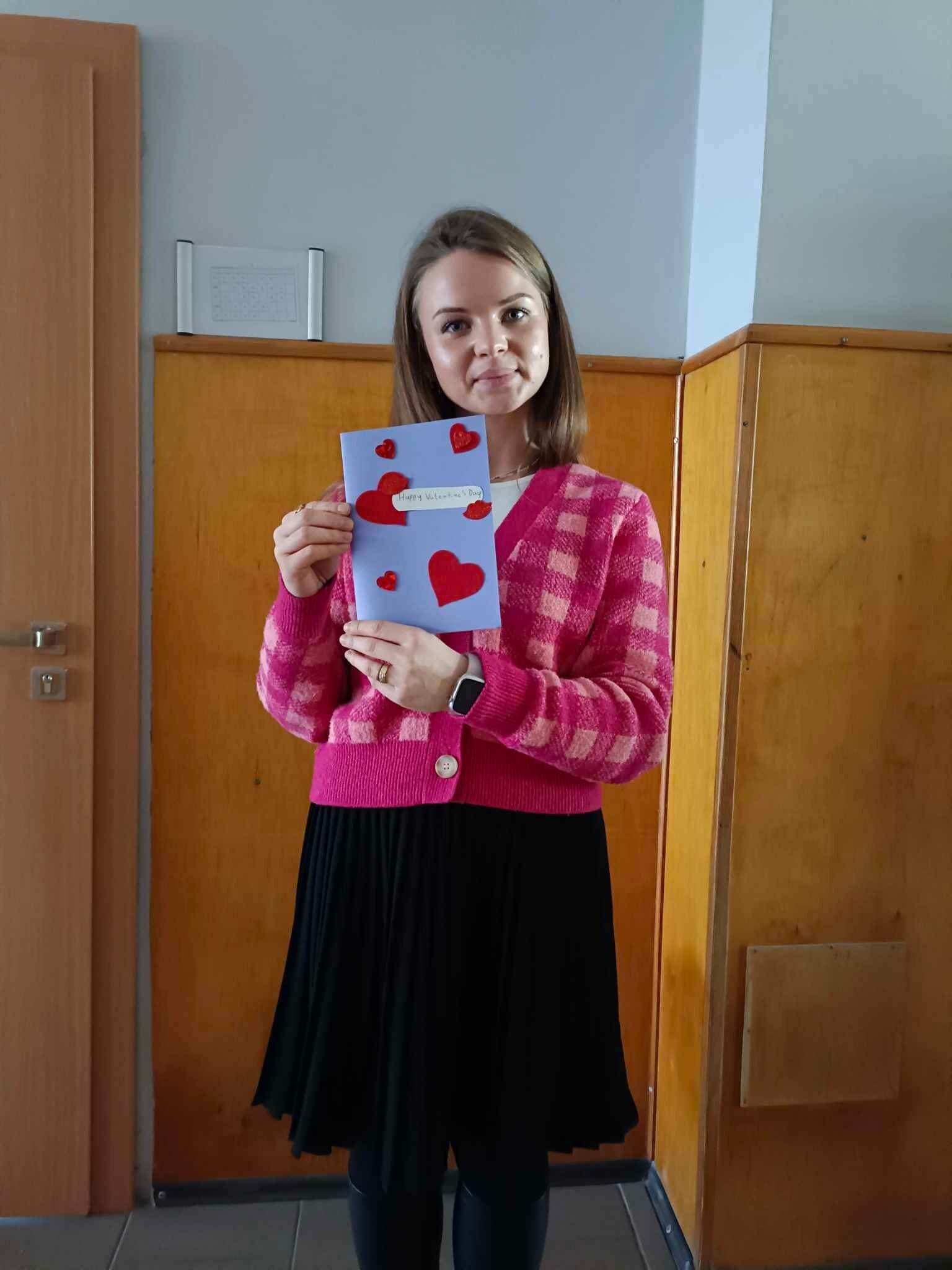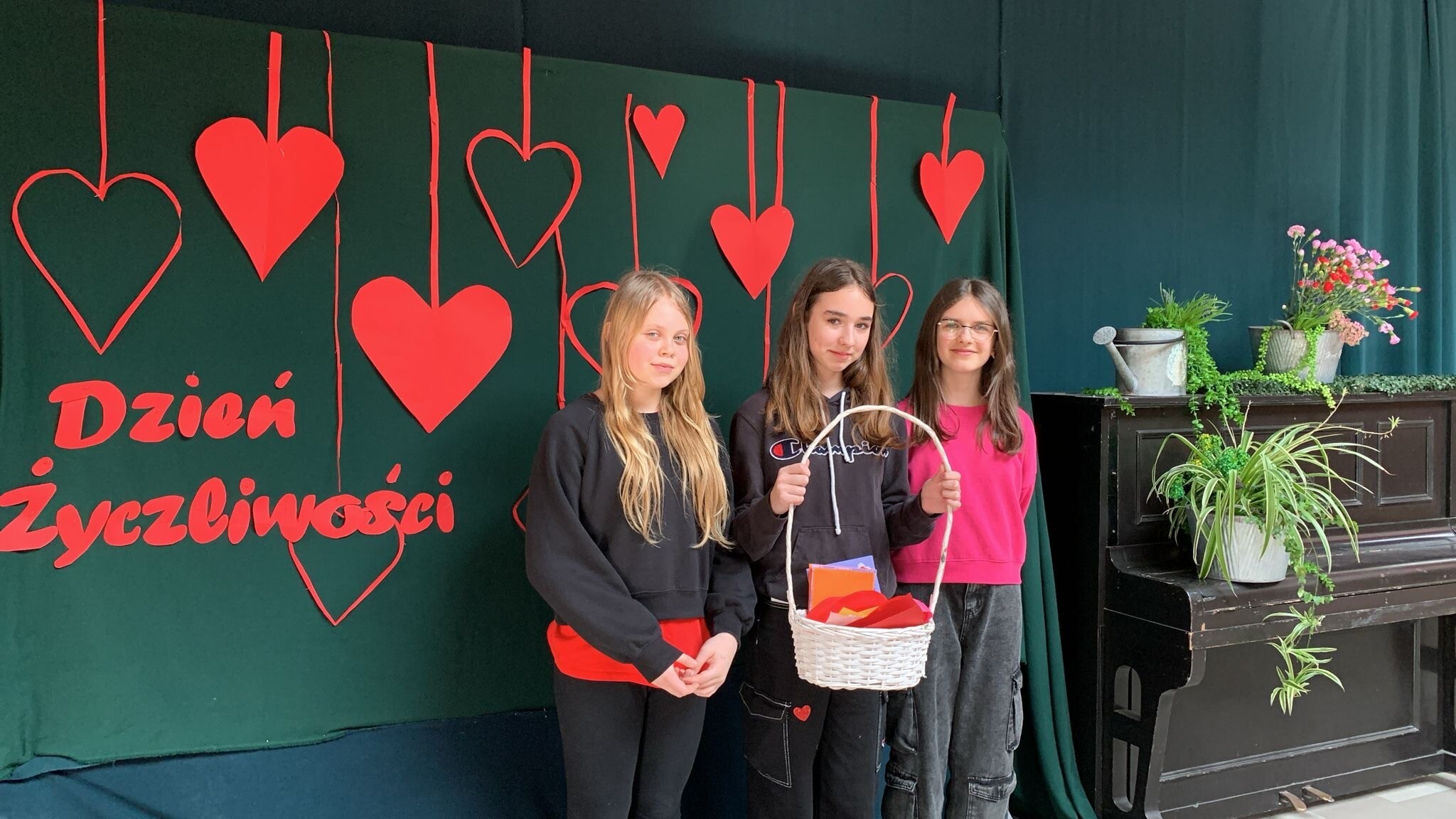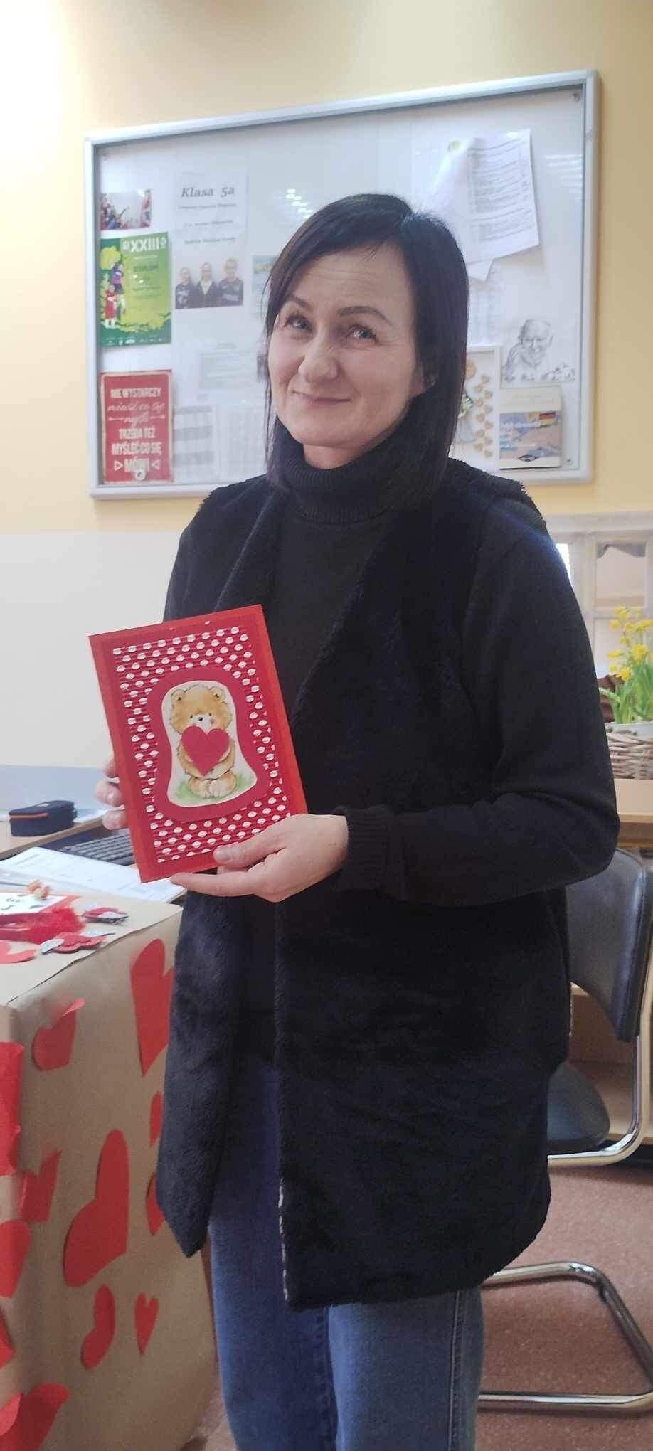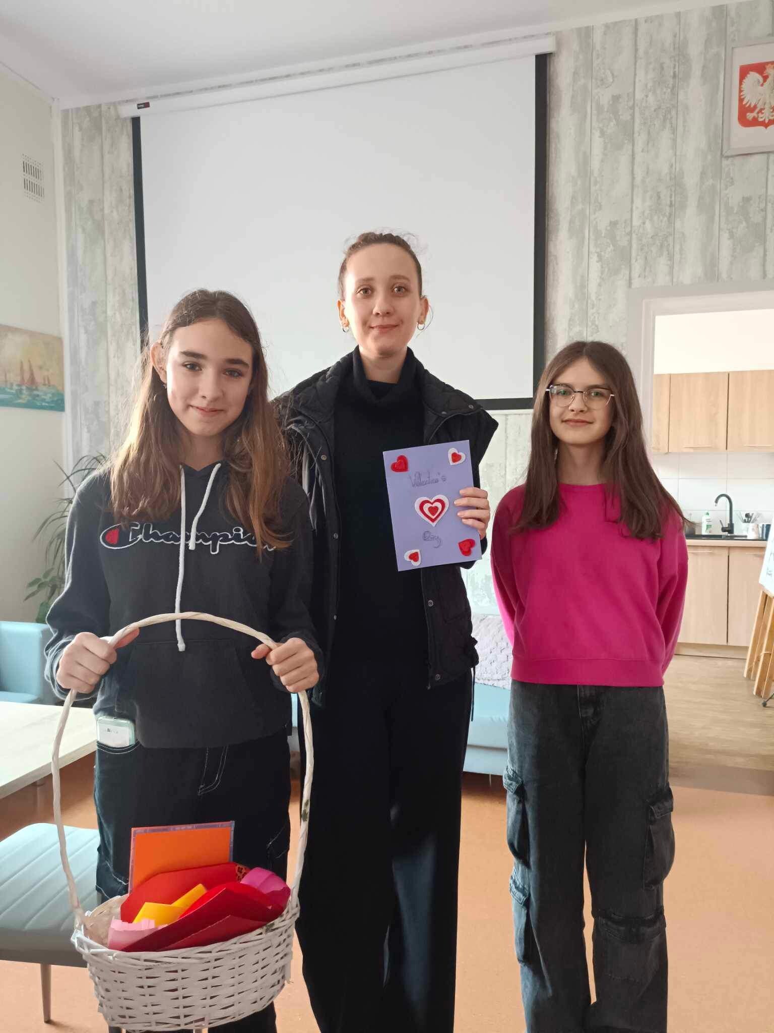 W walentynki uczennice - " roznosicielki" życzeń, z koszem pełnym pięknych kartek z serduszkami, wręczały Valentine's Cards.