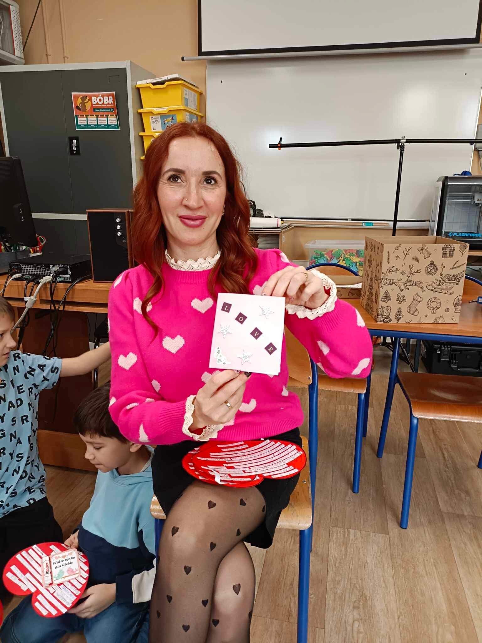 Na zajęciach koła języka angielskiego English Corner uczniowie przygotowali kartki z życzeniami dla nauczycieli jako wyraz sympatii i szacunku.