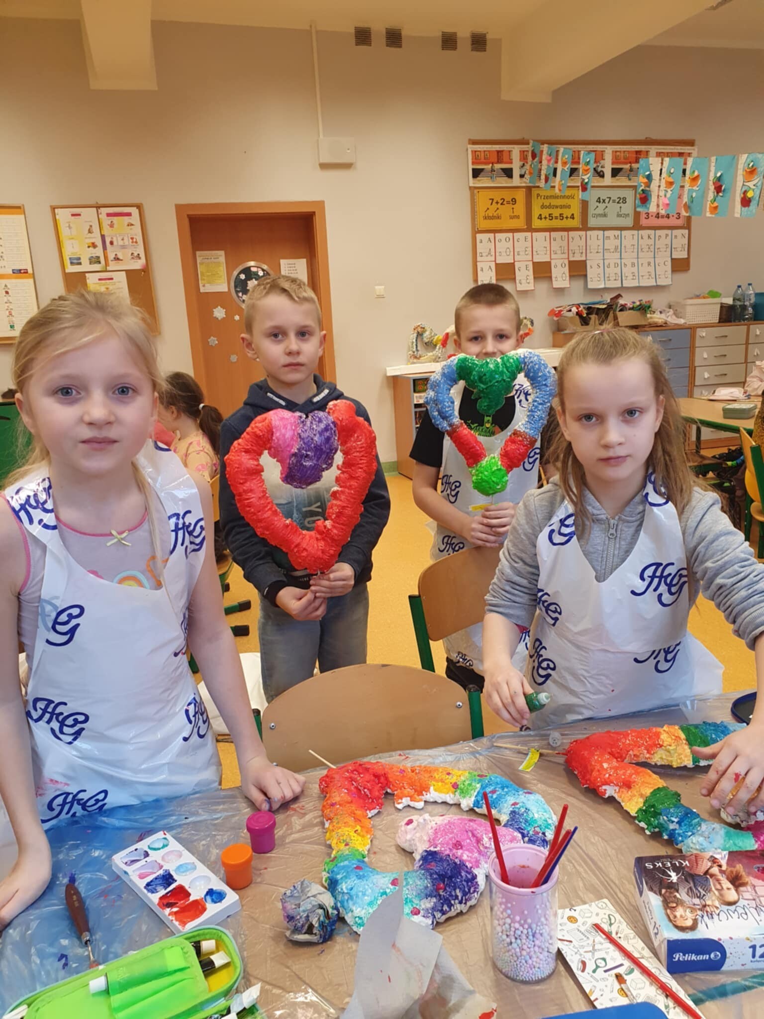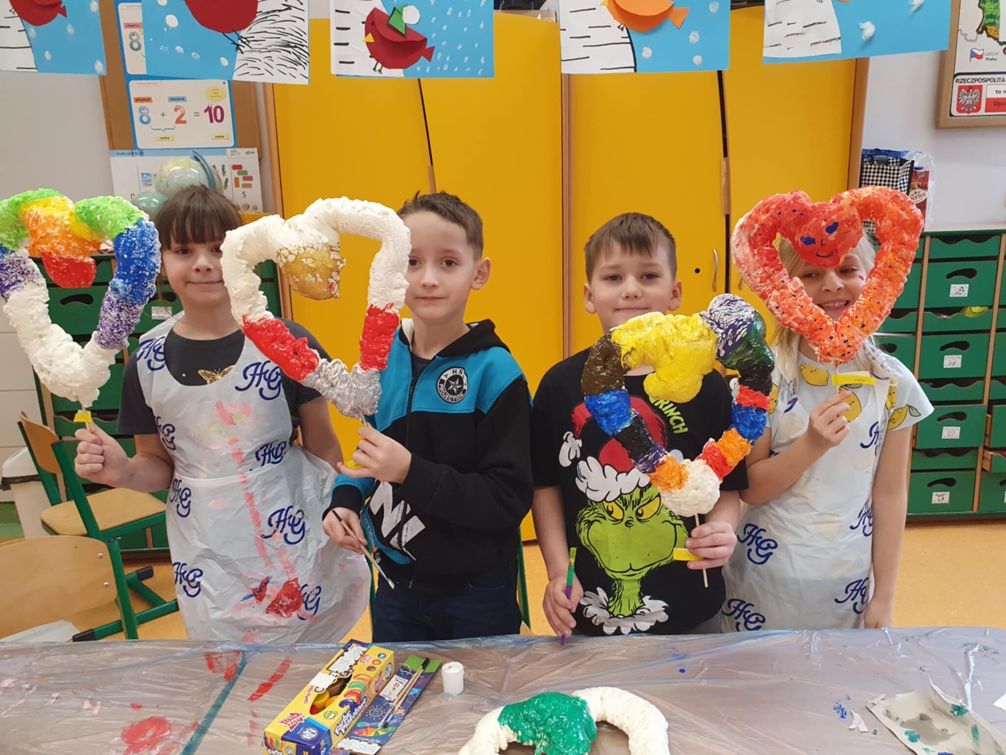 Uczniowie klasy 2c na walentynkowych zajęciach plastycznych ozdabiali wykonane wcześniej serca. Zajęcia plastyczne wzbogaciły rozmowy na temat życzliwości i serdeczności. To ważne, abyśmy okazywali sobie szacunek nie tylko w walentynki, ale każdego dnia!
