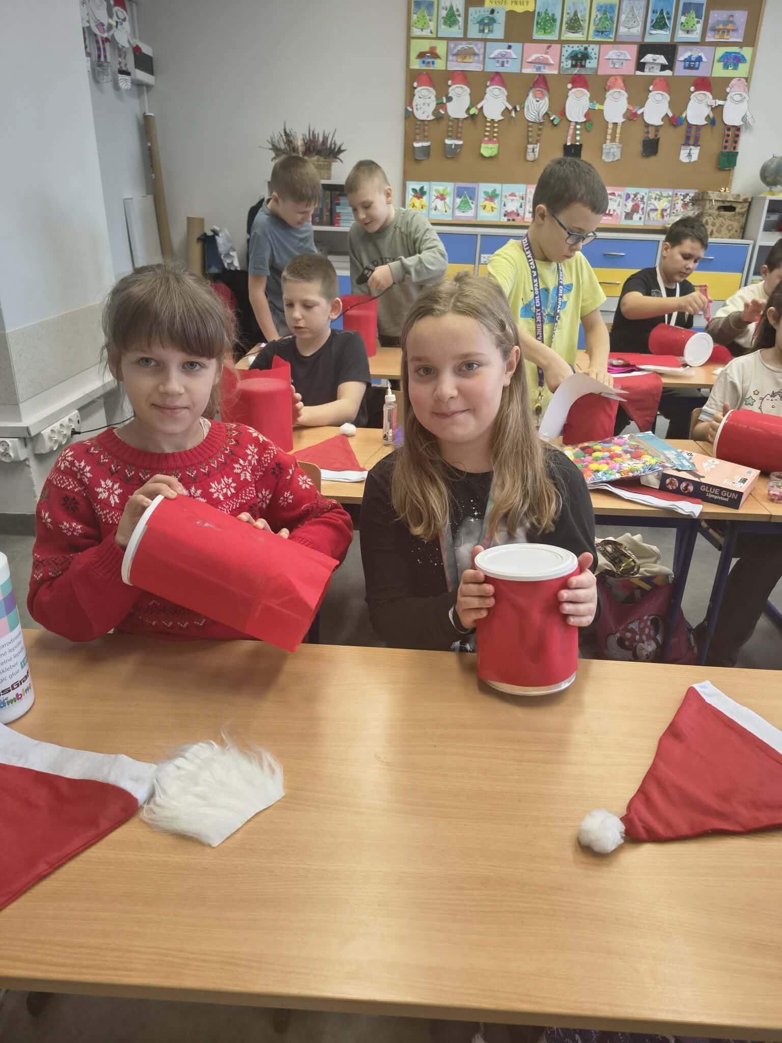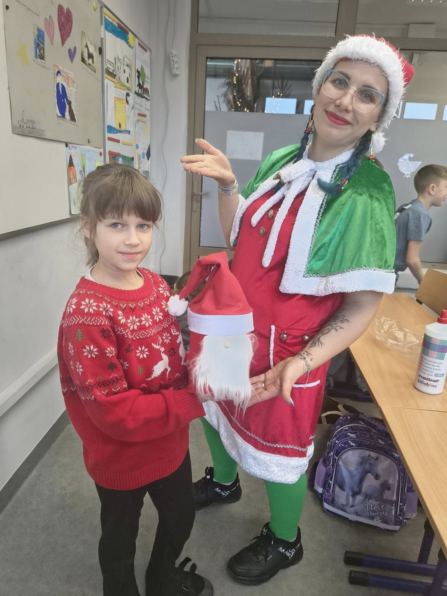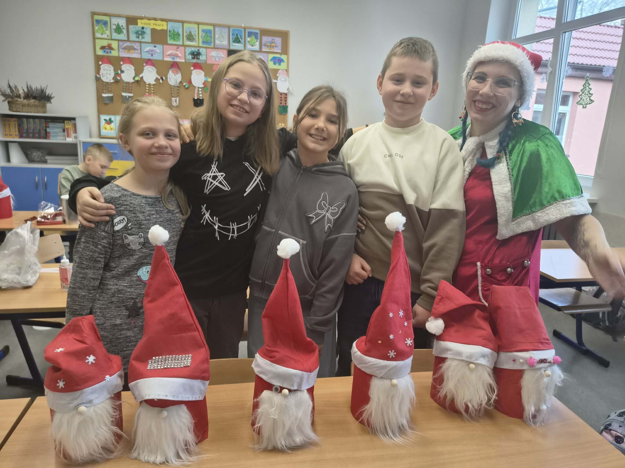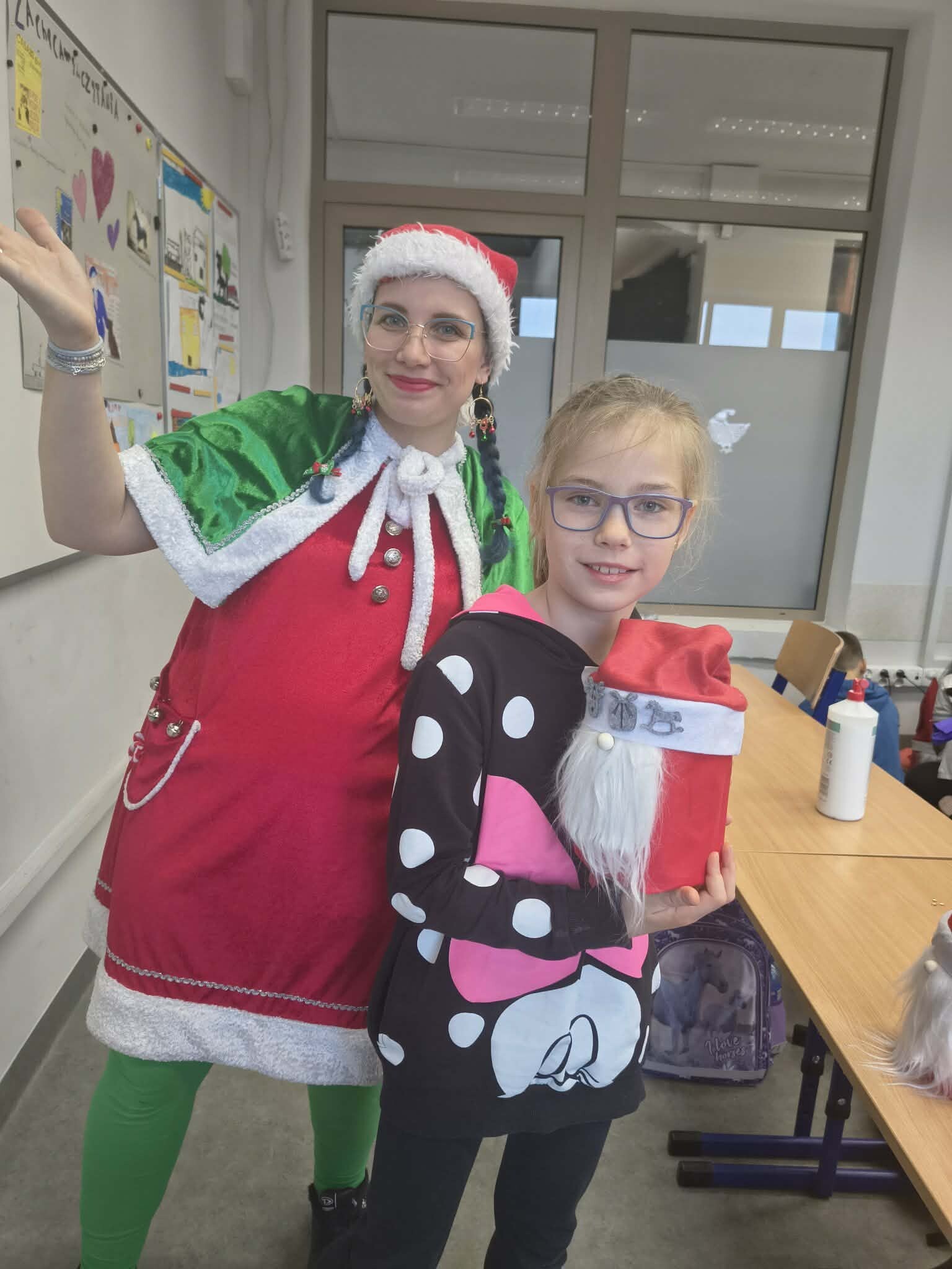 Dziś w klasie 3b dzień był pełen wyjątkowych emocji. Odwiedził nas niezwykły gość — wesoły elf, w którego wcieliła się mama Amelki. Poprowadziła dla dzieci pełne energii zabawy muzyczne oraz twórcze warsztaty plastyczne. Uczniowie z zaangażowaniem wykonywali piękne mikołajowe skrzaty, a następnie tworzyli własne, nastrojowe świąteczne lampiony.