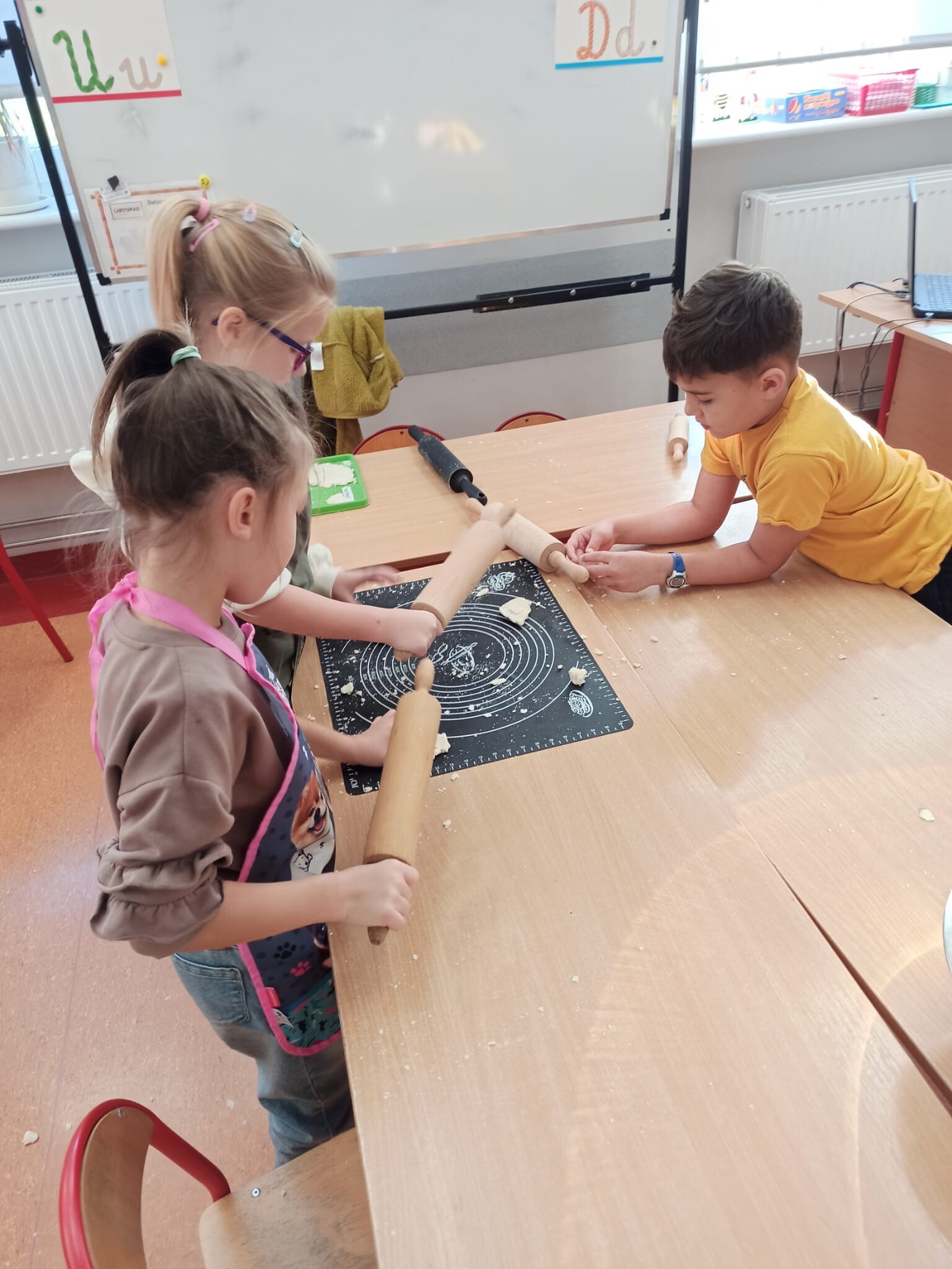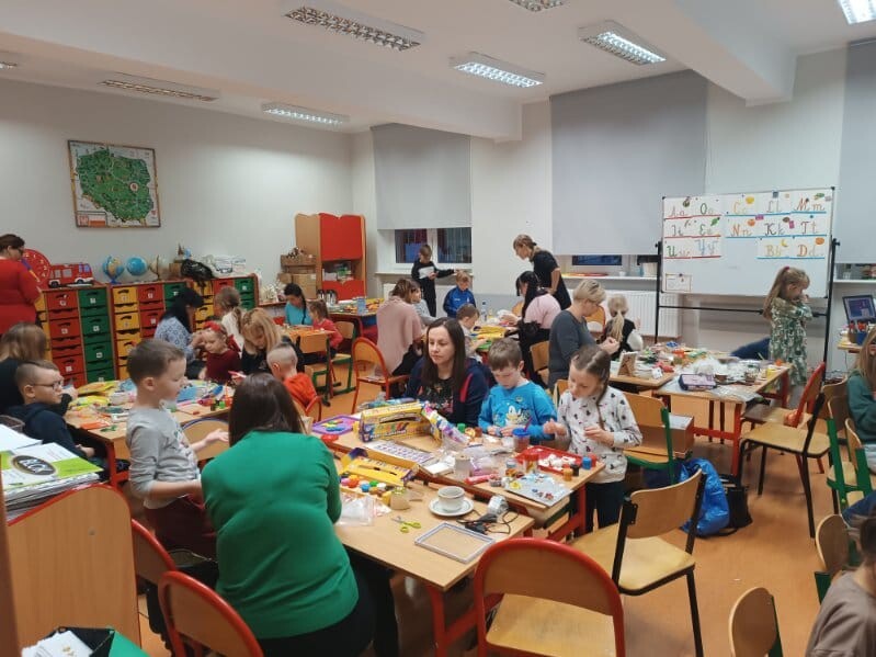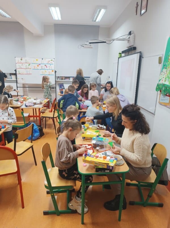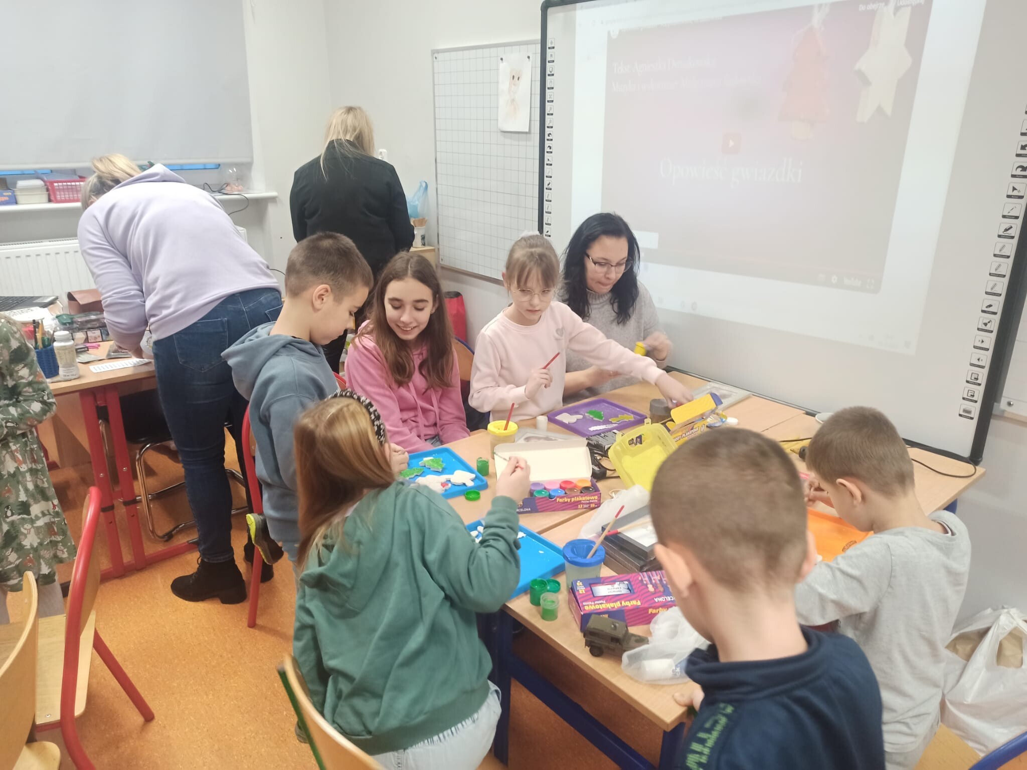 Uczniowie klasy 1a najpierw wykonali przeróżne ozdoby z masy solnej podczas zajęć, a następnie wspólnie z rodzicami, babcią, rodzeństwem podczas warsztatów mogli je w dowolny sposób ozdobić. Każdy przyniósł z domu mnóstwo przeróżnych ozdób, nasza sala lekcyjna na moment zamieniła się w prawdziwą wytwórnię przecudnych ramek. Zarówno dzieci, jak i rodzice świetnie się przy tym bawili i mogli wspólnie spędzić czas. Choć niektórzy twierdzili, że to dorosłym sprawiło więcej frajdy. Mamy nadzieję, że takich spotkań integrujących będzie więcej. Efekty naszej pracy można podziwiać i zakupić podczas Kiermaszu Świątecznego, który w naszej szkole już od 12.12. Zapraszamy.
