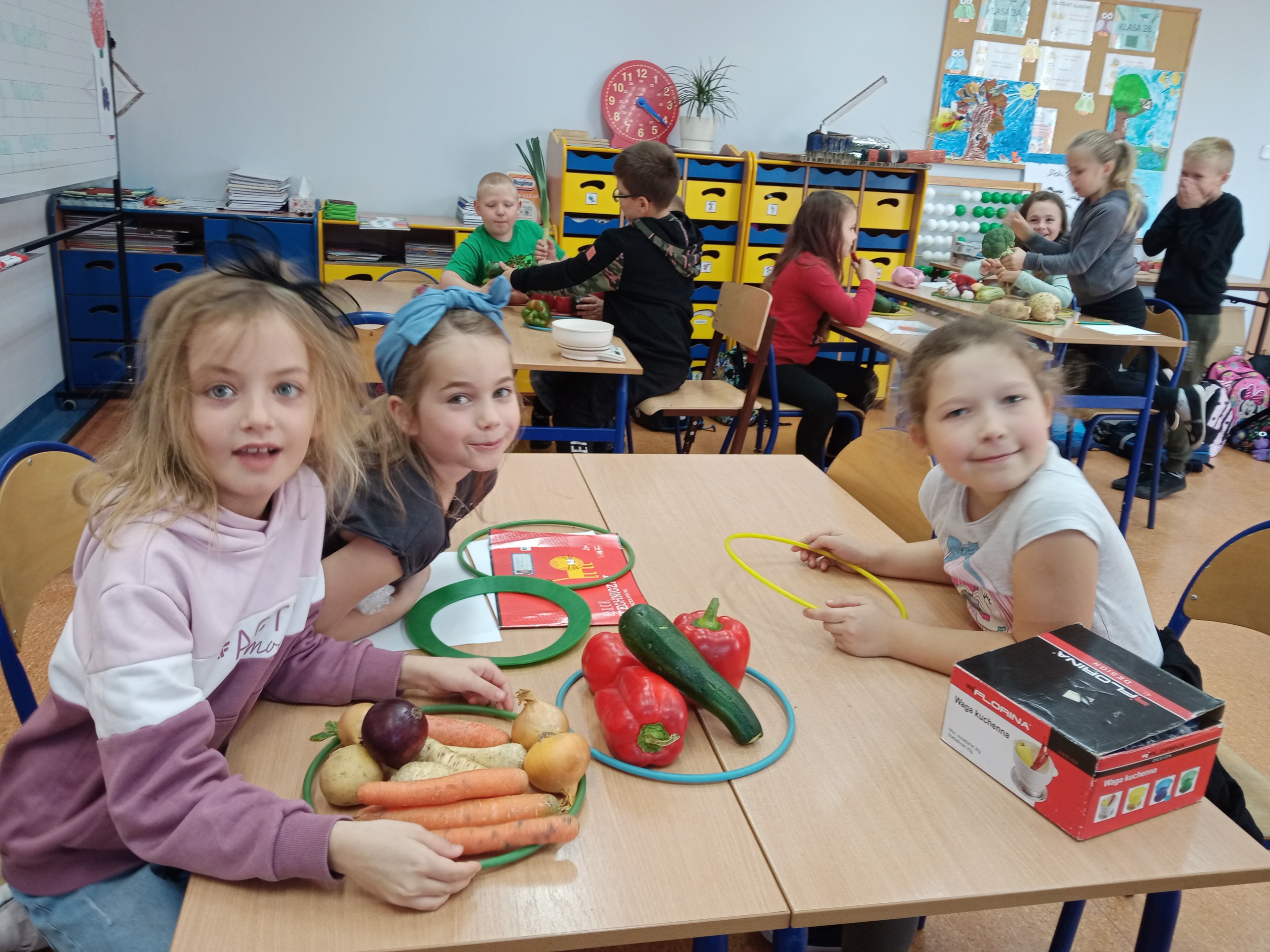 Matematyka wcale nie musi być nudna… O tym przekonali się dziś uczniowie klasy II a. Dzieci przyniosły na zajęcia najróżniejsze warzywa i mogliśmy pobawić się matematyką, doświadczyć jej, a nawet powąchać. Segregowaliśmy warzywa w różny sposób: kolorami, rodzajem , kształtem, wielkością. Porównywaliśmy wielkości warzyw, szacowaliśmy, które są cięższe, które lżejsze, krótsze, dłuższe, następnie ważyliśmy i mierzyliśmy. Dzieci zgodnie pracowały w grupach, samodzielnie tworzyły notatki i zapiski. Przy okazji poznały budowę rośliny warzywnej, analizowały, jaka część oglądanych warzyw jest jadalna, omówiły warunki potrzebne roślinom do życia i wzrostu. Nie zabrakło rozmowy na temat wartości odżywczych warzyw oraz korzyściach płynących z ich spożywania. Dziś odkryliśmy, że matematyka otacza nas z każdej strony!