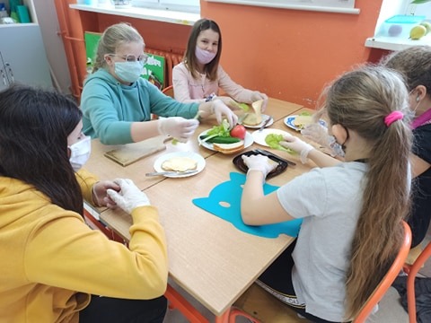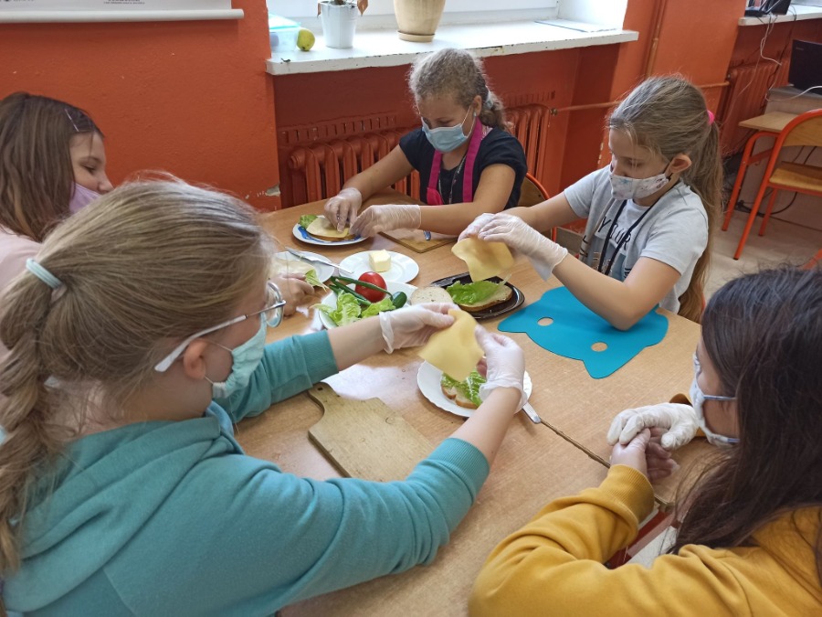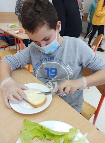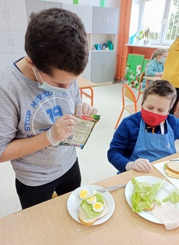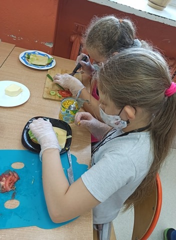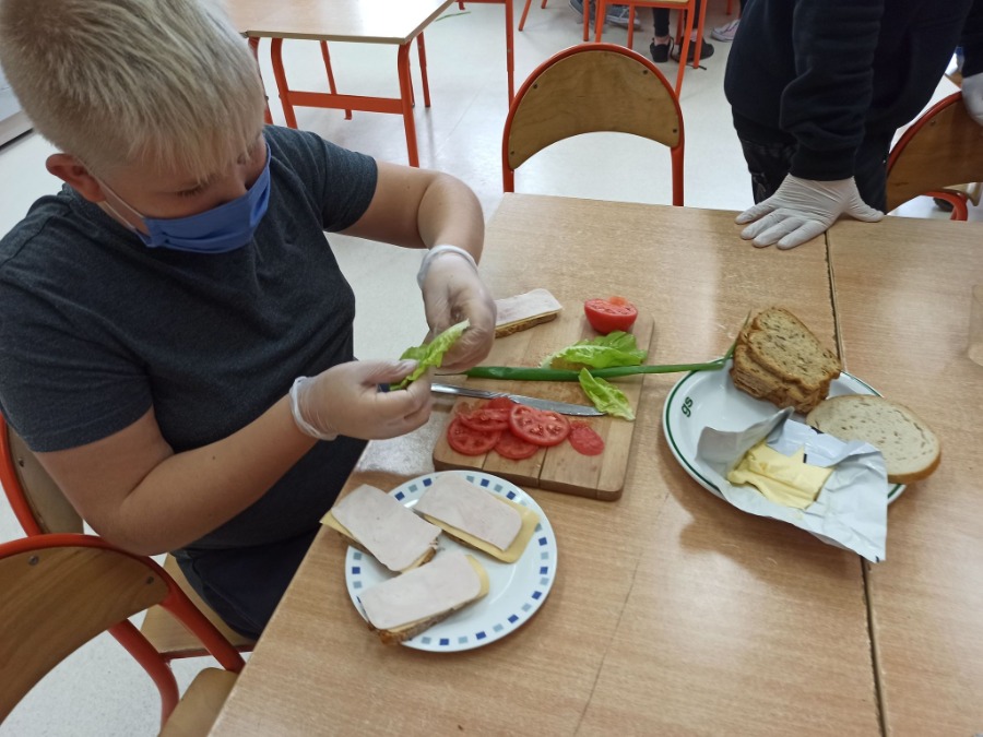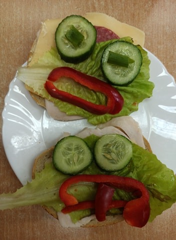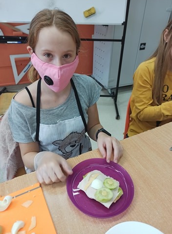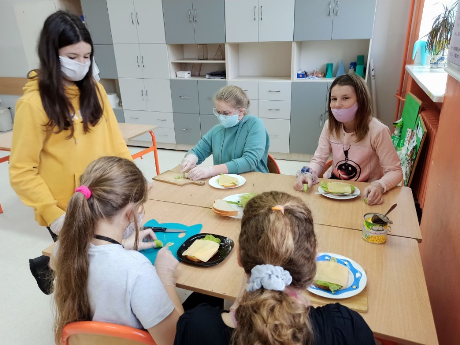 Uczniowie klasy 7c biorący udział w projekcie mPotęga przygotowali i przeprowadzili zajęcia w klasie 5a. Zadaniem uczniów klasy 5a było wykonanie z przygotowanych produktów kanapek. Uczniowie przeliczali ilość potrzebnych produktów, ważyli, obliczali ilość kalorii. Kanapkii były pyszne, a zarazem zdrowe, wesołe i kolorowe. Zadanie wszystkim się podobało i smakowało :)
