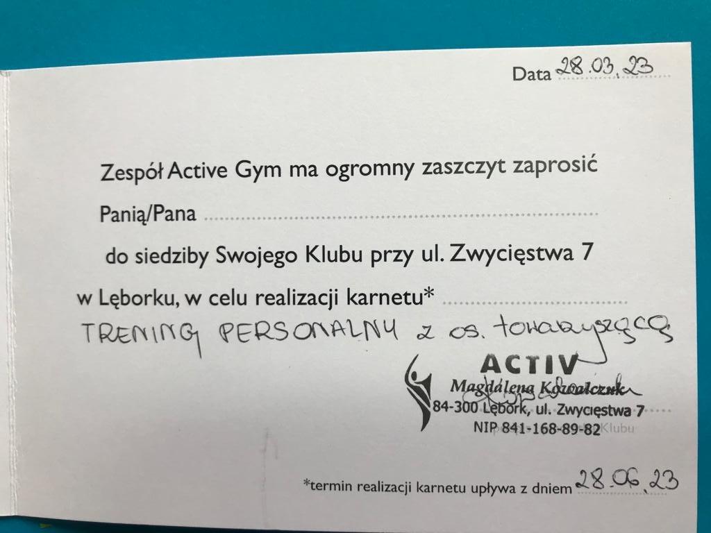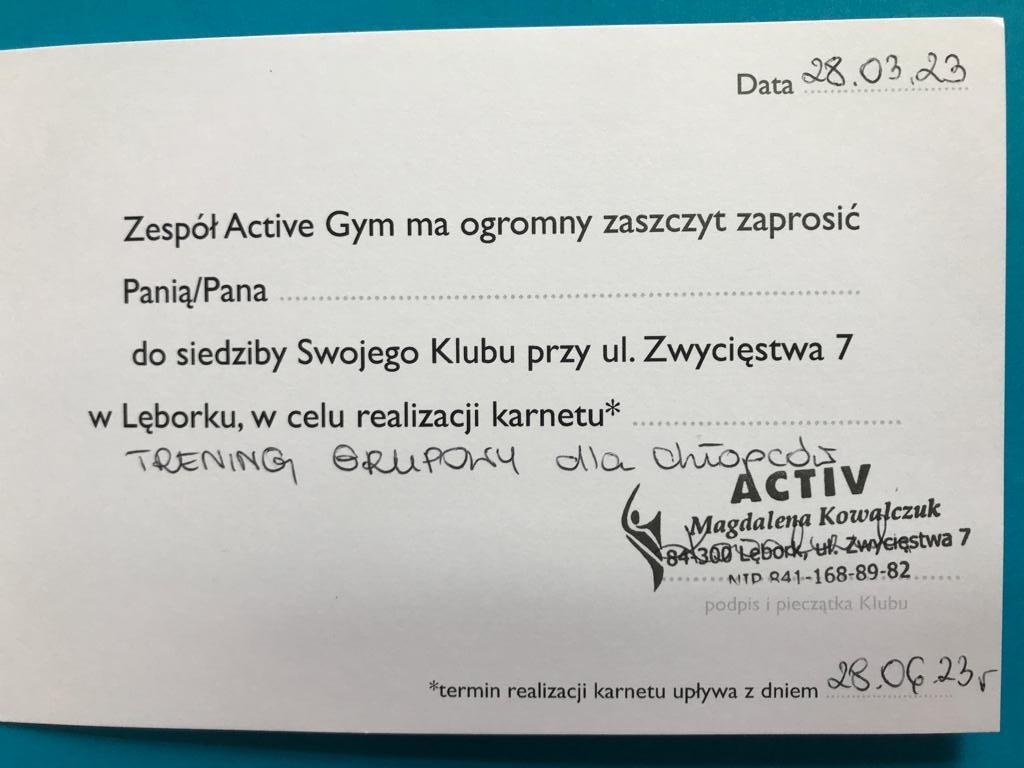 - Trening personalny z osobą towarzyszącą, trening grupowy dla chłopców z trenerem personalnym w Siłowni ACTIVEGYM w Lęborku.