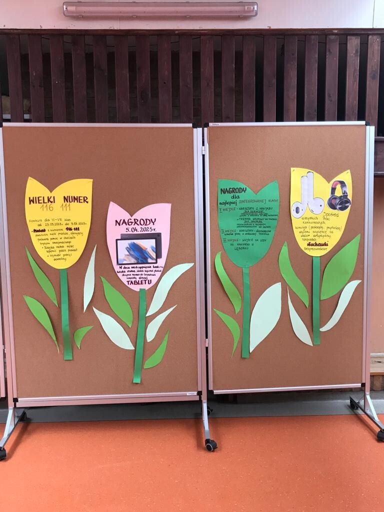 Nagrodą główną jest – TABLET. Każdy uczeń, który złoży pracę konkursową do 3.04.2023 r. , na której będzie widniał numer telefonu 116111 oraz treści związane z tematyką, weźmie udział w losowaniu nagrody głównej 5.04.2023 r.