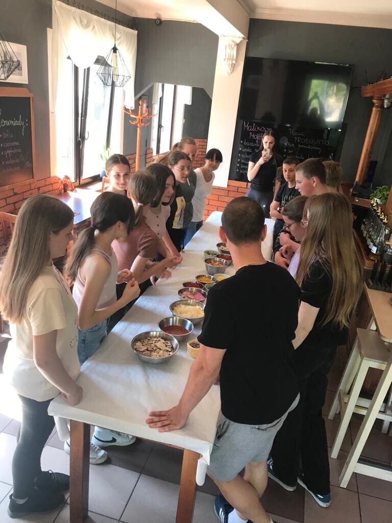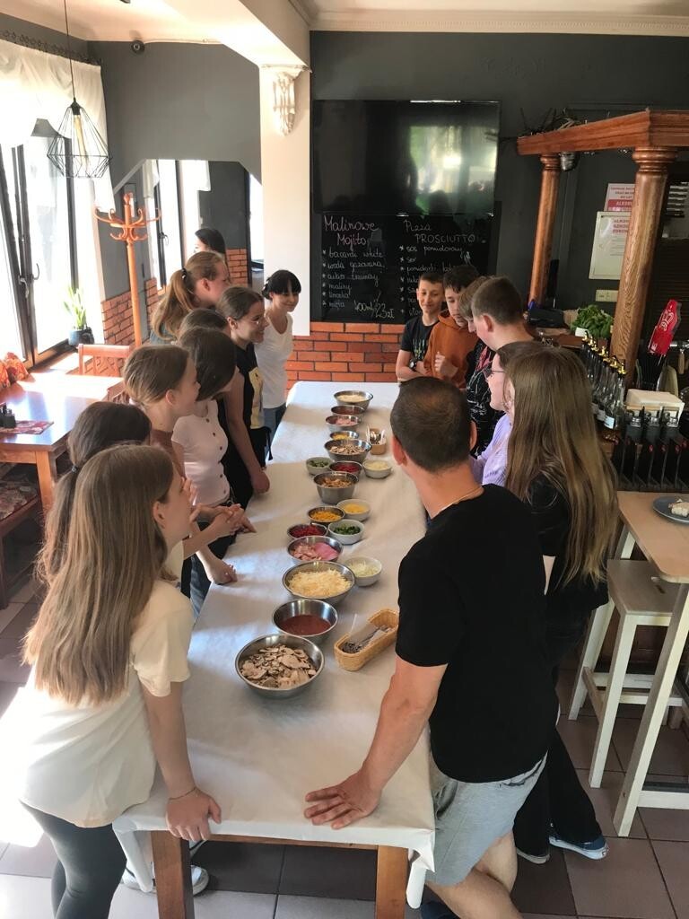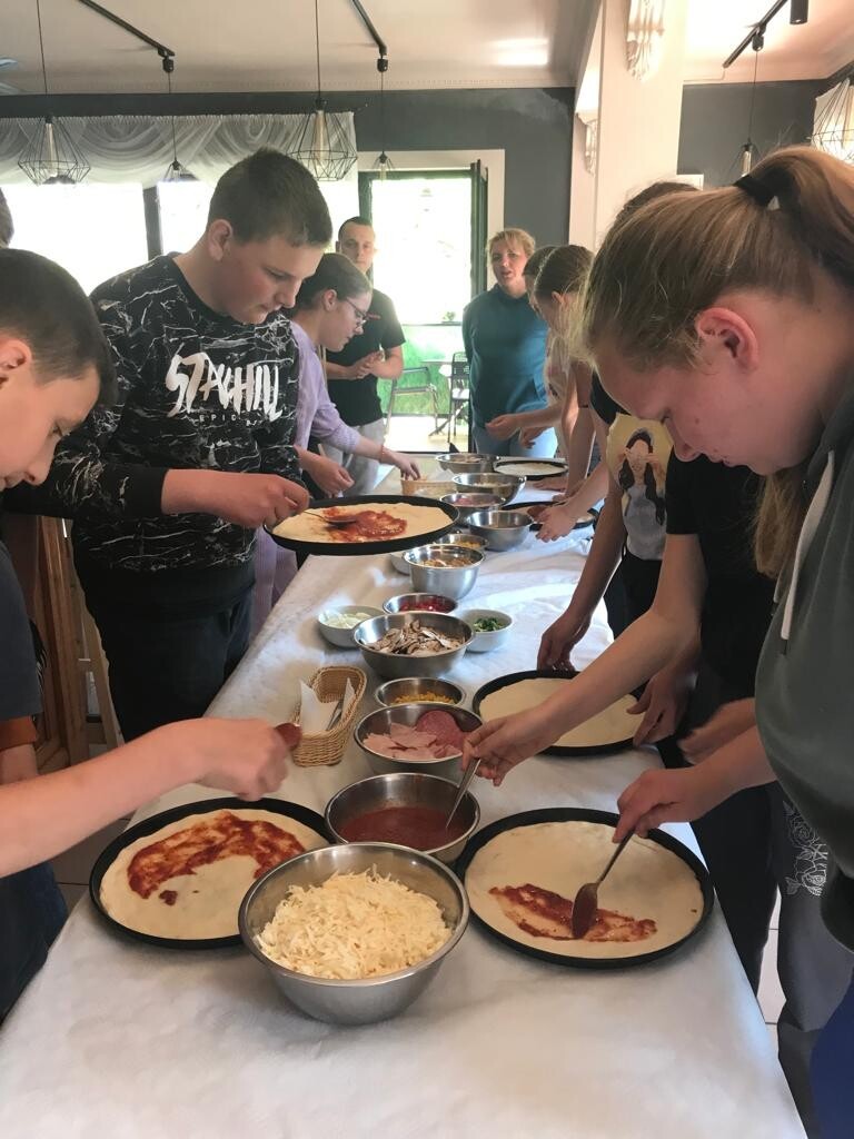 W ramach nagrody w konkursie „Wielki numer” uczniowie klasy VIA uczestniczyli w warsztatach robienia pizzy w pizzerii Toscana w Lęborku. Zajęcia były bardzo ciekawe, pizze były kolorowe i smaczne. Uczniowie z klasy VIIIB, którzy wzięli udział w konkursie wyszli wspólnie na długi spacer na lody do Lęborka. Uczennice klasy VIIIA uczestniczyły w warsztatach wizażu przeprowadzonych przez P. Magdalenę Ziółkowską. Bardzo dziękujemy #M&Z Makijażownia Zabiegownia za wspaniałe warsztaty. Uczniowie dzięki tym wyjściom i warsztatom mogli lepiej się zintegrować i miło wspólnie spędzić czas.