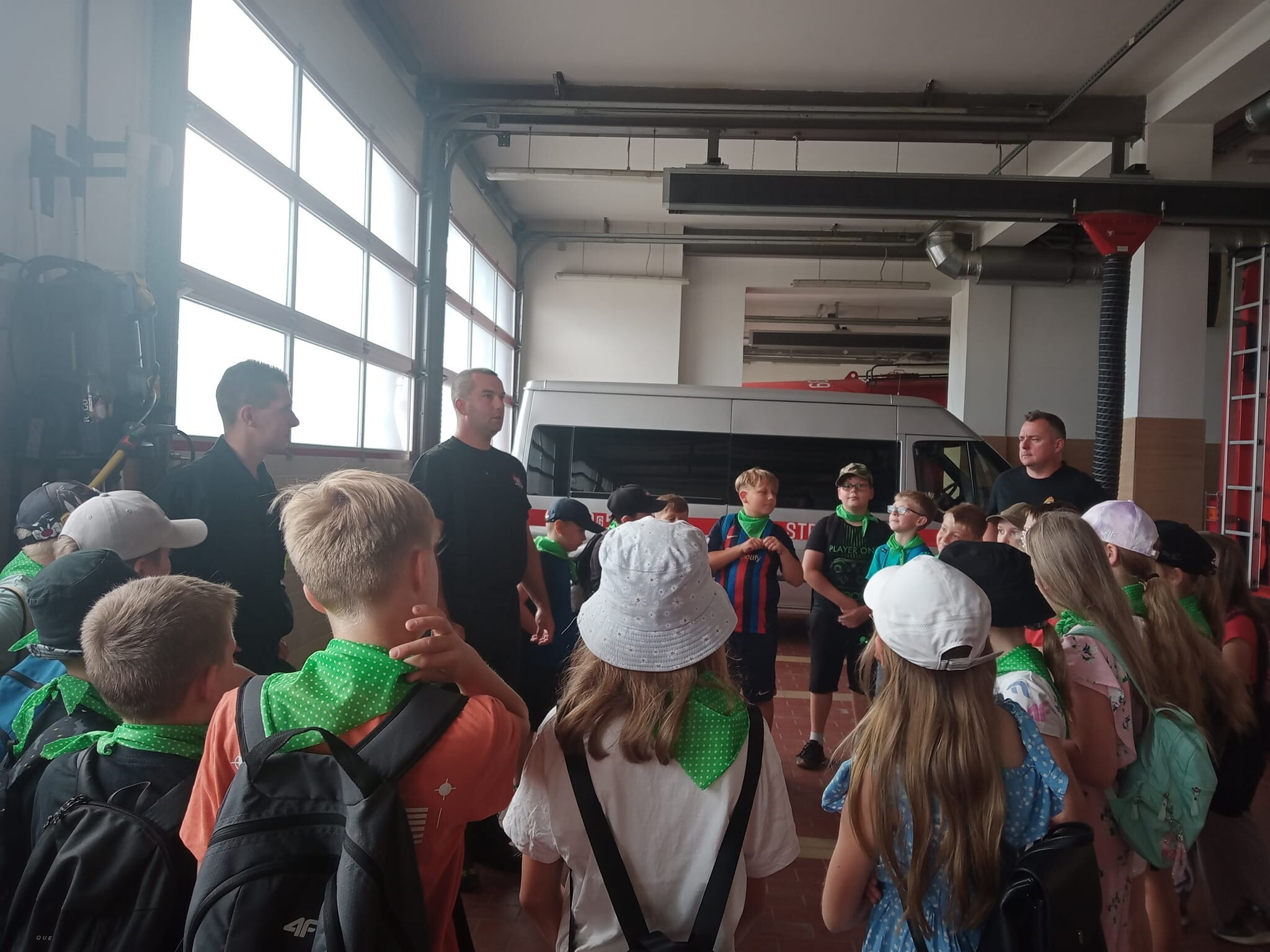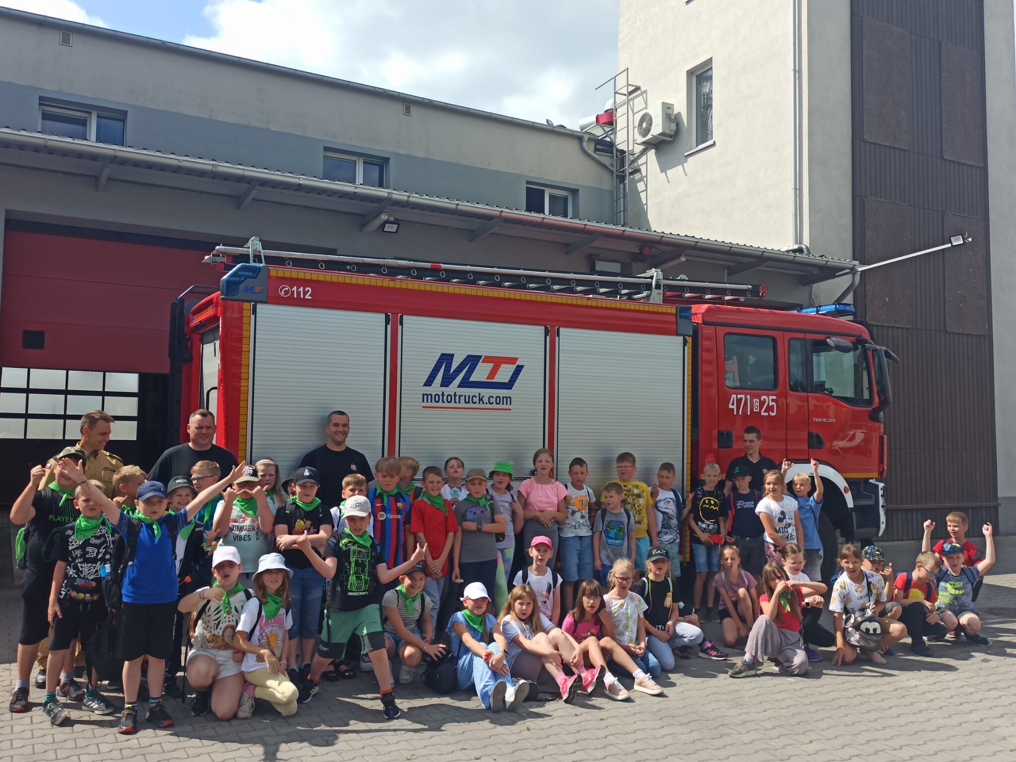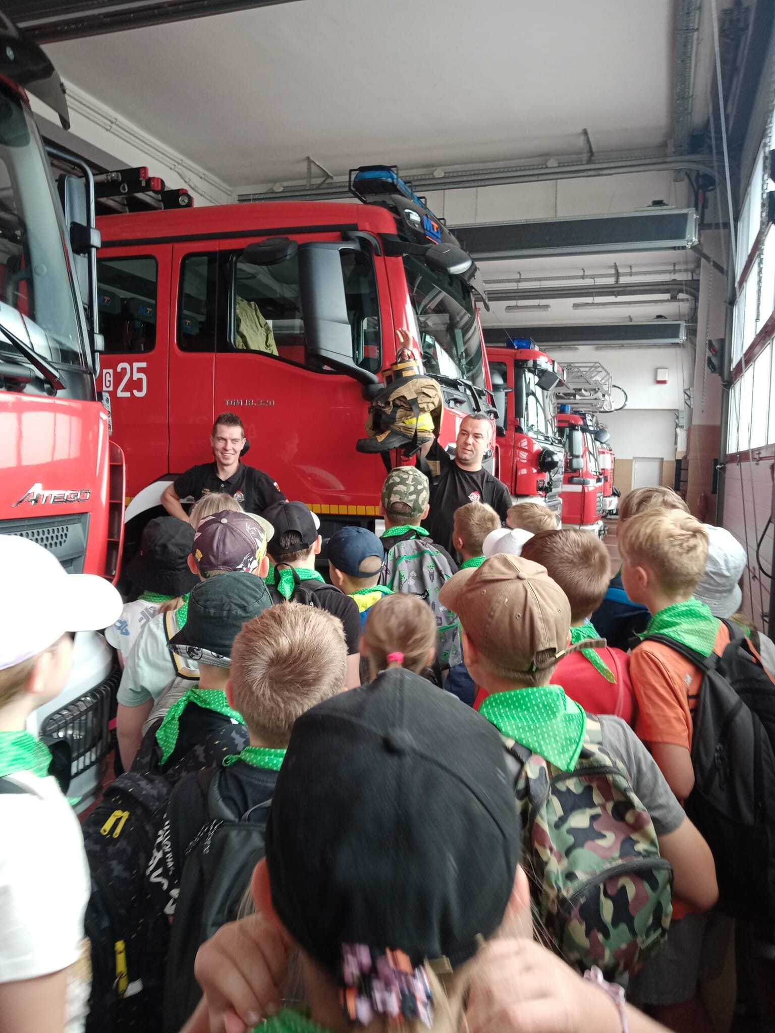19 czerwca 2023 r. uczniowie klas trzecich pod opieką wychowawców udali się z wizytą do Komendy Powiatowej Państwowej Straży Pożarnej w Lęborku. Celem wycieczki było zapoznanie uczniów ze sprzętem strażackim, udzielaniem pierwszej pomocy poszkodowanym oraz pracą Strażaka. W siedzibie Straży Pożarnej uczniowie zwiedzili wszystkie pomieszczenia. W czasie spotkania mogli zapoznać się ze sprzętem, którego strażacy używają w różnych, trudnych warunkach oraz metodami używanymi w czasie gaszenia pożarów i ratowania ludzi z wypadków. Strażacy zademonstrowali zjazd po ześlizgu, a także sygnał dźwiękowy i świetlny wozów strażackich. Dzieciom przedstawiono również zasady bezpiecznego zachowania podczas zauważenia pożaru, możliwości bezpiecznej ewakuacji z zagrożonego budynku oraz jak prawidłowo wykonać zgłoszenie na numer alarmowy.