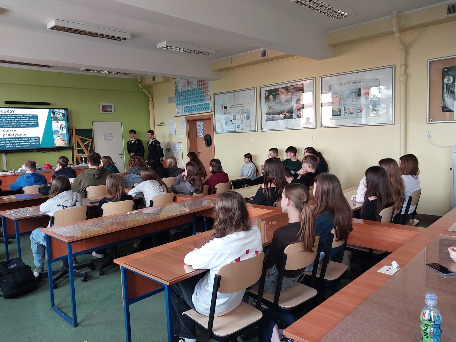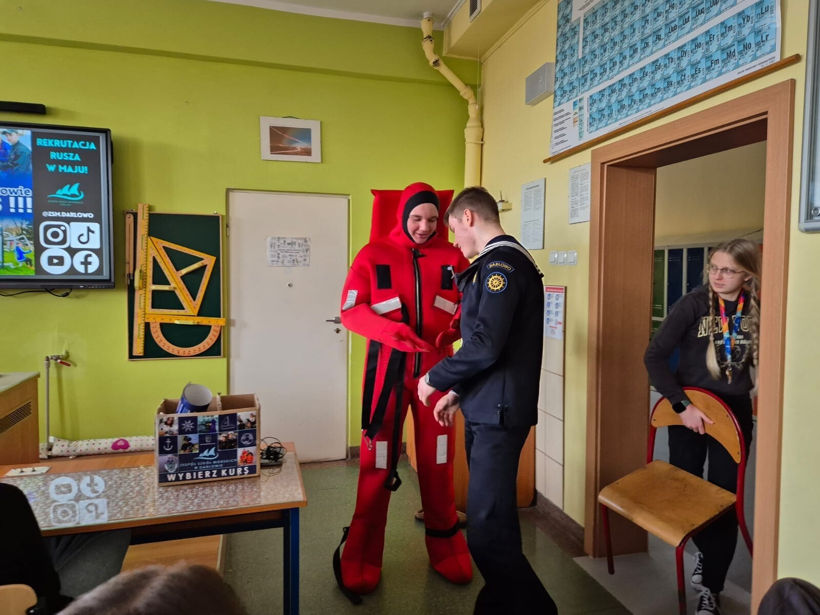Przedstawili różnorodne kierunki kształcenia związane z morzem i nie tylko – od żeglugi morskiej po logistykę i mechanikę. Dzięki ich prezentacji nasi uczniowie mogli dowiedzieć się, jak wygląda codzienne życie w tej wyjątkowej szkole, jakie pasje można tam rozwijać i jakie perspektywy daje nauka w tej placówce.