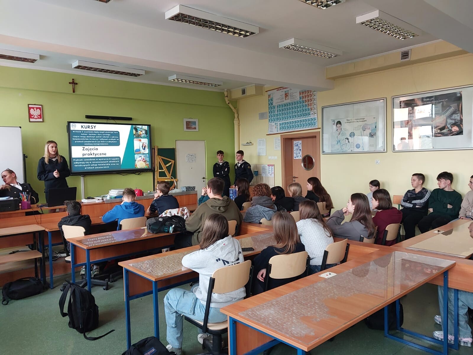 Dziś mieliśmy przyjemność gościć uczniów z Zespołu Szkół Morskich w Darłowie, którzy w ciekawy i inspirujący sposób opowiedzieli naszym ósmoklasistom o swojej szkole i możliwościach, jakie ona oferuje.