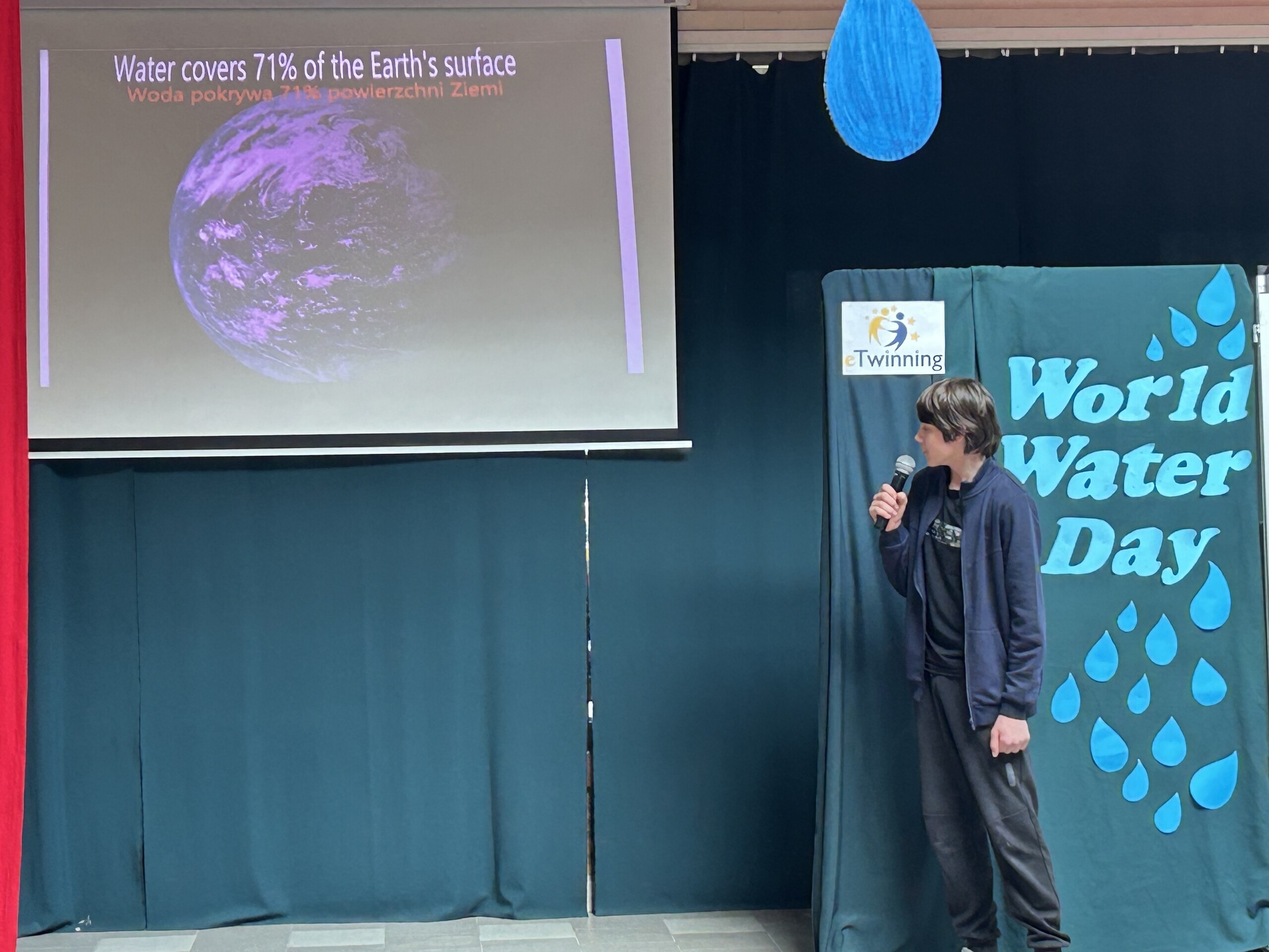 W zeszłym tygodniu obchodziliśmy World Water Day - Światowy Dzień Wody w ramach współpracy ze szkołami z Turcji i Hiszpanii, dzięki programowi eTwinning. eTwinning to społeczność szkół, nauczycieli i uczniów z całej Europy (i nie tylko) współpracujących ze sobą za pomocą mediów społecznościowych. Pierwszym krokiem tej współpracy było podjęcie działań na temat Dnia Wody. Z tej okazji uczniowie klas 4-8 mieli możliwość stworzenia prezentacji oraz plakatów związanych z tym ważnym tematem. Najciekawsze prezentacje zostały przedstawione młodszym uczniom klas 1-3. Ponadto w szkole pojawiły się najważniejsze informacje na temat wody i jej oszczędzania, a podczas lekcji język angielskiego poruszaliśmy aspekt związany z deficytem wód pitnych na świecie. Kolejny temat, którym się zajmiemy, to zmiany klimatyczne. Śledźcie nasze działania – przed nami kolejne ciekawe przedsięwzięcia w ramach współpracy międzynarodowej.
