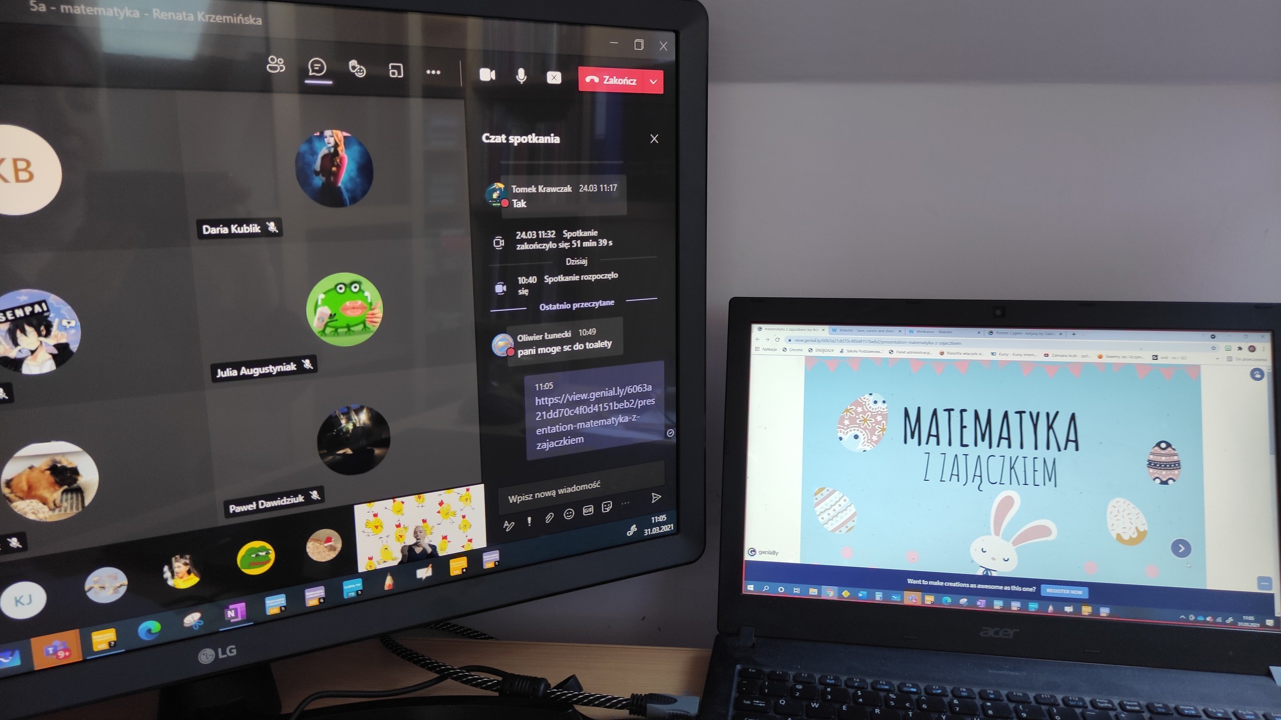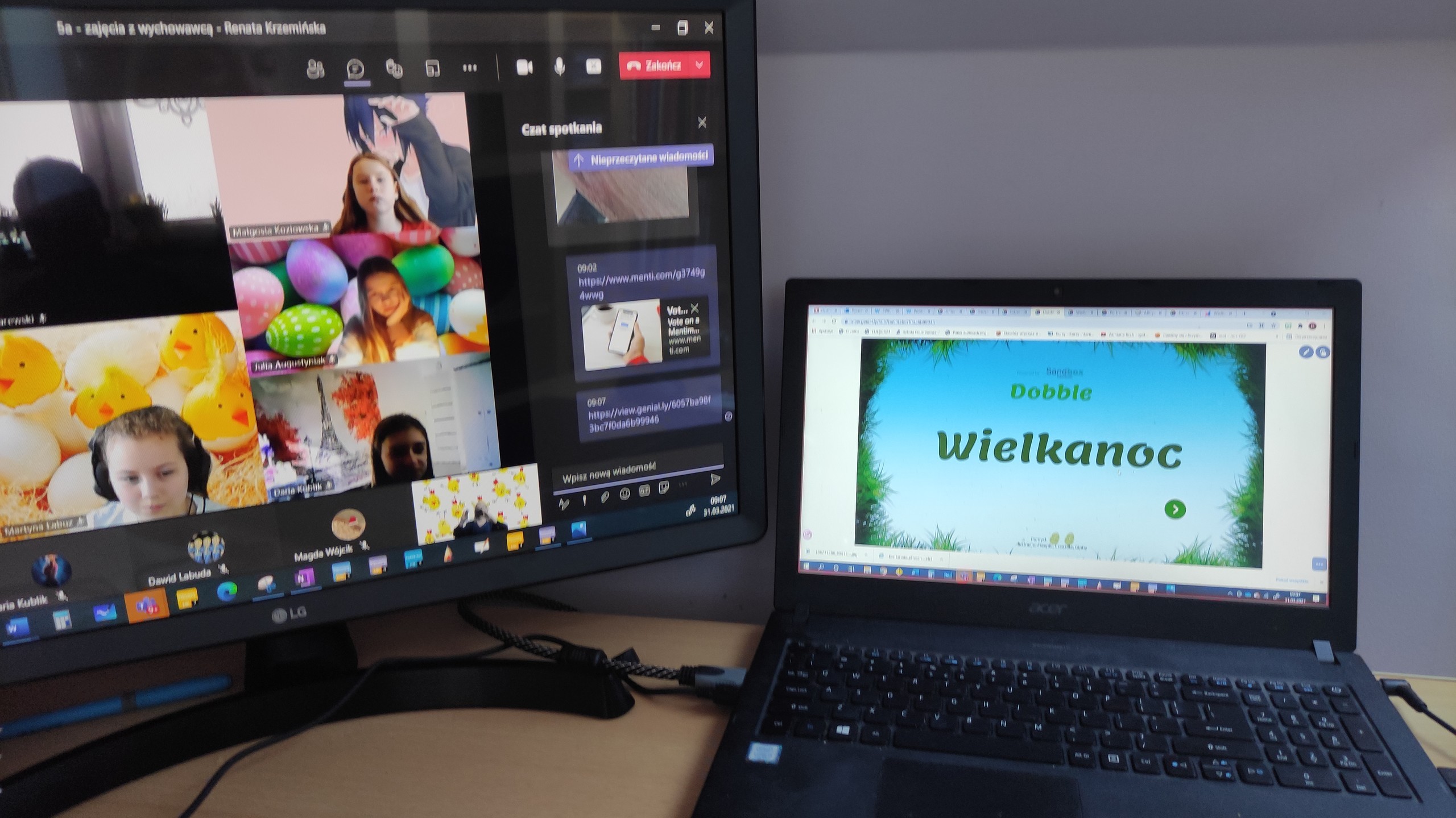 Z okazji zbliżających się Świąt Wielkanocnych klasa 5a postanowiła zjeść wspólne śniadanie i porozmawiać o tradycjach wielkanocnych. Na matematyce uczniowie rozwiązywali łamigłówki odszyfrowując pisanki.