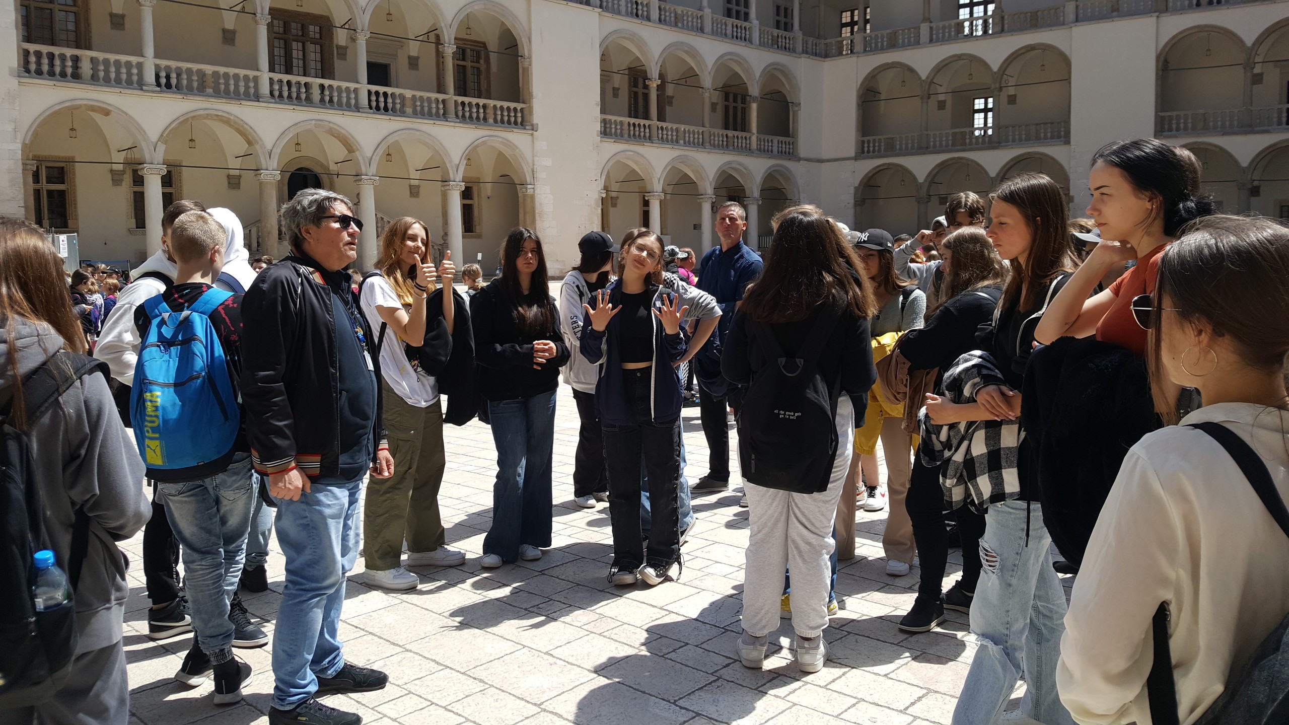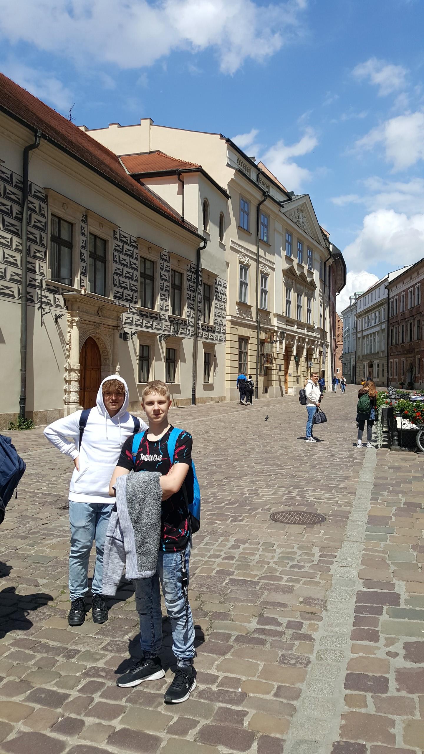 W Krakowie spędziliśmy trzy intensywne i ciekawe dni. Nasze zwiedzanie rozpoczęliśmy od wizyty w Fabryce Emalia Oskara Schindlera. Byliśmy w Kopalni Soli w Wieliczce, która wywarła na nas ogromne wrażenie. Znaleźliśmy się także na Szlaku Turystycznym w Rynku Podziemnym. Zwiedziliśmy wystawy w Muzeum Książąt Czartoryskich, gdzie wśród bogatych zbiorów dzieł sztuki podziwialiśmy słynny obraz Leonarda da Vinci „Damę z gronostajem”. Spacerowaliśmy po Krakowskim Kazimierzu. Tam spróbowaliśmy słynnych zapiekanek. Ostatniego dnia obejrzeliśmy przepiękny ołtarz Wita Stwosza w Kościele Mariackim, zwiedziliśmy Zamek Królewski na Wawelu, Muzeum Katedralne, Collegium Maius Uniwersytetu Jagiellońskiego oraz Galerię Sztuki Polskiej w Sukiennicach. Rynek Główny, Sukiennice, Barbakan i Brama Floriańska to miejsca i obiekty, które mijaliśmy na naszym szlaku każdego dnia.