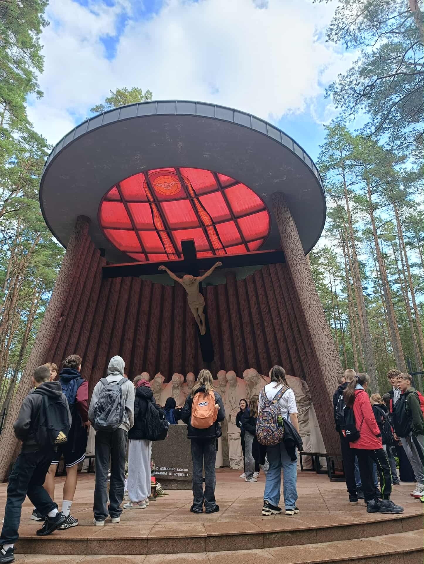 Grupa przeszła ścieżka edukacyjną pomiędzy ołtarzem a mogiłami ofiar. Cisza i powagą panujące w lasach piaśnickich skłoniły wszystkich do głębokiej refleksji. W celu uczczenia pamięci pomordowanych zapaliliśmy znicze przy głównym ołtarzu, a przy pomniku Bł. Alicji Kortowskiej oddaliśmy cześć chwilą ciszy. Miejsce to, nazywane "Kaszubską Golgotą", uświadomiło nam ogrom cierpienia, które dotknęło nasz region i stało się namacalnym dowodem na to, jak ważne są wartości takie jak pokój, wolność i szacunek dla drugiego człowieka. Pamięć o ofiarach Piaśnicy jest naszym moralnym obowiązkiem.