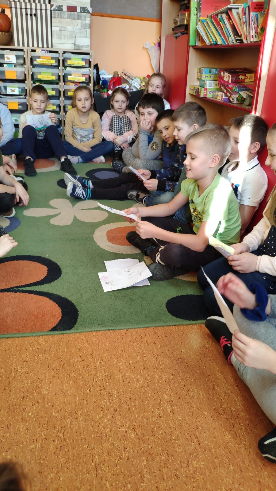 Uczniowie klasy II b od grudnia 2020 roku uczyli się adresowania kartek i listów oraz formułowania krótkich życzeń i pozdrowień. Poznali zasady oraz formy pisania listu. Odbyli wycieczkę na pocztę, gdzie dowiedzieli się na czym polega praca listonosza. W okresie ferii zimowych, chętni uczniowie własnoręcznie przygotowali kartki i listy do wybranej osoby z klasy . Od momentu otrzymania kartek, dzieci bardzo zaangażowały się w ten projekt i chętnie dzieliły się z innymi swoimi przeżyciami. Niejednokrotnie do listów dzieci dołączały małe prezenciki czy rysunki. Akcja się uczniom podobała i na pewno jeszcze nie raz wrócimy do tej formy komunikacji J