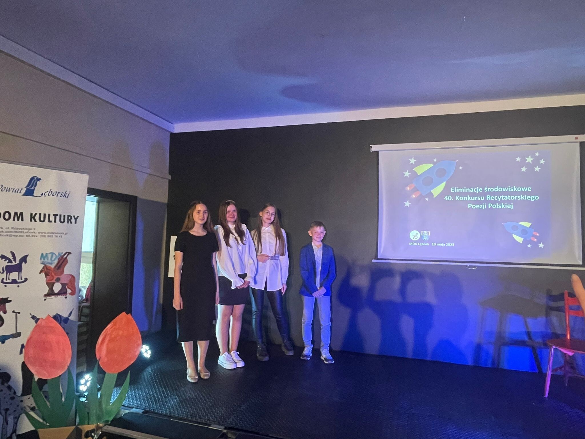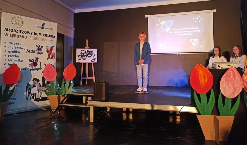 Dnia 10 maja 2023 roku w Młodzieżowym Domu Kultury w Lęborku odbyły się środowiskowe eliminacje Konkursu Recytatorskiego Poezji Polskiej. Naszą szkołę reprezentowali:
