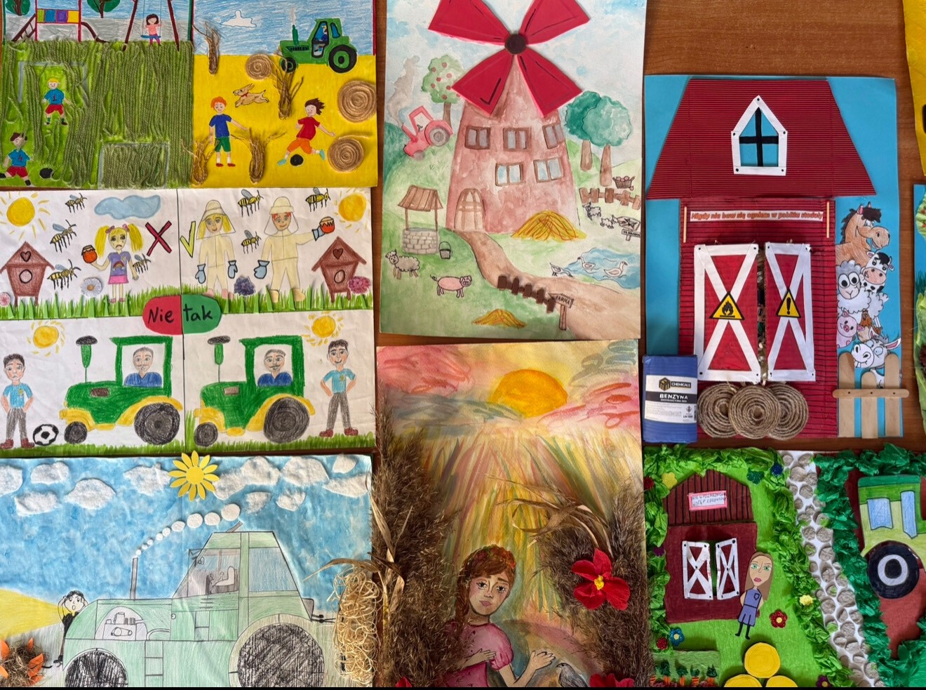 Dzieci w niezwykle kreatywny sposób pokazały, że życie na wsi może być nie tylko radosne i beztroskie, ale przede wszystkim bezpieczne – pod warunkiem przestrzegania zasad ostrożności. Wasze prace to nie tylko piękne obrazy, ale też ważne przesłanie: warto dbać o bezpieczeństwo swoje i innych, zwłaszcza w gospodarstwach rolnych.