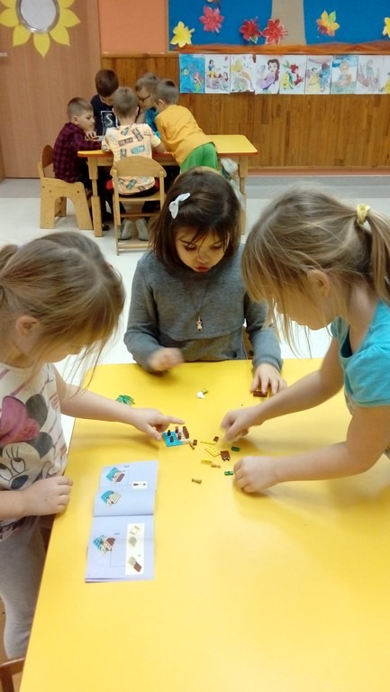 O tym, że zabawa kolckami LEGO Mindstorms to świetna zabawa przekonali się podczas ostatnich zajęć dzieci z grupy 0 „b” goszcząc w klasie absolwentkę naszej szkoły. Następnie w mniejszych zespołach budowali swoje własne zestawy. Musieli zgodnie ze sobą współpracować i odczytywać instrukcję. Wszystkie dzieci świetnie sobie poradziły, a nagrodą była zabawa zbudowanymi przez siebie klockami.