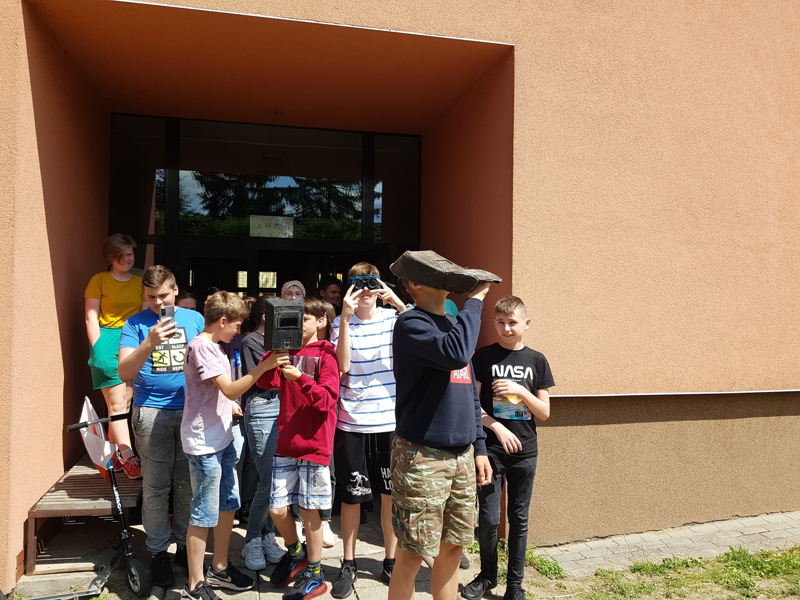 10 czerwca z terenu Polski było widoczne częściowe zaćmienie Słońca. Zjawisko to można obserwować wtedy, gdy Księżyc znajdzie się między Słońcem a Ziemią. Ostatnie zaćmienie miało miejsce 6 lat temu i objęło ponad 60% tarczy słonecznej. W tym roku objęło ok. 20% Słońca. Nasi uczniowie obserwowali to zjawisko z terenu szkoły.